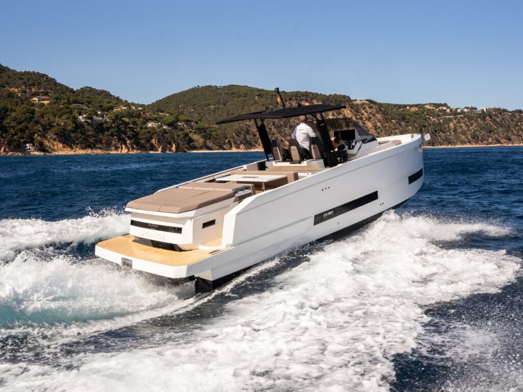 Sleek, minimalist, and distinctly Mediterranean — De Antonio Yachts’ D32 brings hidden outboards and bold design from Barcelona to Fort Myers for the very first time.