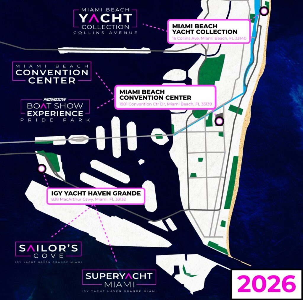 Sandy Hook Yachts will be attending the Discover Boating Miami International Boat Show from February 11–15, 2026, showcasing a strong lineup of premium brands across both in-water and indoor displays throughout Miami Beach.