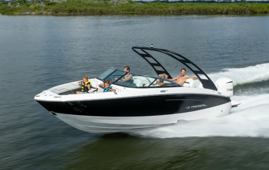 If you recognize the Regal LX4 already, that might be because youโve dreamed about it. This boatโs sleek and sloping profile, a lesson in simplicity, calls to mind the smooth and aerodynamic shape of a skipping stone, while a curved windscreen and a sculptural Power Tower straddle the divide between practicality and sporty style. Powered by a single outboard motor that delivers both raw, unrestrained acceleration and long-haul stamina that will keep you out on the water all day, this 24-foot bowrider delivers the sort of ride that pilots often fantasize about.