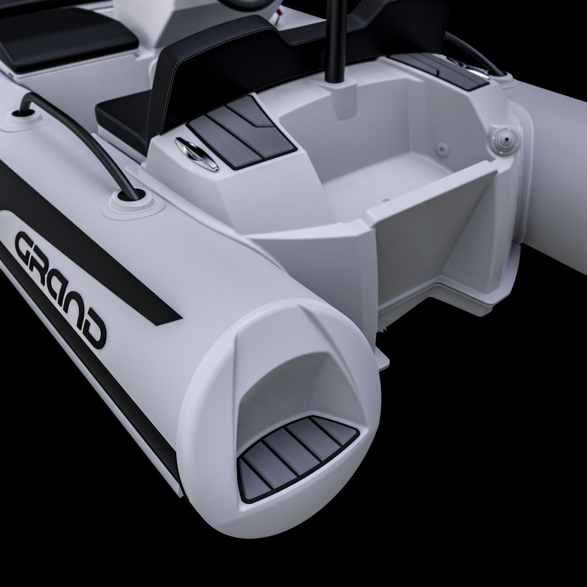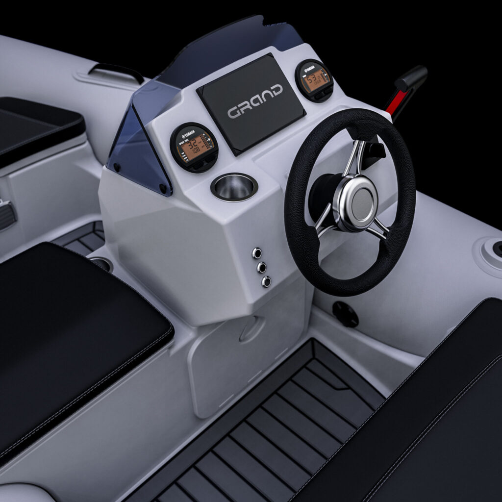An improved ergonomic steering console, the dashboard can now have up to 7” GPS installed. The console can be double or single mounted. In addition, it is equipped with a windscreen and cup holder.