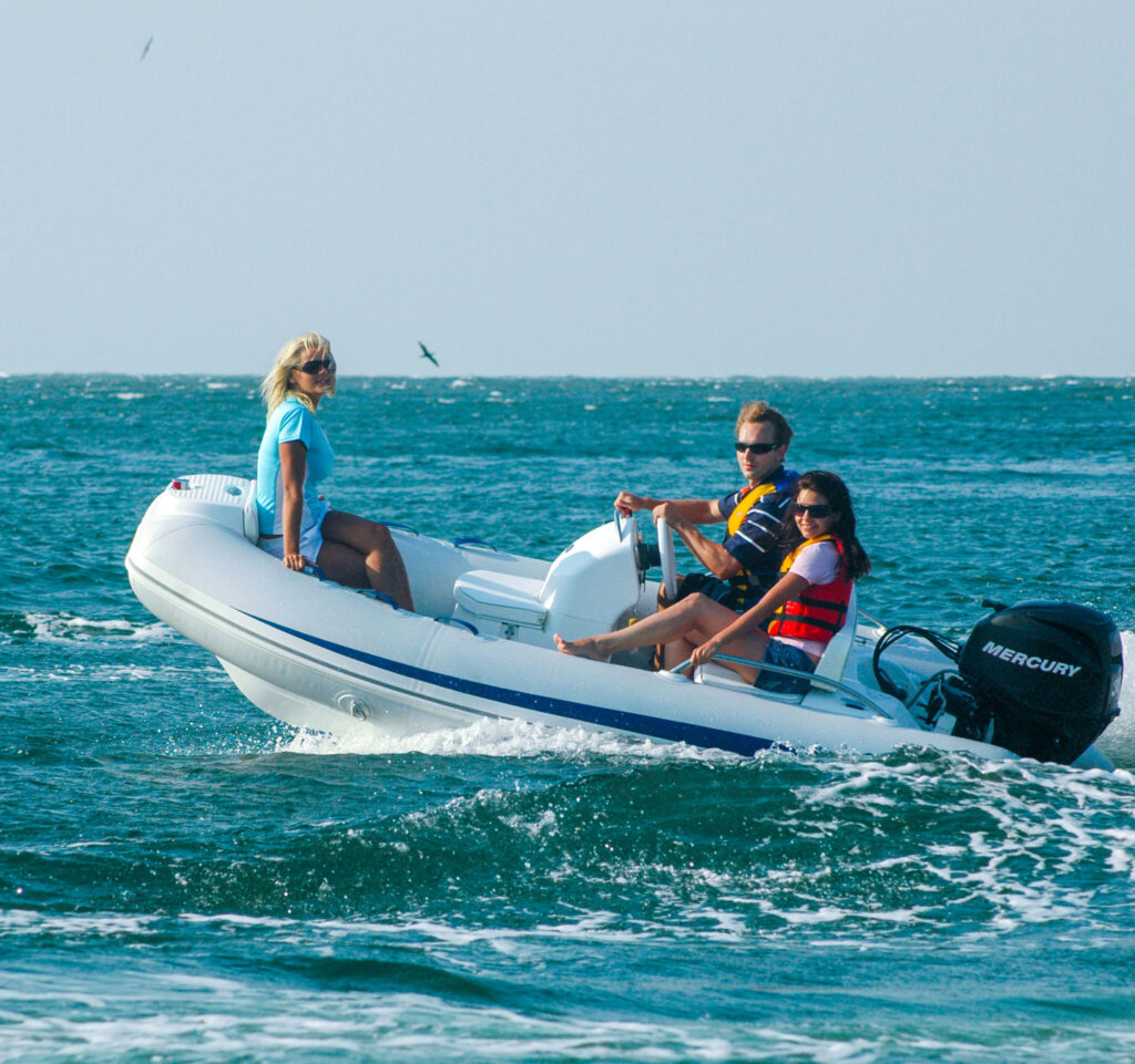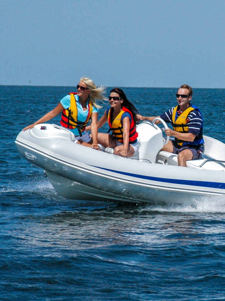 Every model is equipped with a unique water spray protection system that is designed to provide a dry ride with no water entering from the stern.