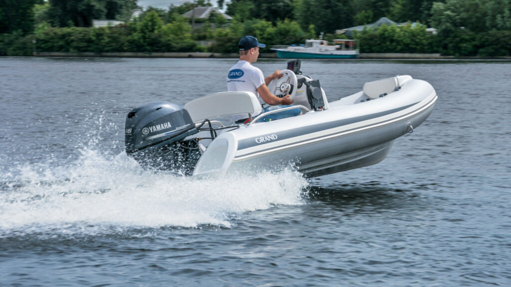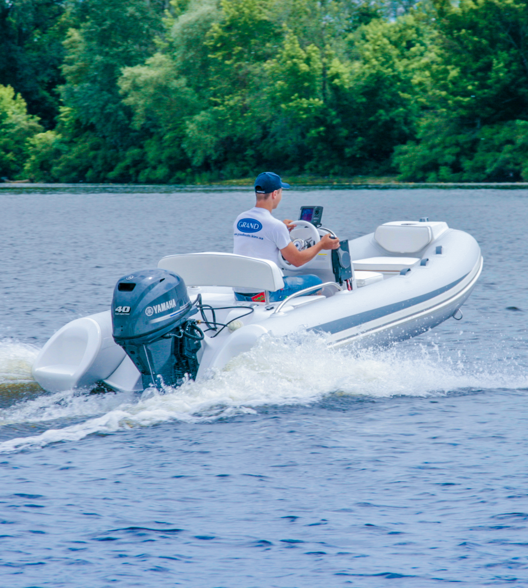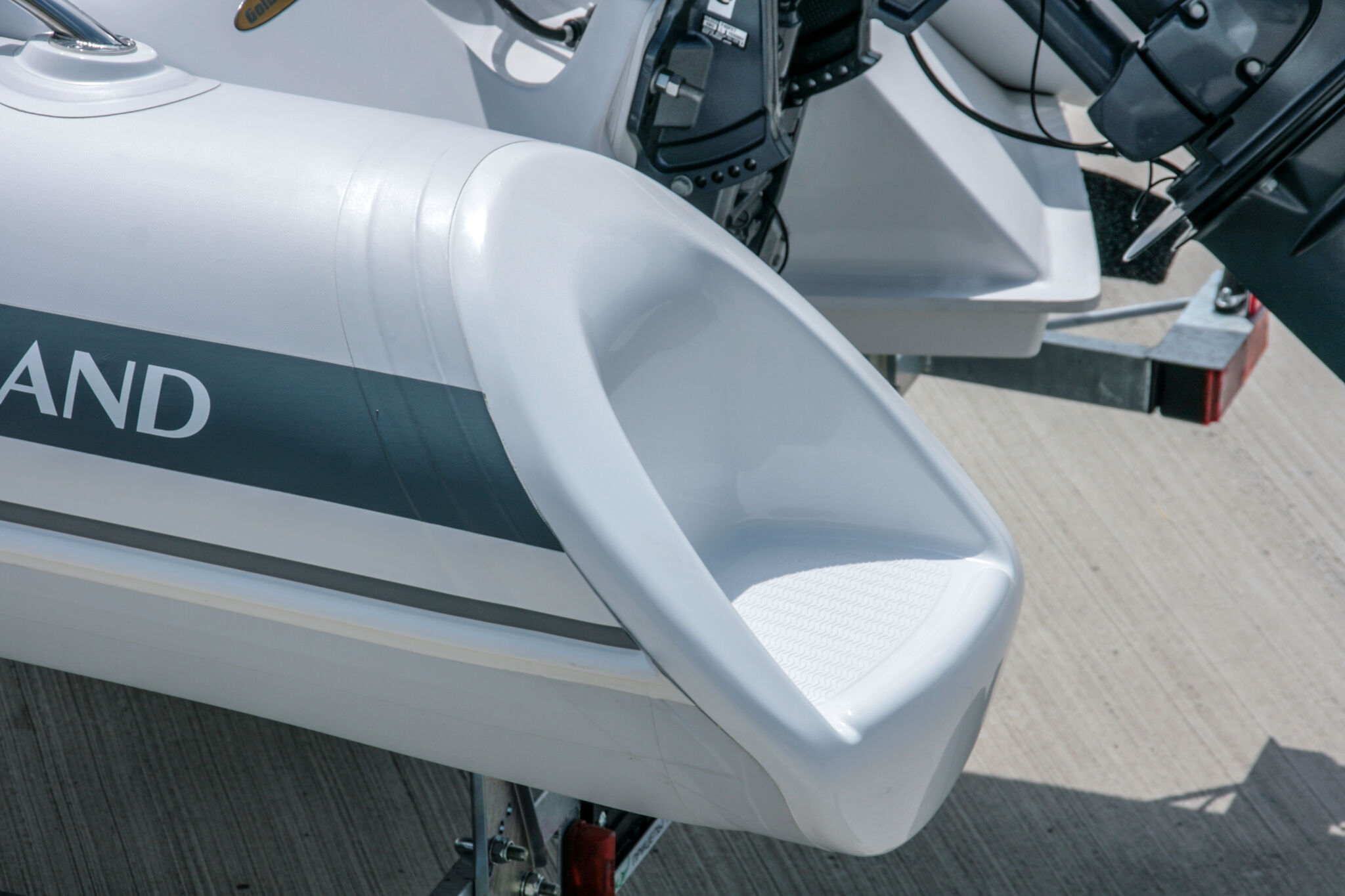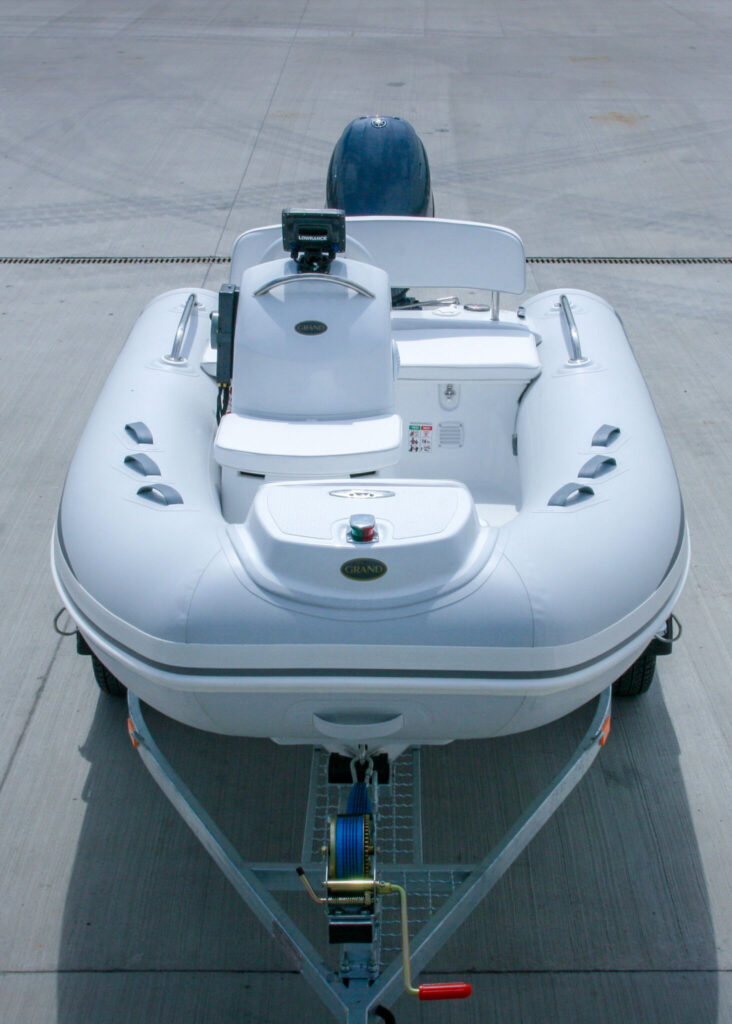 The G380EF weighs in at 170kg (374 lbs.) and with a 40hp outboard around 265kg (583 lbs.).