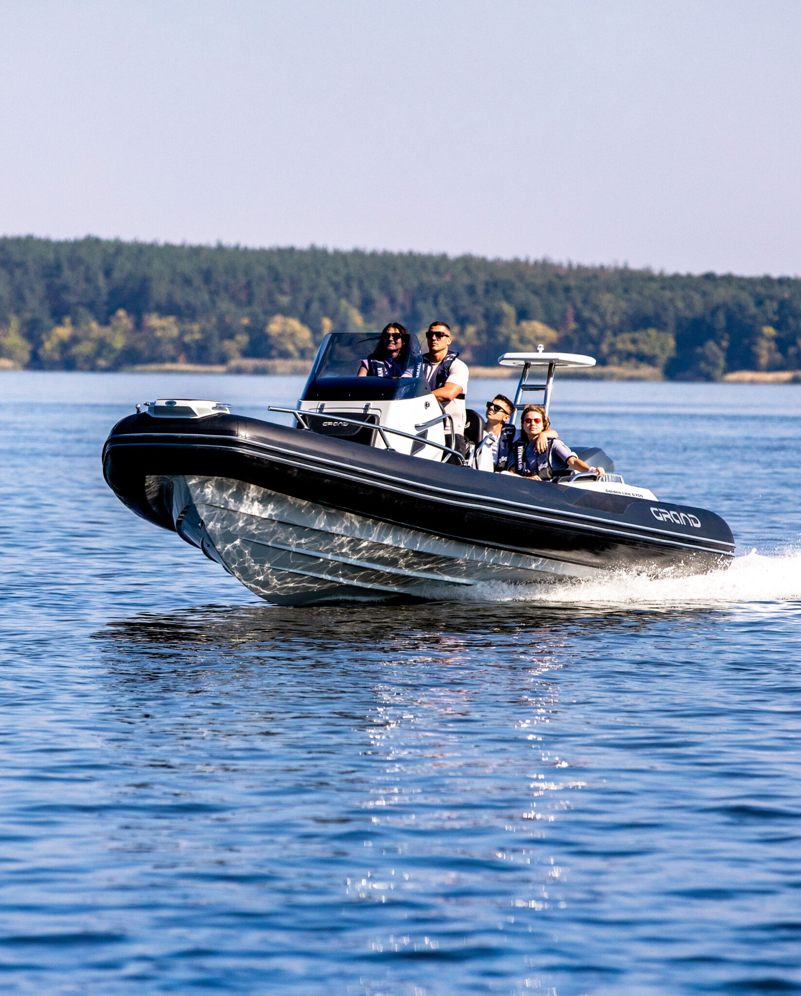 Based on GRAND’s proven High Step Deep-V Hull design this RIB not only meets the requirements for CE category B certification it also provides the optimum balance between a high-performance craft and a sumptuously appointed contemporary family boat.