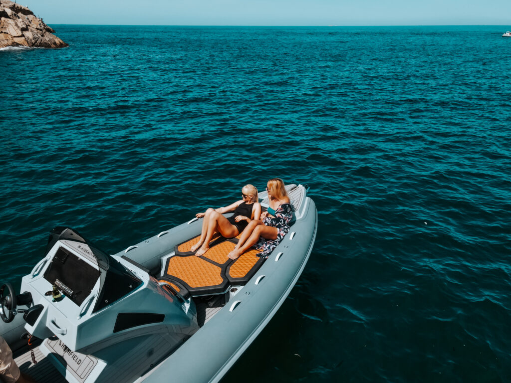 Hull deadrise angles ranging from 20 degrees on the 3 metre going through to a huge 26 degrees on the 650 and up will give you assurance in the toughest conditions but the additions such as EVA teak throughout, integrated fuel tanks, superb diamond stitched upholstery and bathing platforms on our larger models will allow you to enjoy each day to the maximum.