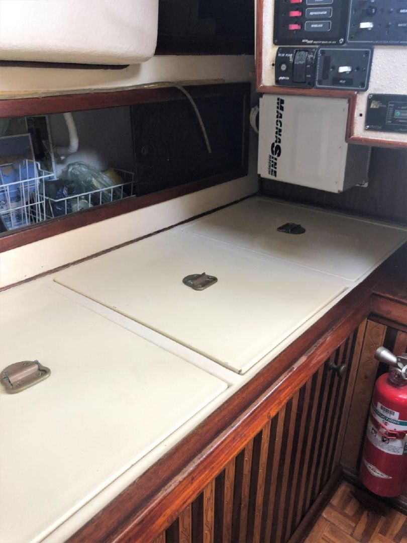 - Frigaboat 12VDC keel cooled refrigeration with larger refrigerator and freezer compartment