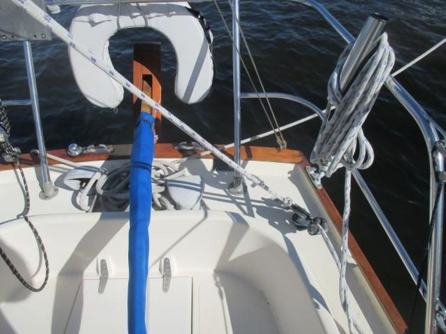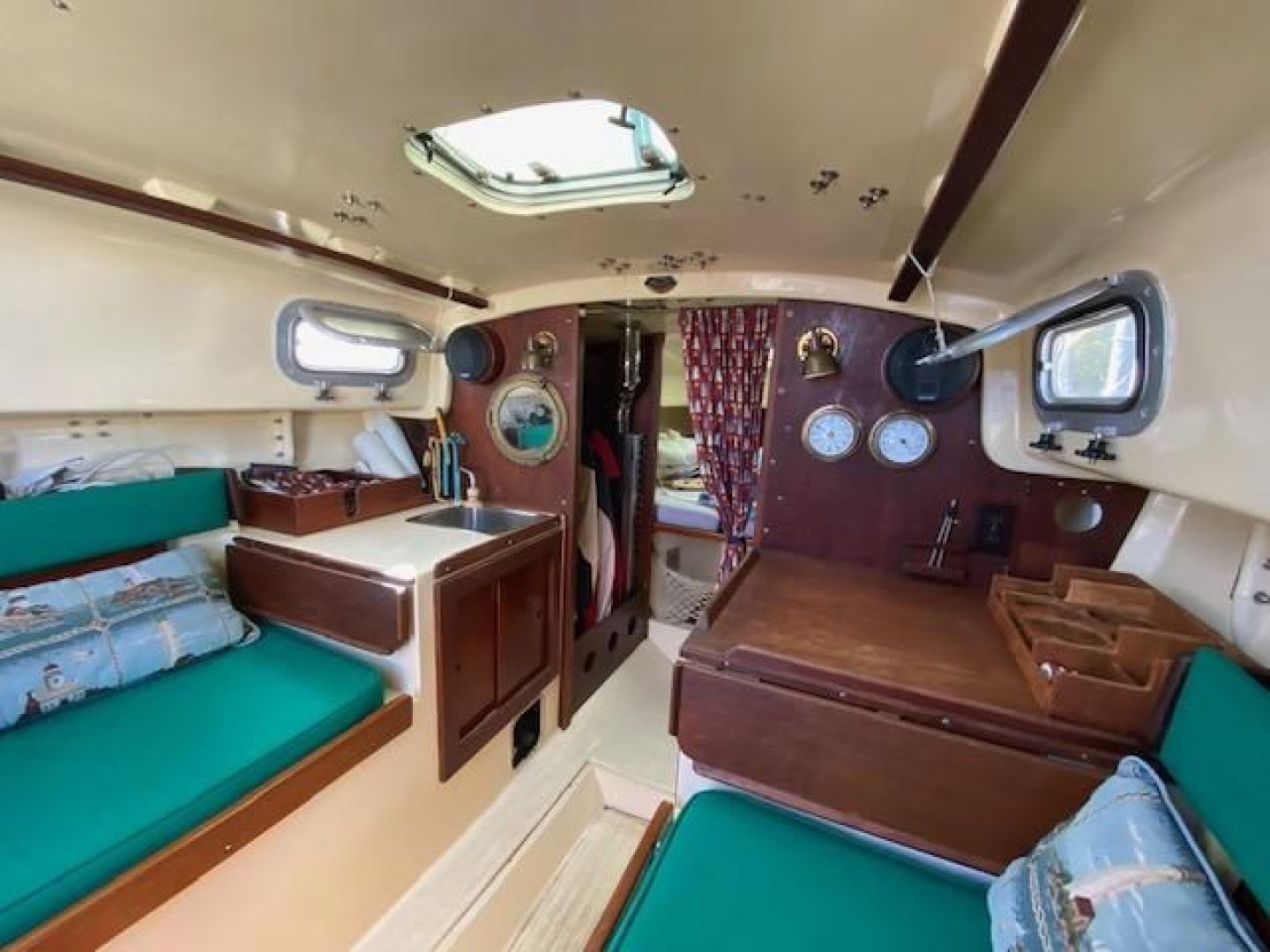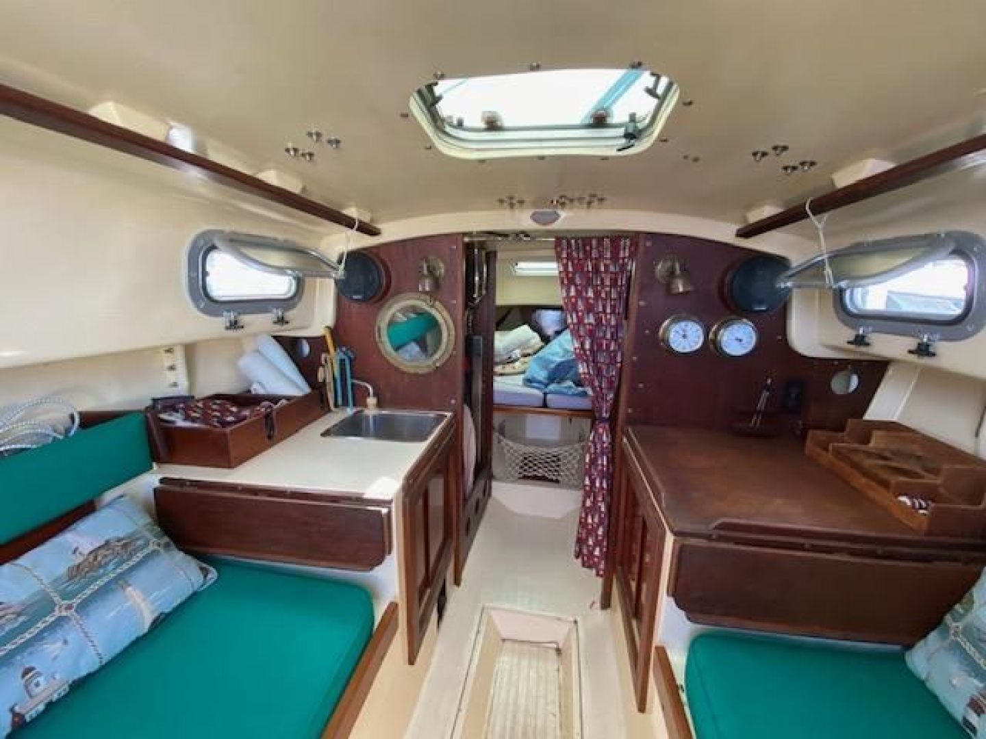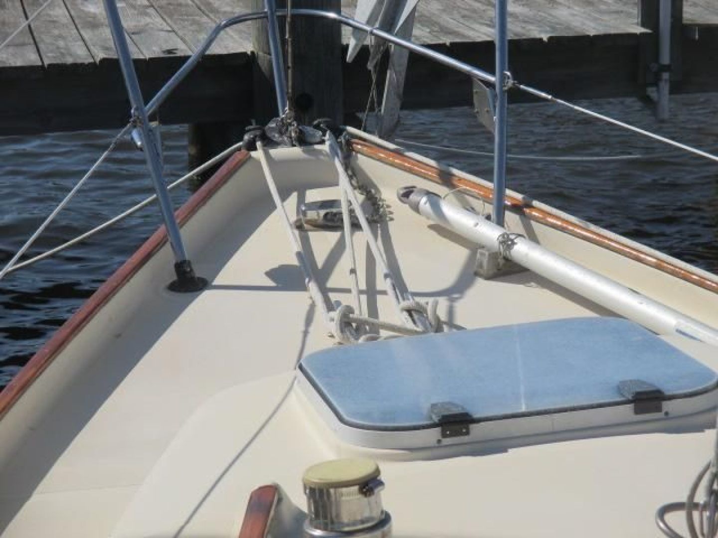 Accommodations: Sleeps 4, vee berth converts to a double. 2 6’6” quarter berths with lee cloths. To port & amidships is a hanging locker and sink. To port is the head and navigation table.