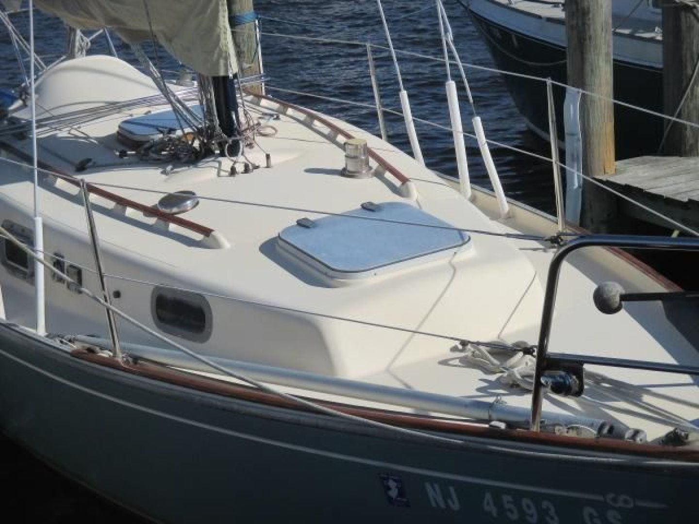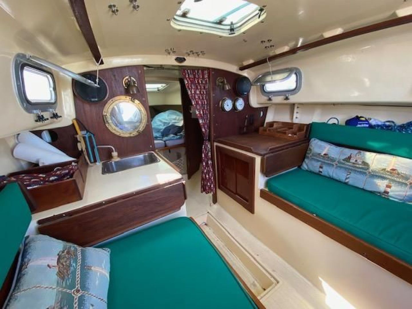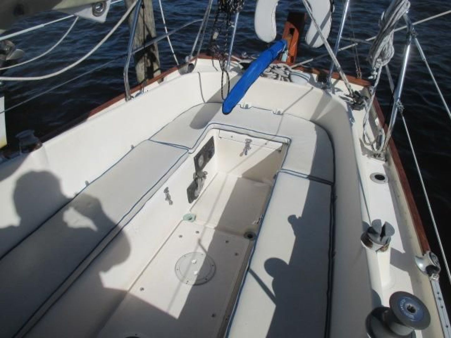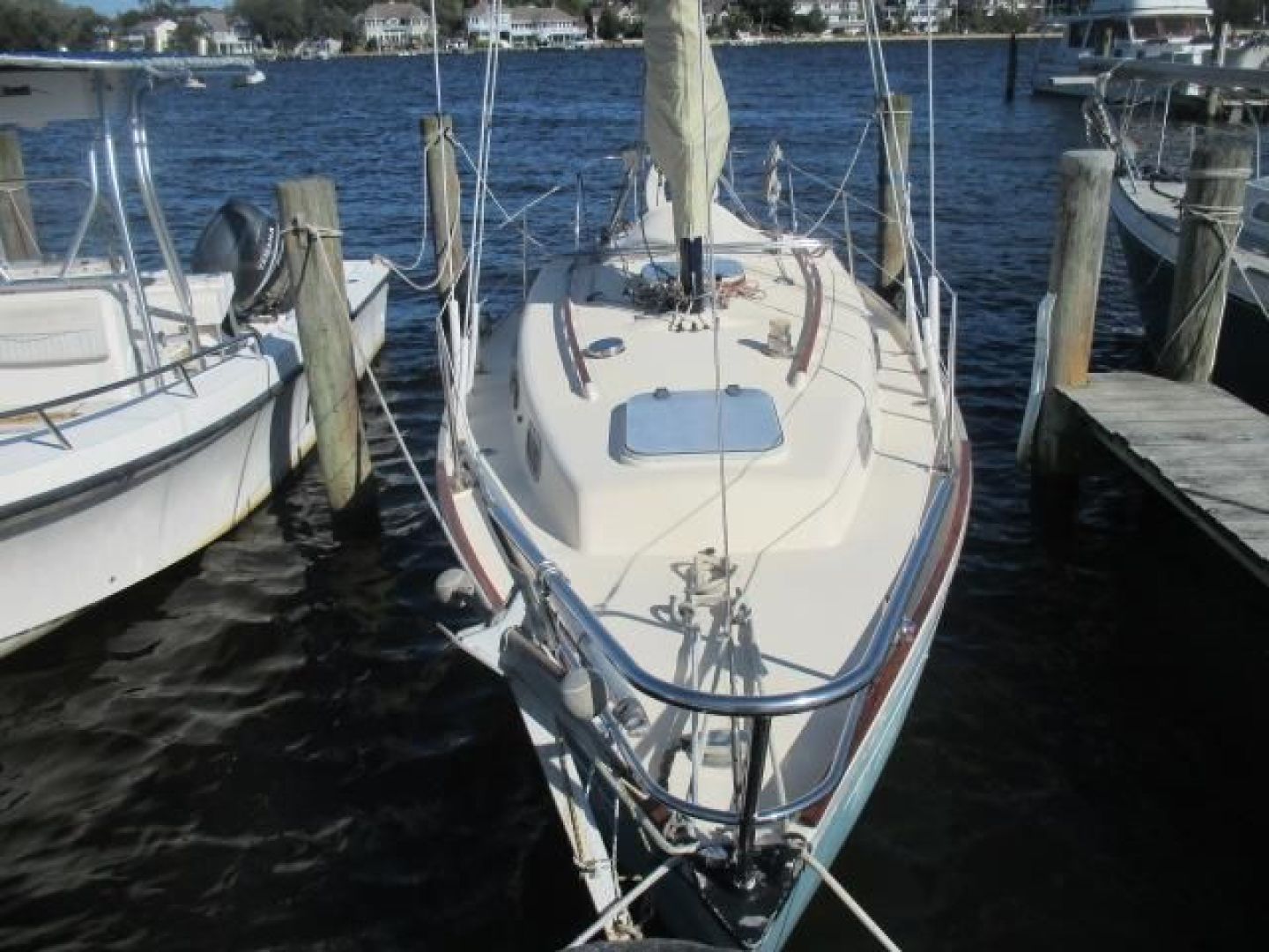 Accommodations: Sleeps 4, vee berth converts to a double. 2 6’6” quarter berths with lee cloths. To port & amidships is a hanging locker and sink. To port is the head and navigation table.