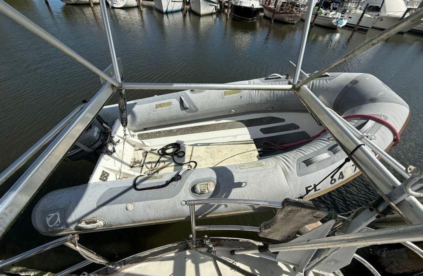 Custom Solar Arch & Dinghy Davits: Provides secure dinghy storage and optimizes solar energy capture.