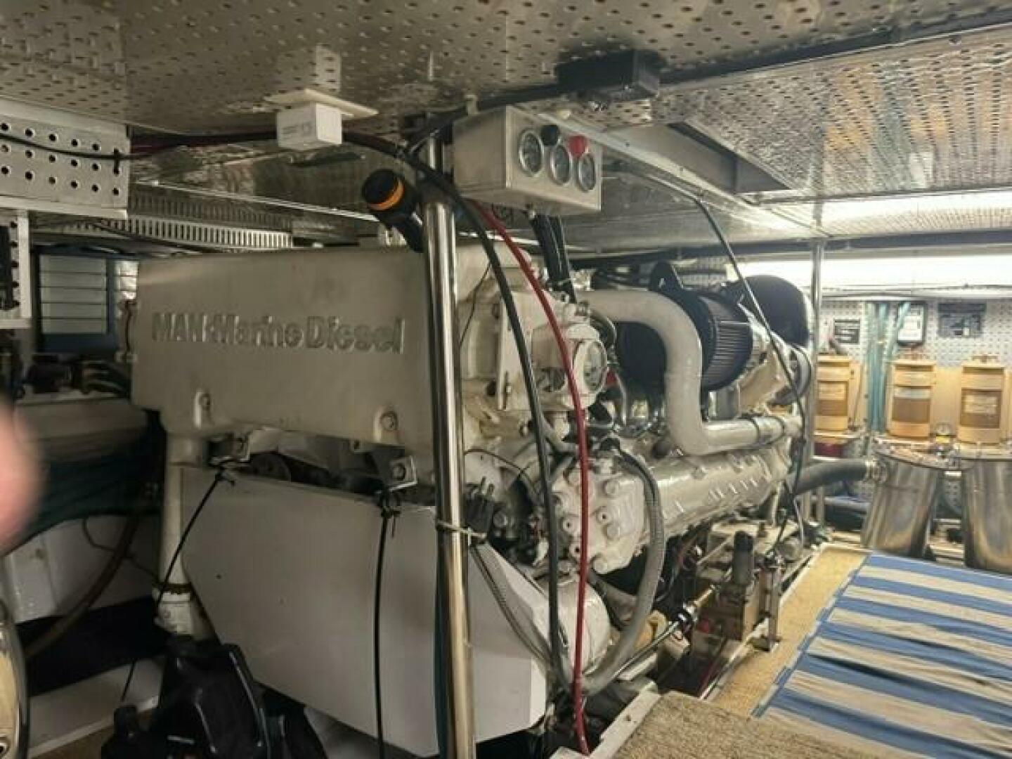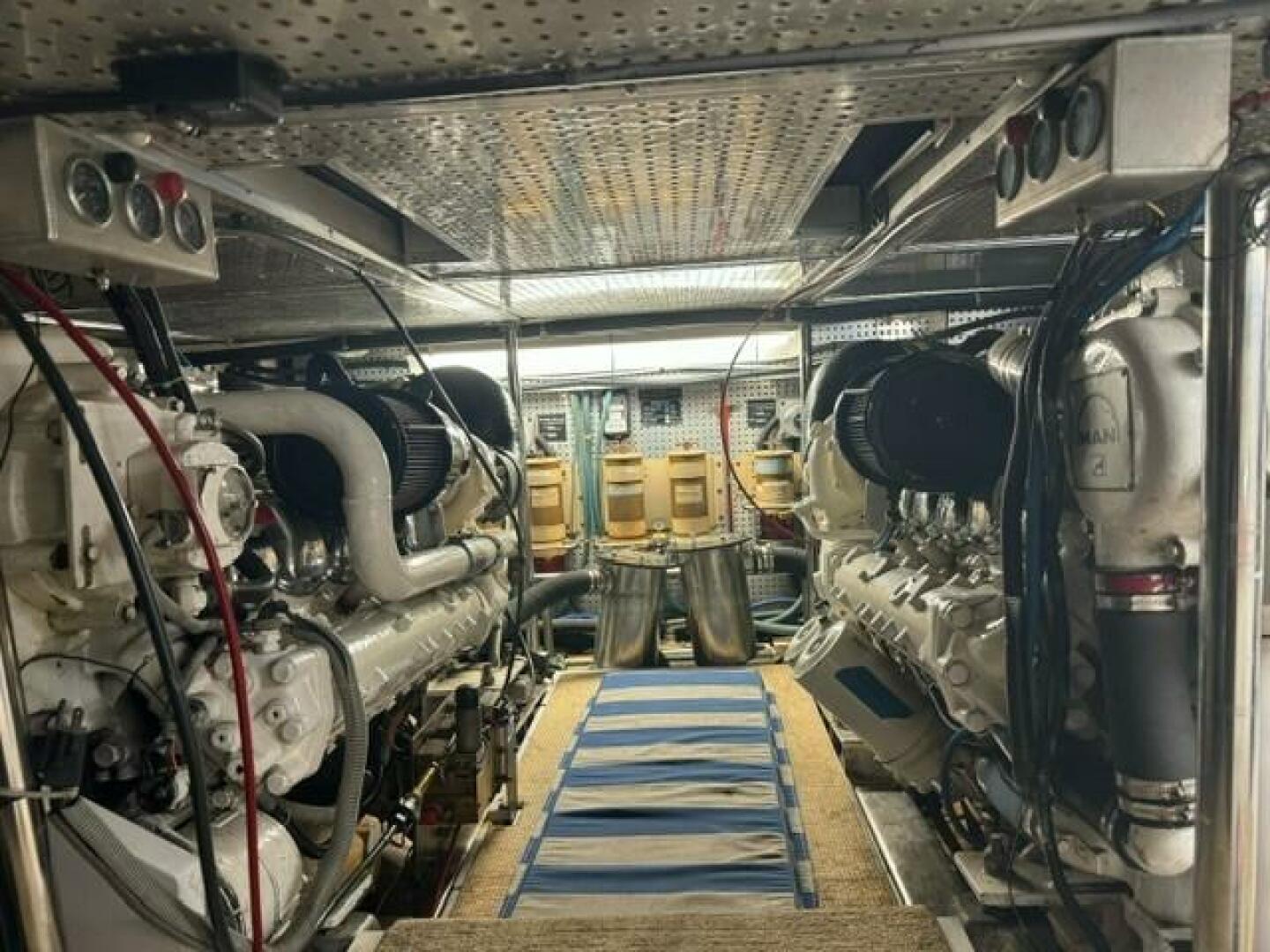 Twin MAN 805 HP. V10 Diesels, with less then 2000 hours .Full Survey available which include oil testing's that show engines are in fantastic shape. Also has 20 Kw generator 2400 hours that will power up over night stays. Fuel with 3 tanks that hold 550 gallons.