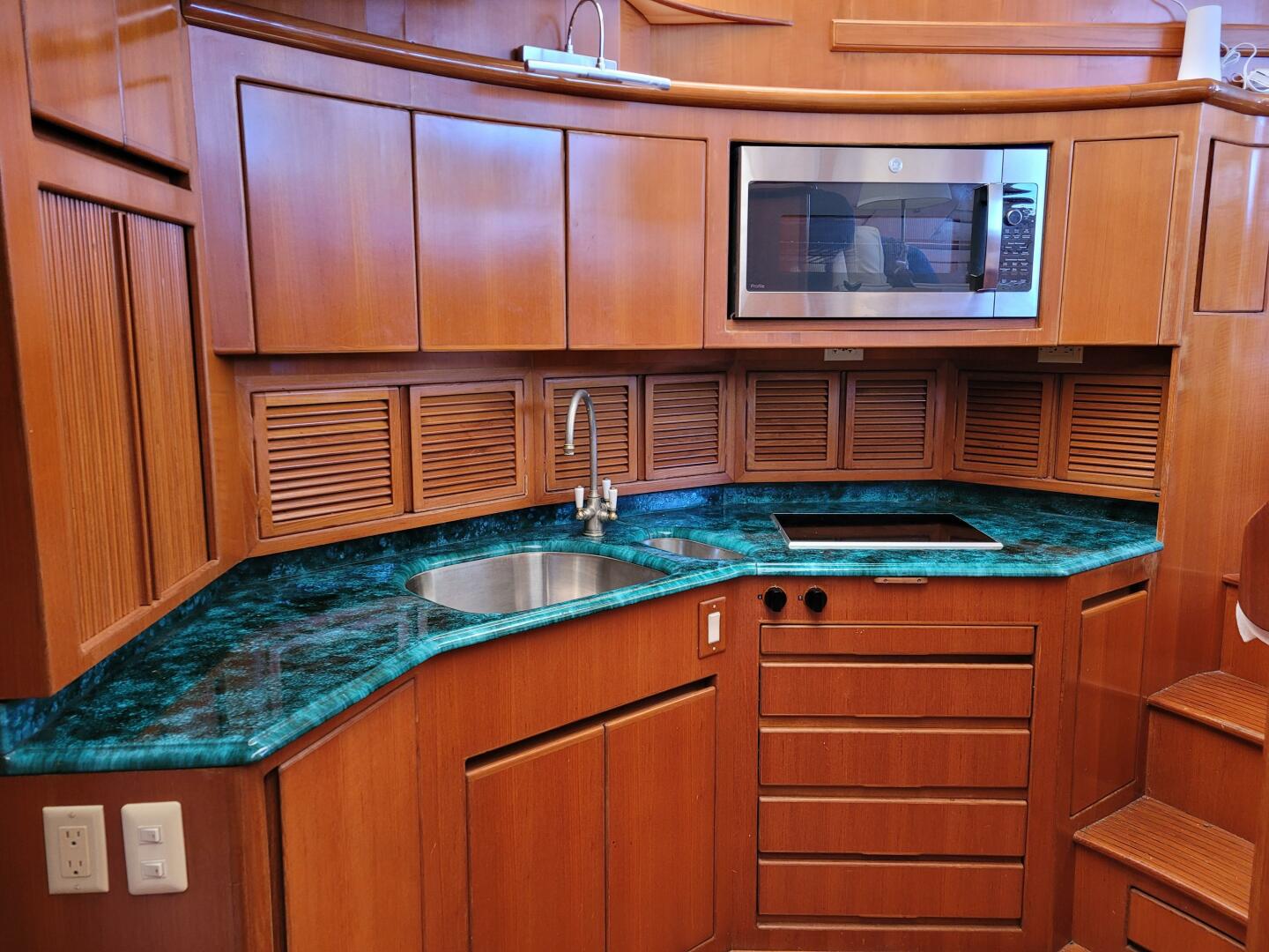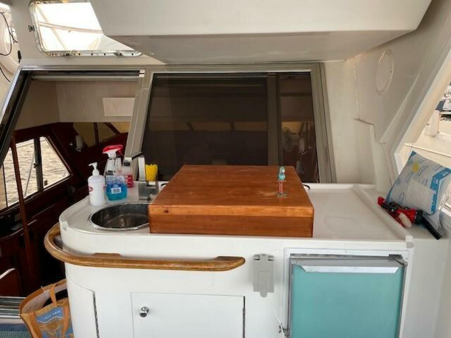 There is a Wet bar on the Aft deck with Jenn Air cooking, and a fridge, great spot to cook all your favorite meals and relax with the Sun Sets.