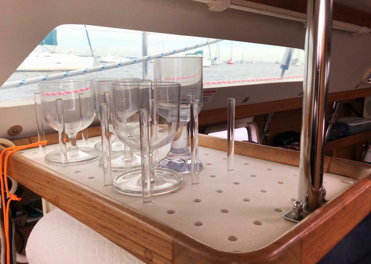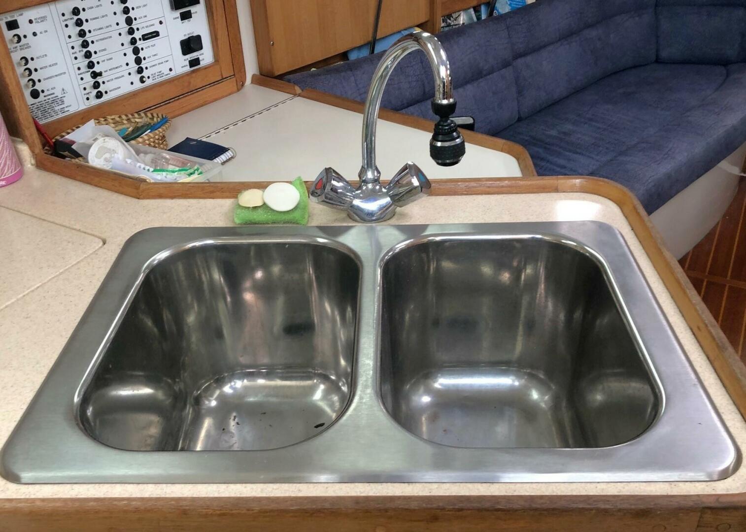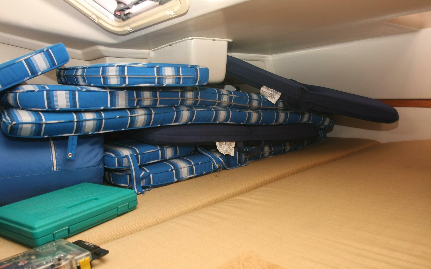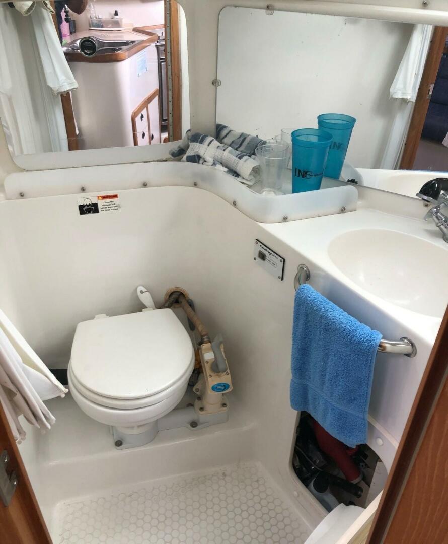 With a traditional layout with 6'2" headroom down below and can sleep as many as 7. Double aft athwart ship stateroom starboard and aft, with a full galley port of companionway. Adjacent to the galley is a head with sink, shower, vanity and storage. The roomy salon features a table which converts to a double berth along starboard midship, with a long couch bench to port with chart table. Double V-berth is forward.