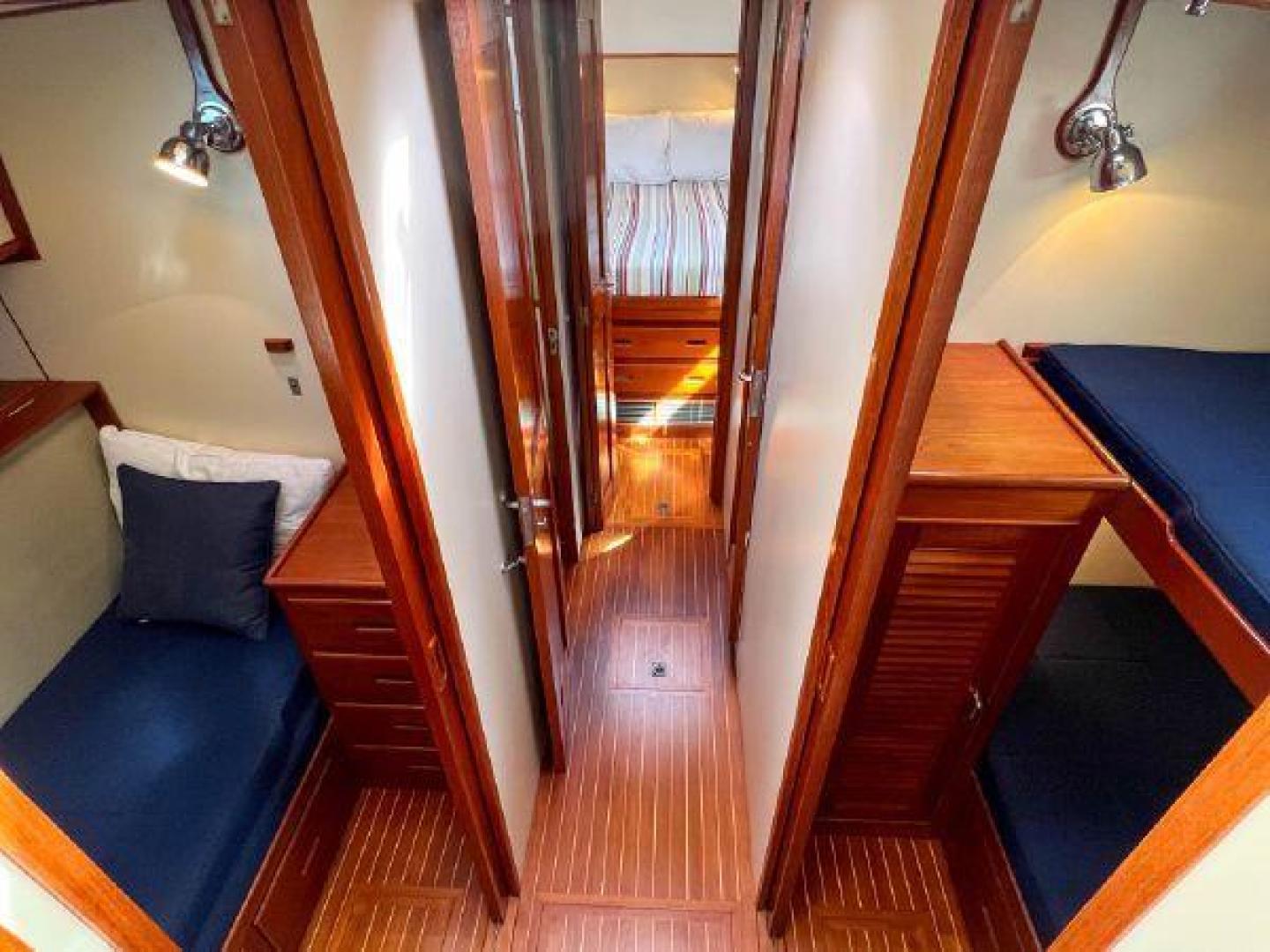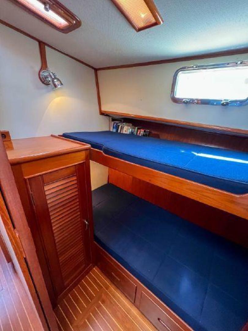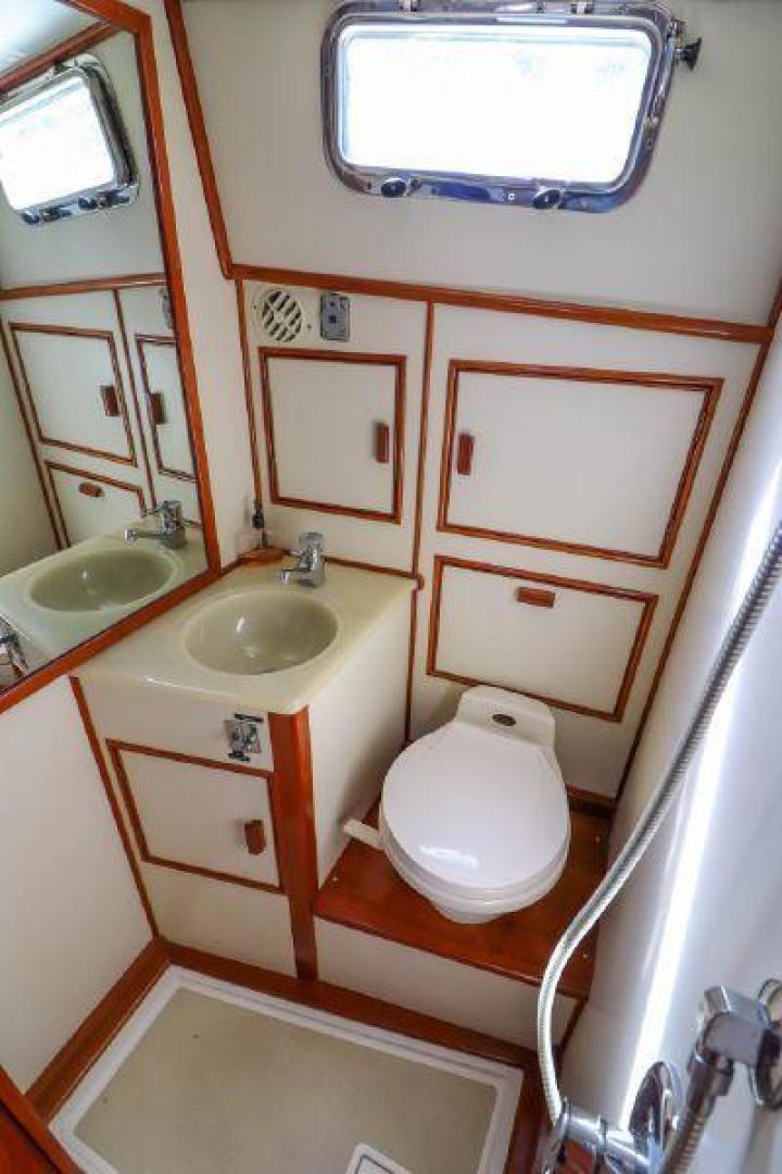The Grand Banks 43 Eastbay is one of the best cruising boats in the 40' range, with the Ray Hunt modified deep-vee hull design she provides a very comfortable ride in rough sea conditions. This 43 Flybridge has a unique layout with 3 staterooms and 2 heads down below and the galley up, she sleeps 6 comfortably in berths, perfect for family cruising with kids and grandkids!