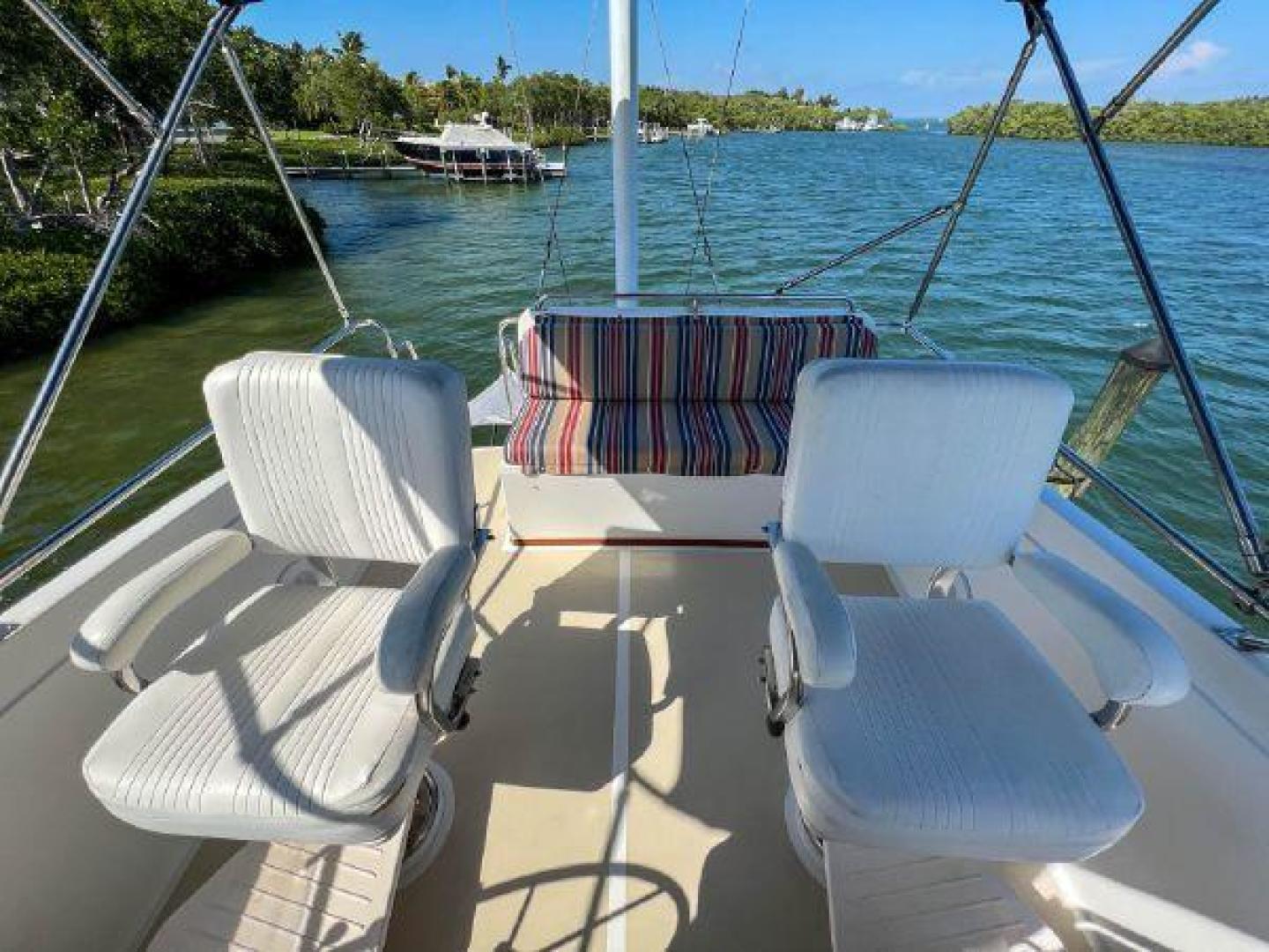 She has the preferred larger CAT 3208s which had a complete refurb in 2020 including servicing all coolers, all new hoses, injectors, engine mounts, etc. High cruise speed is 22 knots and top speed is in the high 20s. Other recent upgrades include: new salon upholstery and headliners, Awlgrip hull paint, bottom paint, dripless shaft seals, cockpit sunshade with carbon fiber poles, and a new galley refrigerator.