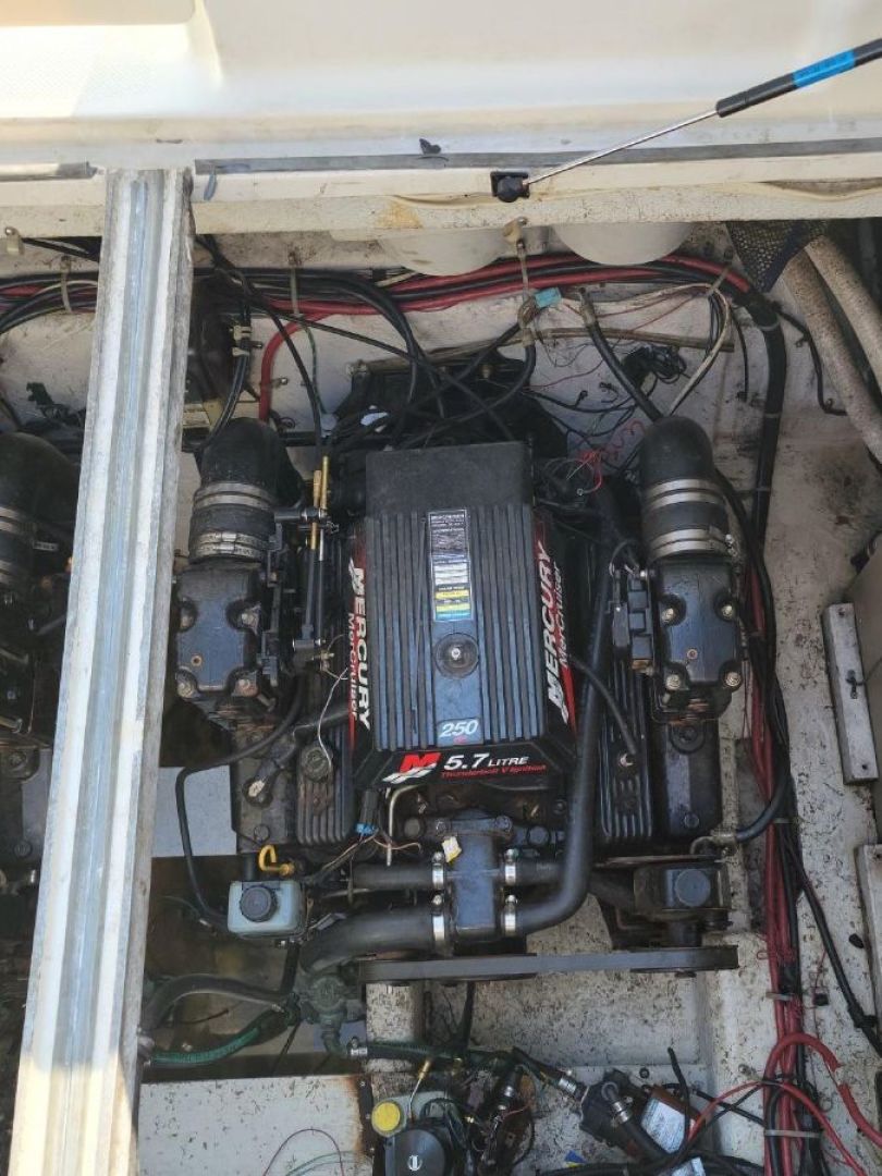 Among several sterndrive engine options, twin 320hp MerCruisers cruise the 3300 SCR in the low-to-mid 20s and reach a top speed of 35+ knots.