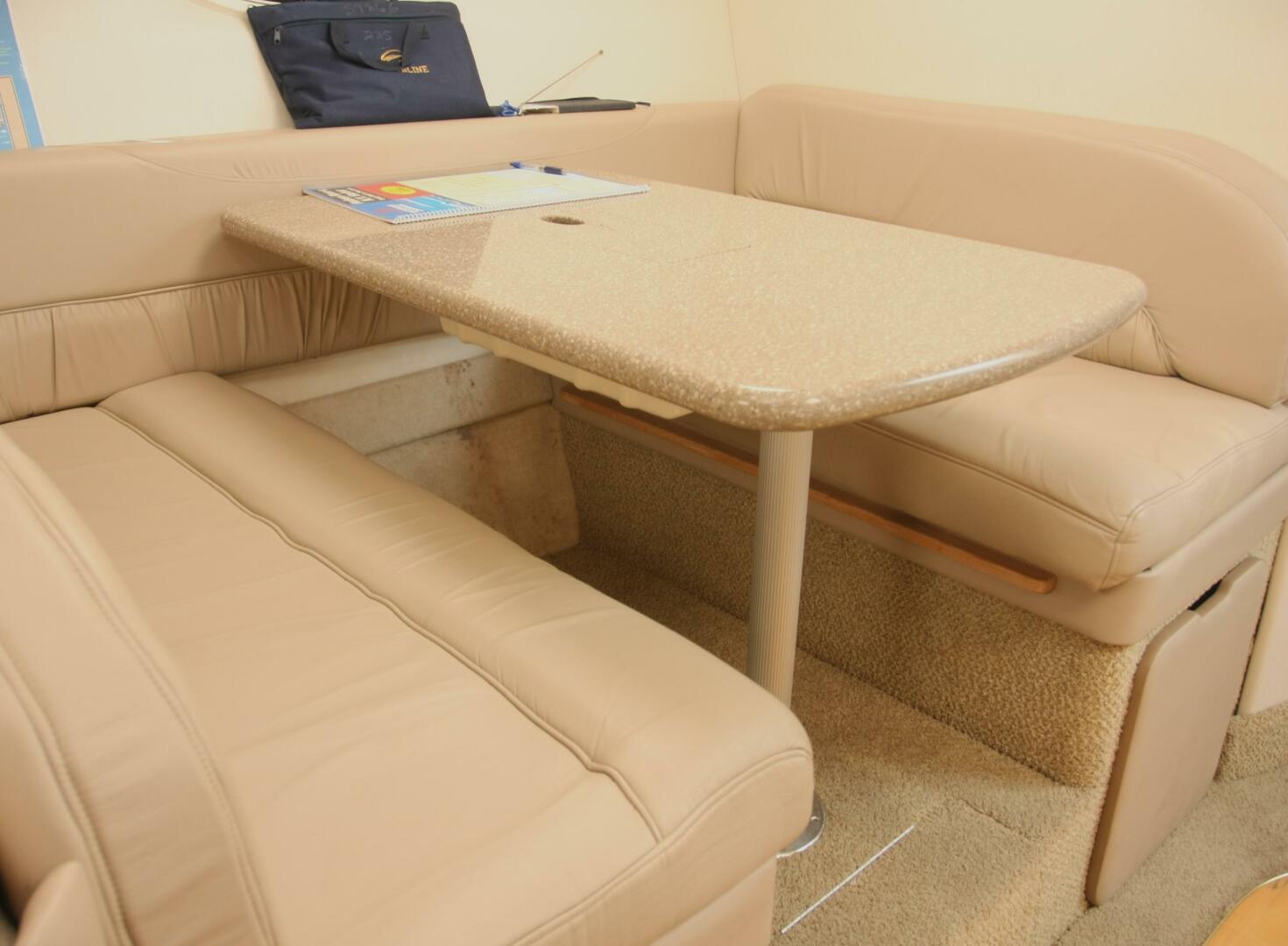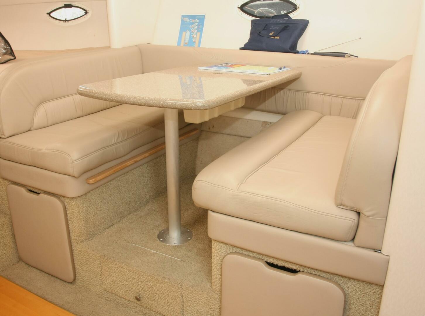 The Maxum 3300SCR is for those who demand both quality and performance. Maxum's flagship cruiser has a wraparound console embracing a helm equipped with an impressive complement of instruments in an ergonomically designed console. A cockpit wetbar invites spontaneous celebration. The spacious galley of the 3300SCR has hardwood floors, berber-style carpet, rich Corian countertops, and designer fabrics. Entertain with panache from a gourmet galley, and fall asleep in a moonlit berth. The salon features a dinette lounge seat with an adjustable height, high - low Corian tabletop.