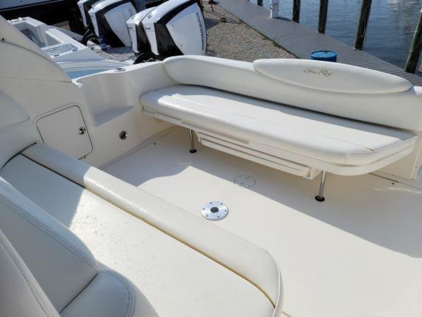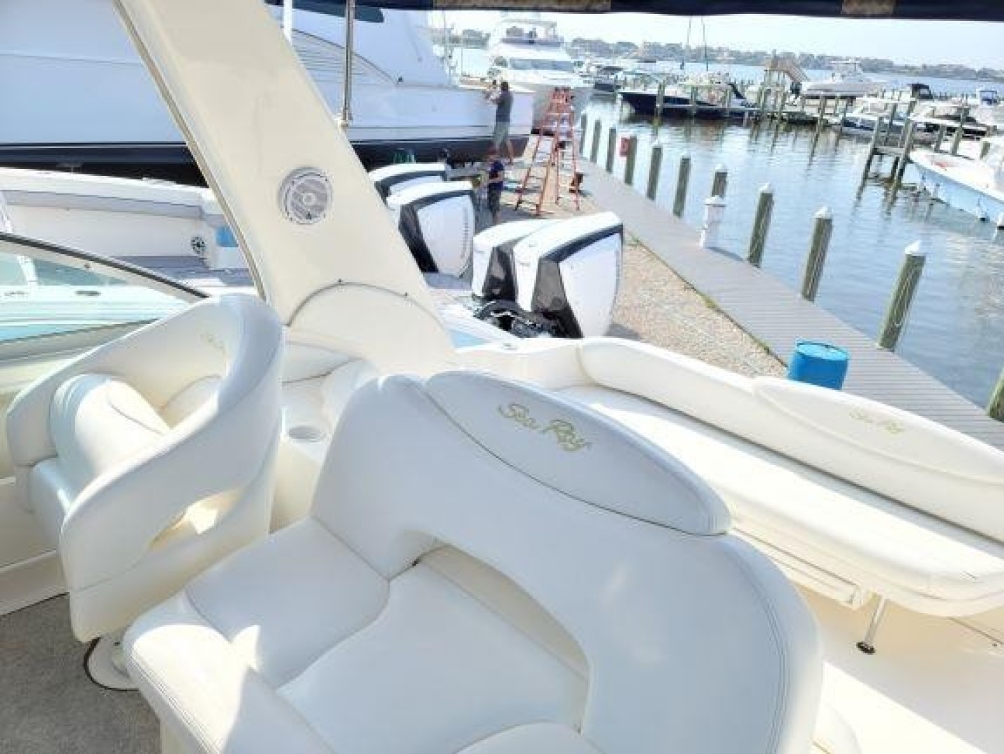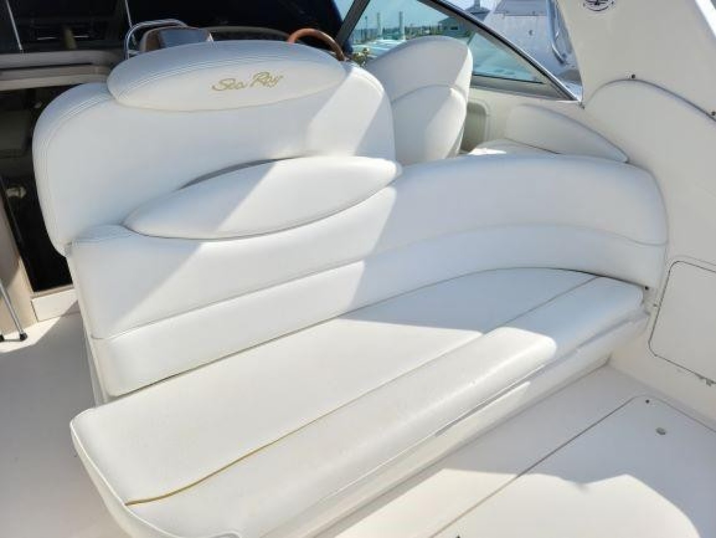 The Sea Ray 340 Sundancer features high performance, comfort, and quality, combined in one sleek cruising package. Powered by twin MX6.2L MPI MerCruiser V-drives, the 340 Sundancer has plenty of power. Her sleeping accommodations for six means ample accommodations for family and friends.
