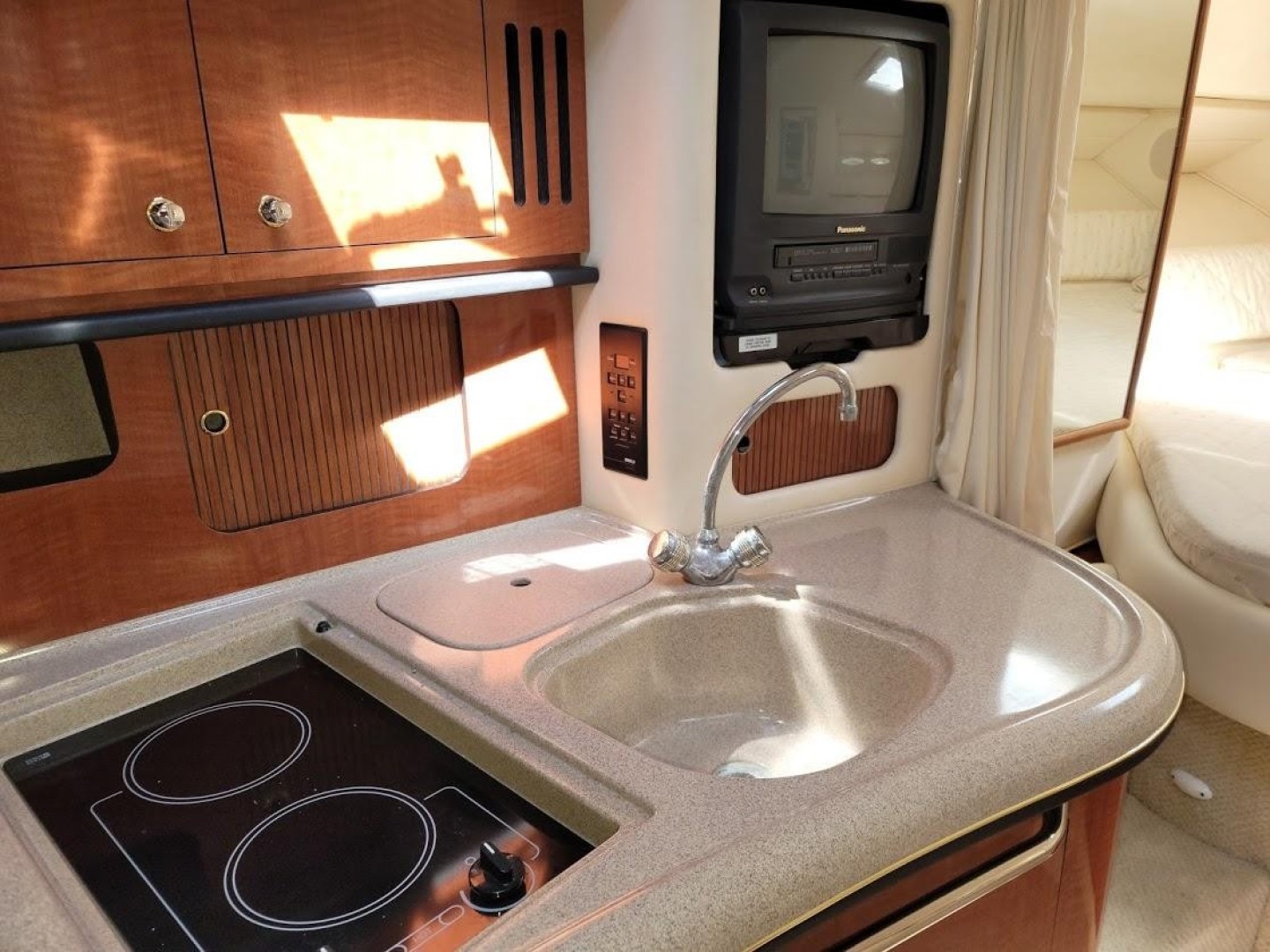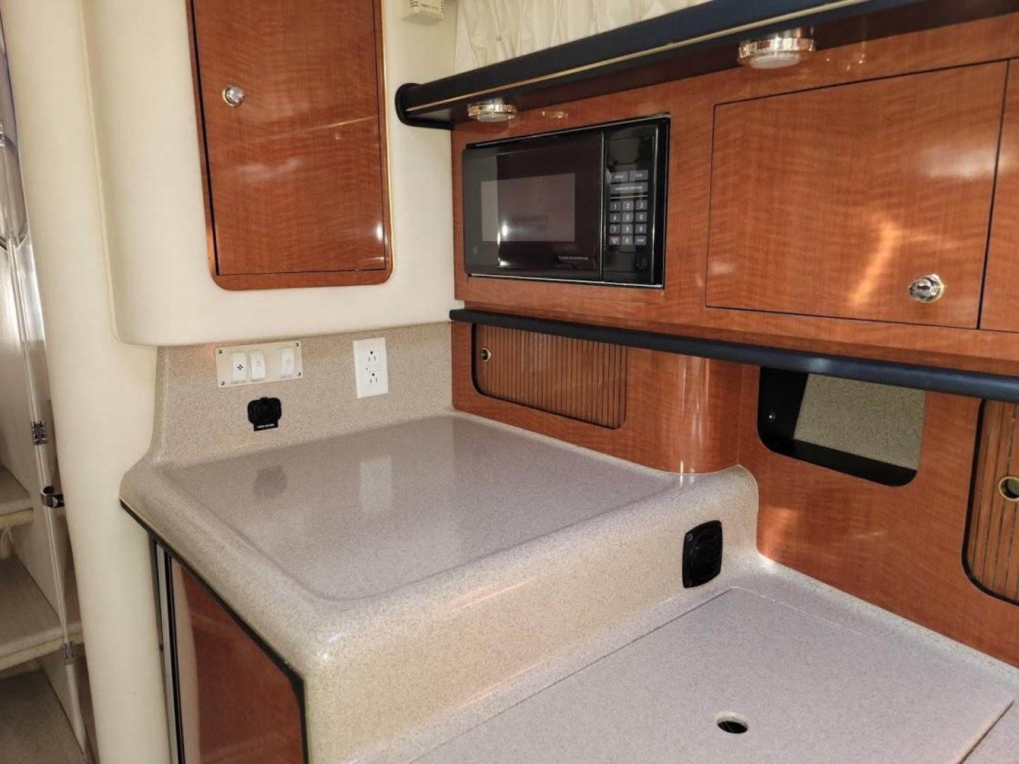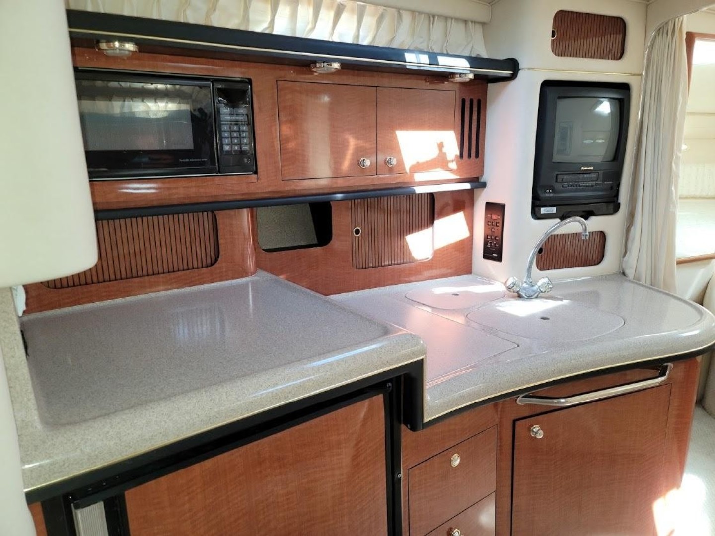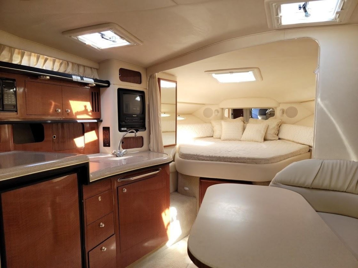 The Sea Ray 340 Sundancer features high performance, comfort, and quality, combined in one sleek cruising package. Powered by twin MX6.2L MPI MerCruiser V-drives, the 340 Sundancer has plenty of power. Her sleeping accommodations for six means ample accommodations for family and friends.