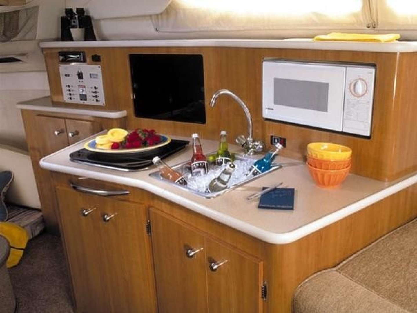 It provides wide-beam spaciousness in both the cabin and the cockpit, in combination with the affordability and fuel efficiency of the small block V-8 engine.