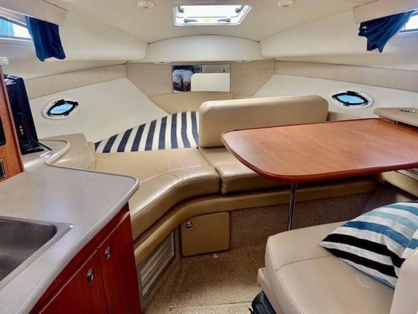 The Bayliner 2655 Ciera offers an express-style design, an efficient interior layout, and a long list of features for improved comfort, convenience and safety. It provides wide-beam spaciousness in both the cabin and the cockpit, in combination with the affordability and fuel efficiency of the small block V-8 engine.