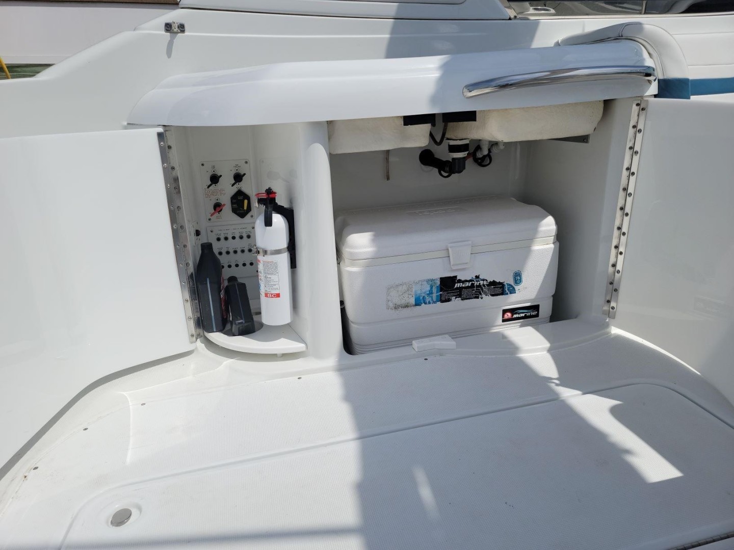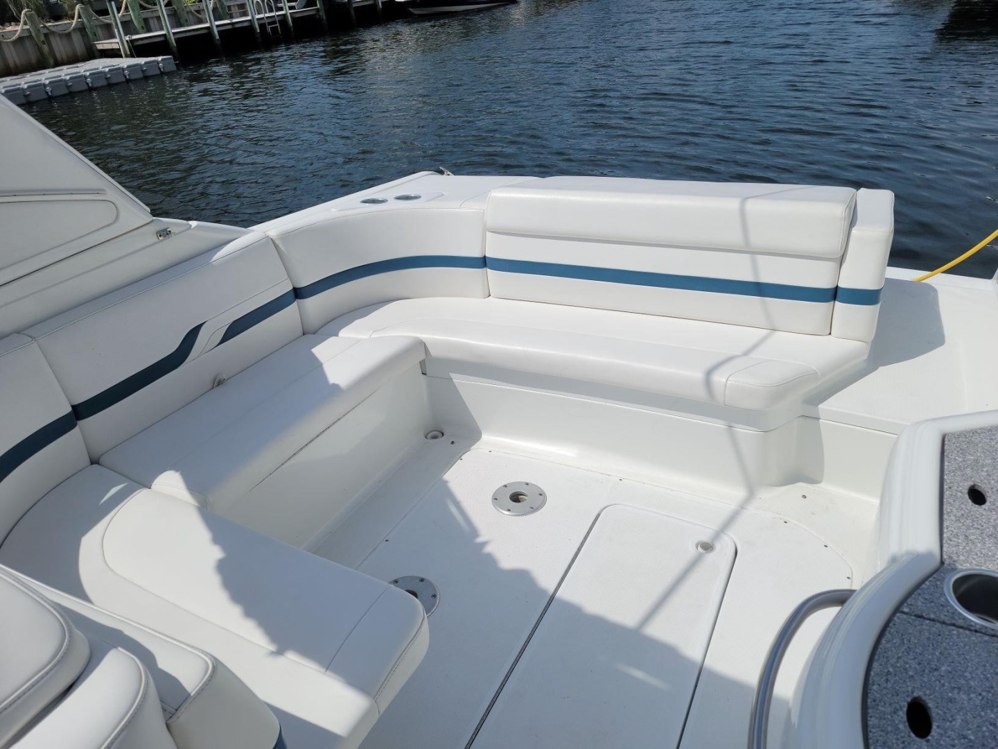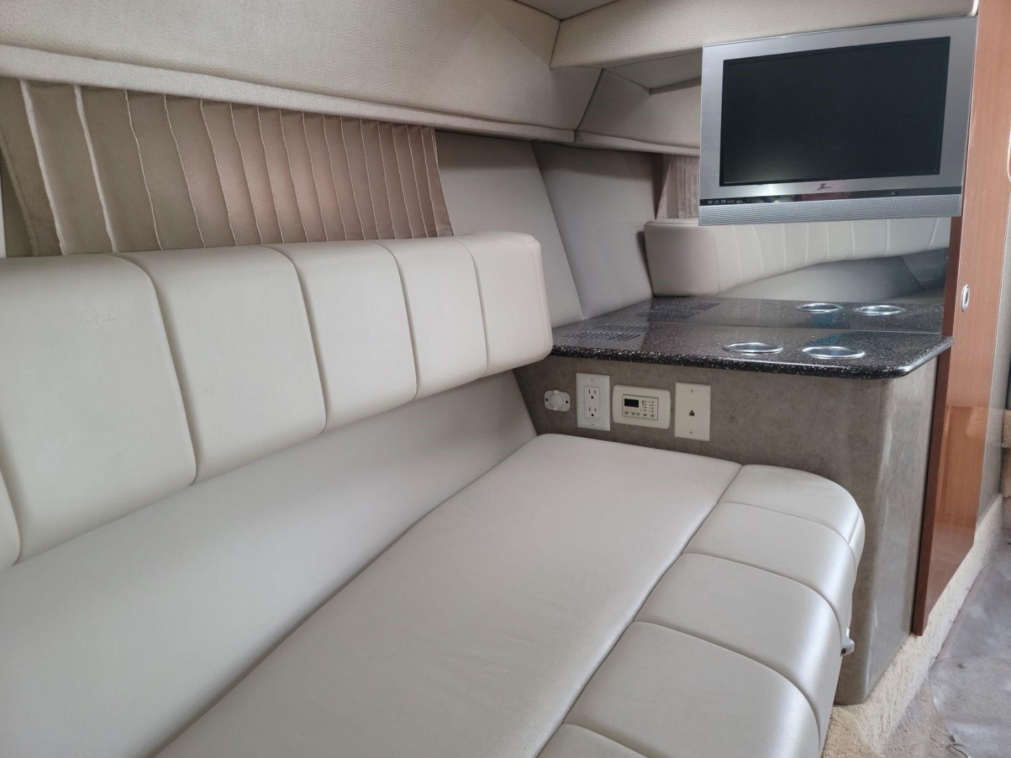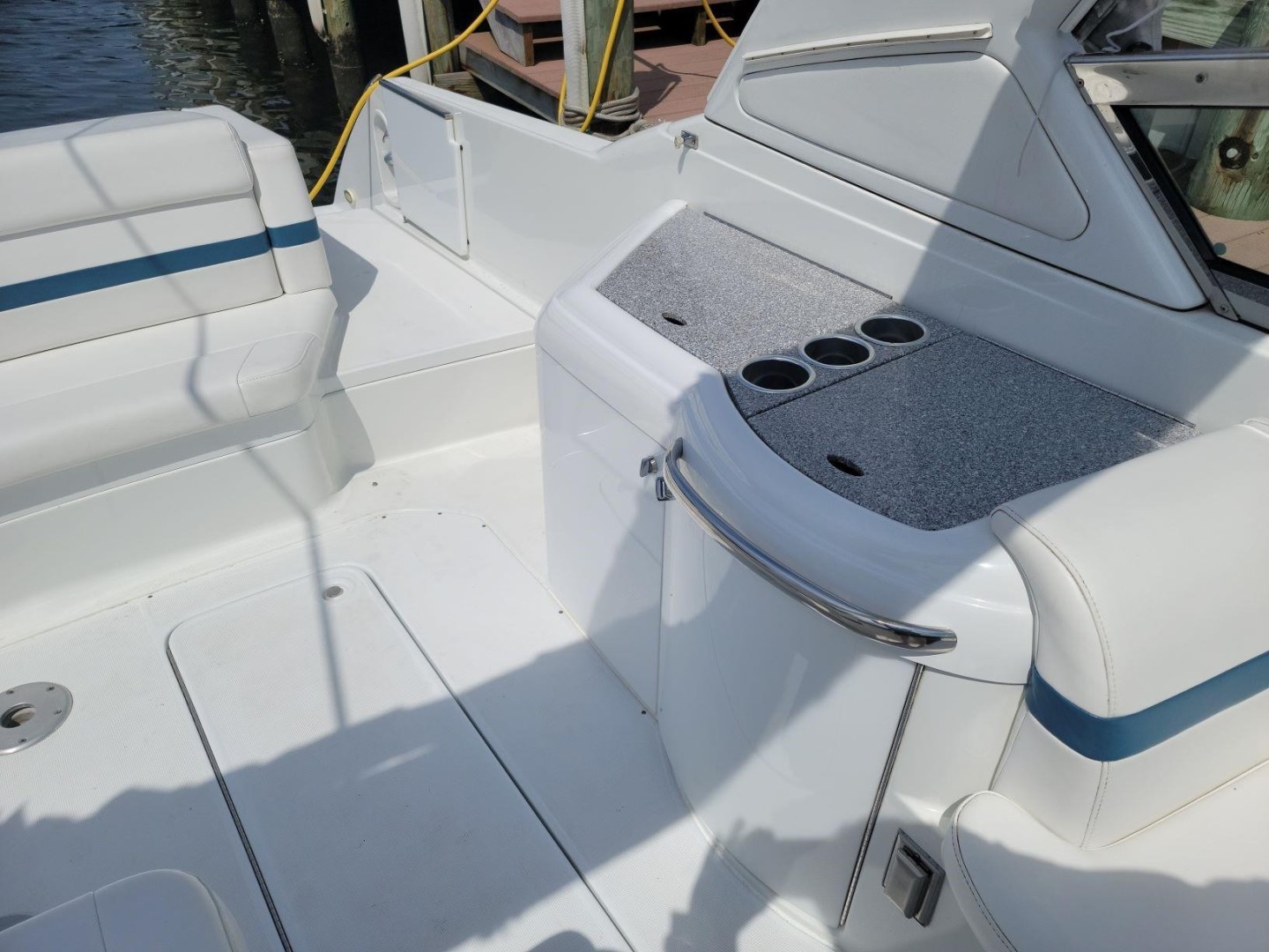 This original owner 2005 330 Sun Sport is a fast, fun and safe sport boat. This boat looks just as new as when it was built. The owner has been meticulous with the care and maintenance of this beautiful boat. The refrigerator still has the instruction manual in it. The microwave still has the glass tray secured in its original foam packaging for shipping and the Ultraleather tag is still on the v-berth seating. The cockpit vinyl is in bristol condition.