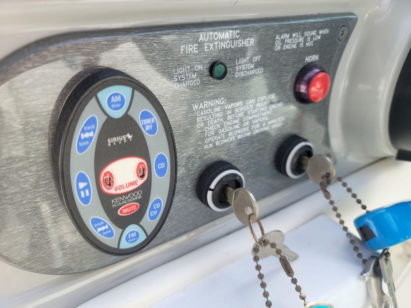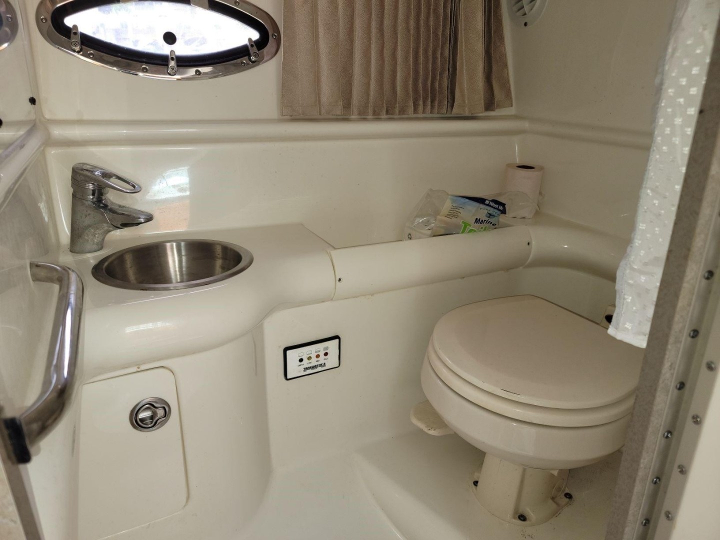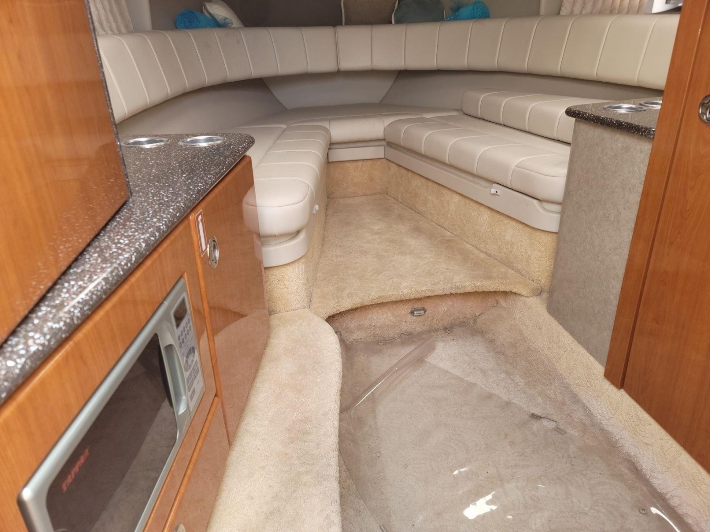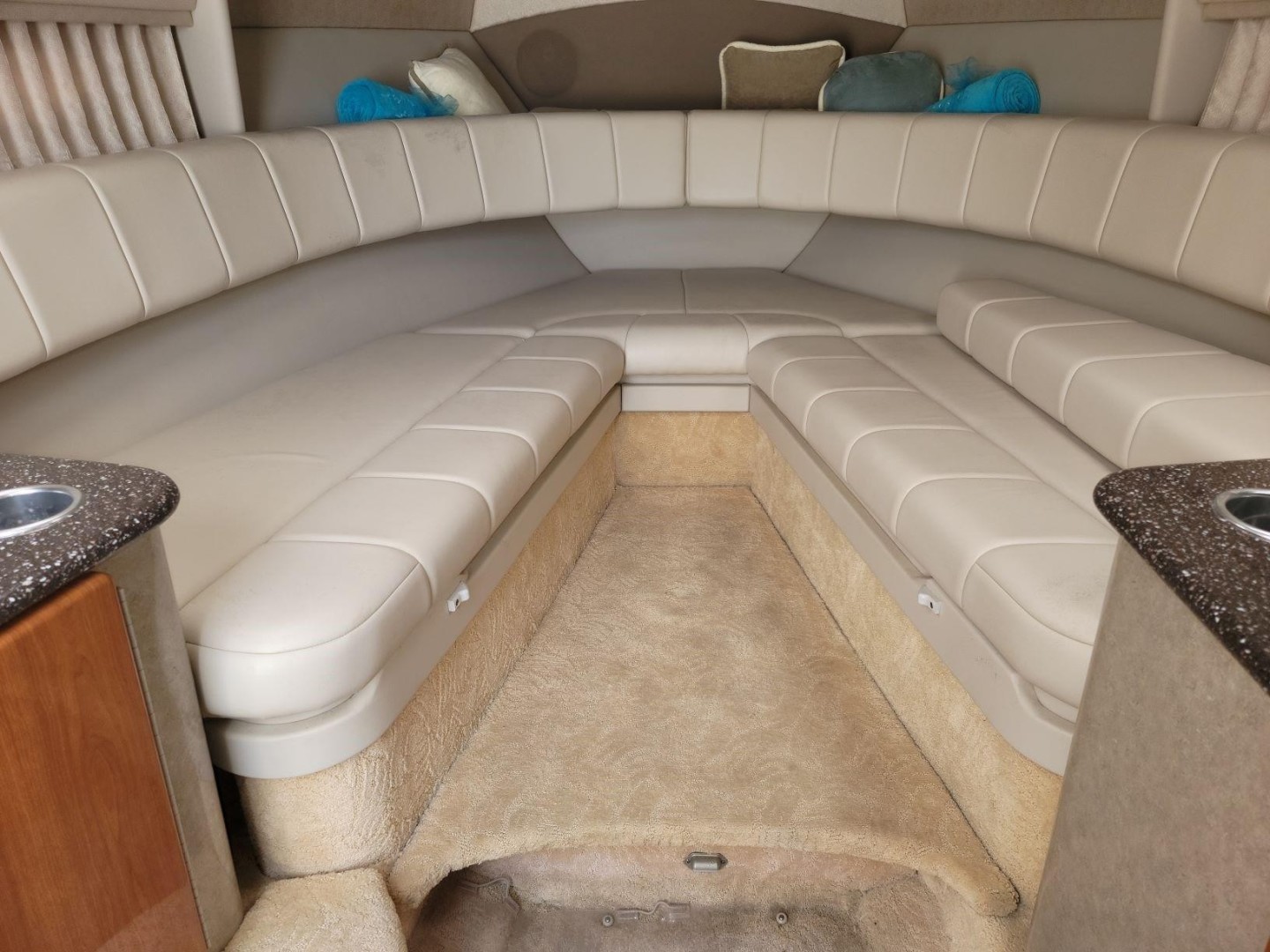 This original owner 2005 330 Sun Sport is a fast, fun and safe sport boat. This boat looks just as new as when it was built. The owner has been meticulous with the care and maintenance of this beautiful boat. The refrigerator still has the instruction manual in it. The microwave still has the glass tray secured in its original foam packaging for shipping and the Ultraleather tag is still on the v-berth seating. The cockpit vinyl is in bristol condition.