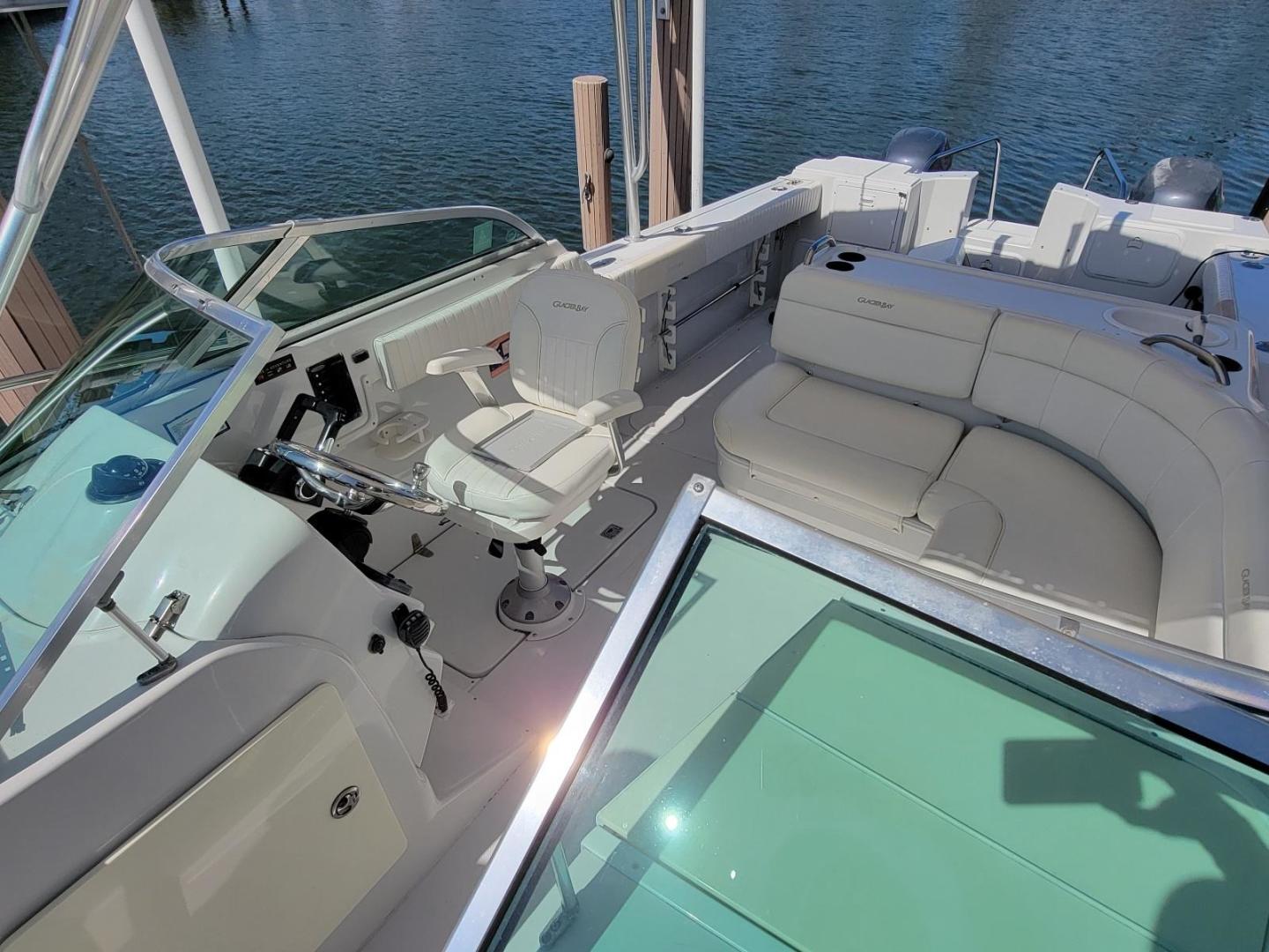 ORIGINAL OWNER, This fantastic Glacier Bay 2640 Renegade is now available. She is a fine vessel that has been cared for and is in unaltered state. Oher than routine maintenance she is just like a factory new boat. Upgraded electronics last year. Low how on a pair of perfect running 150 4 strokes. There is some sun damage on a few cushions and on the motor cowlings. but other than that this is a un messed with fantastical low hour boat.