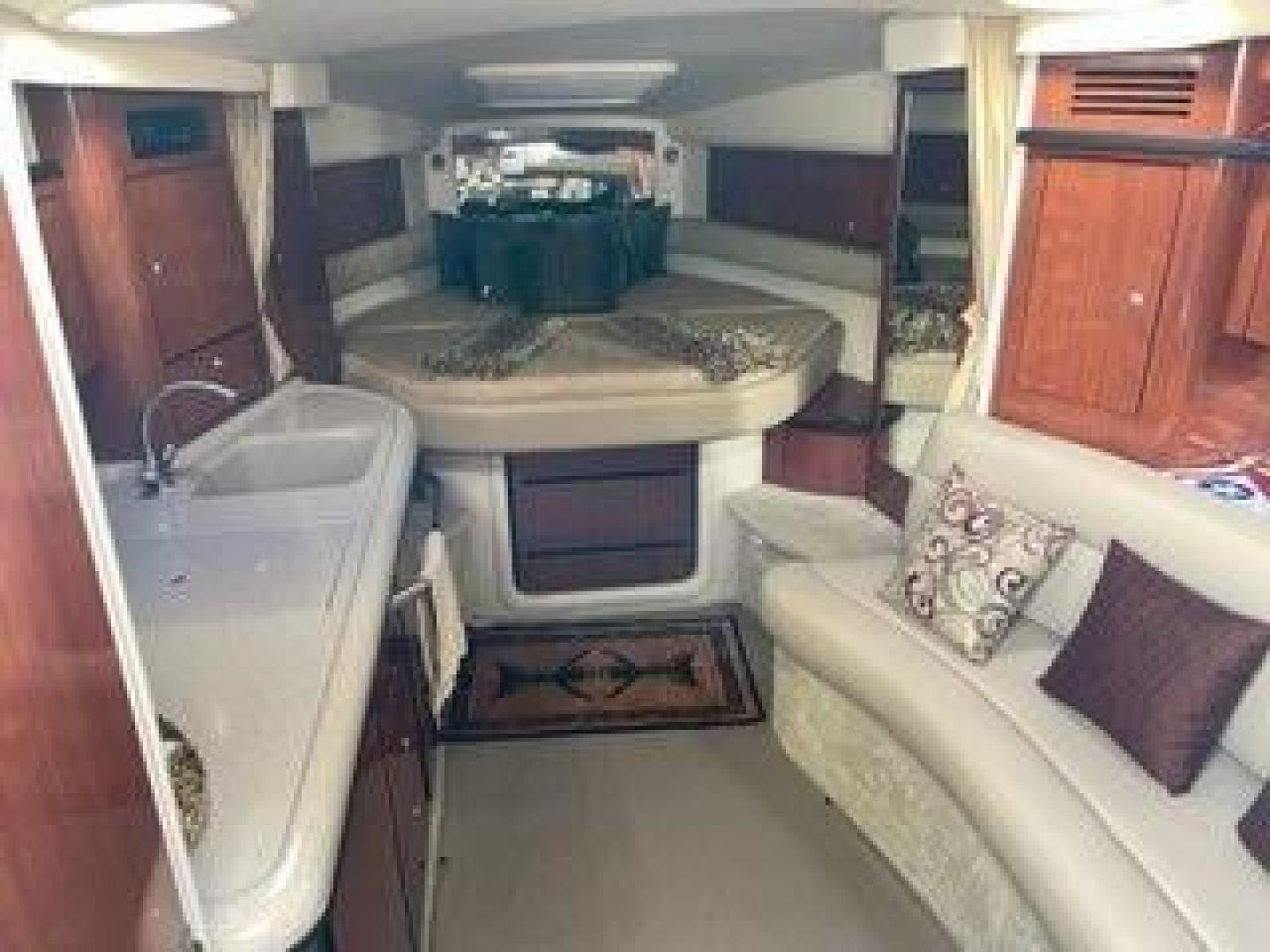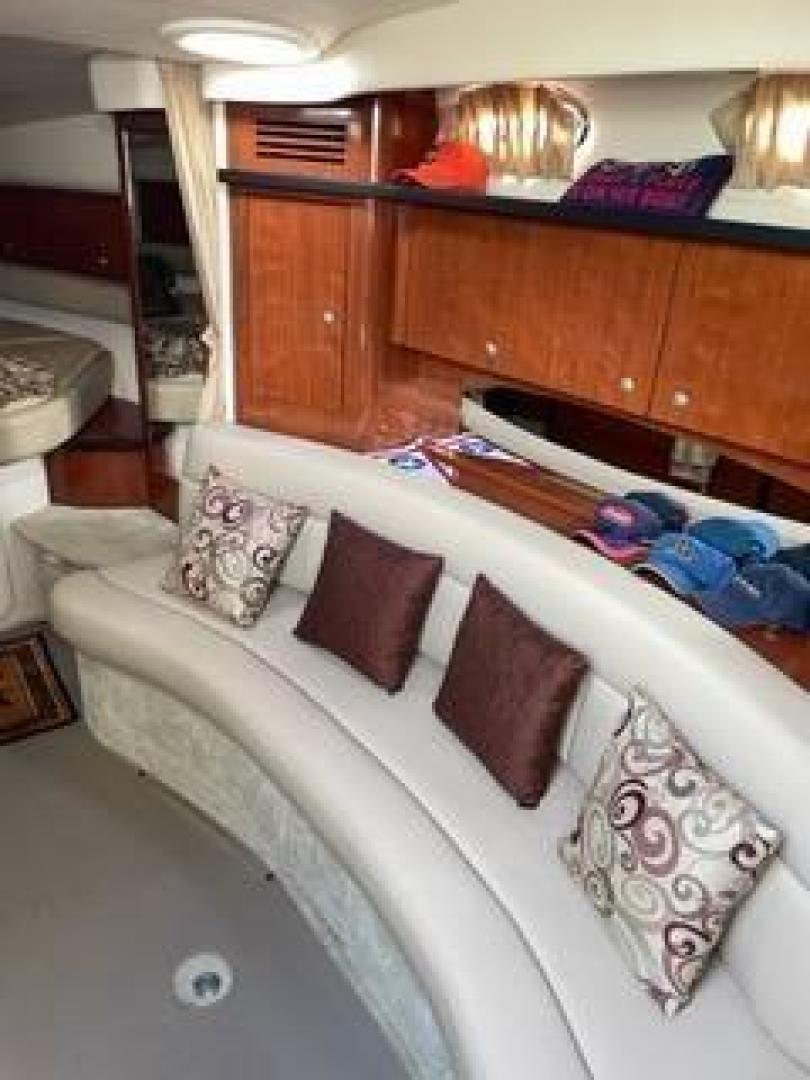 Simply irresistible. There's no other way to describe this remarkable boat. Its timeless beauty and unmatched elegance make it clearly the best in its class. Powered by your choice of sterndrive or inboard propulsion, this magnificent cruiser features dual bucket helm seats, extra-large control station, cockpit wet bar, awesome sound system, wide open cabin, and optional 32" flatscreen TV.