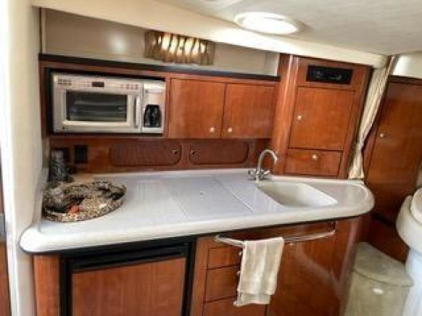 Simply irresistible. There's no other way to describe this remarkable boat. Its timeless beauty and unmatched elegance make it clearly the best in its class. Powered by your choice of sterndrive or inboard propulsion, this magnificent cruiser features dual bucket helm seats, extra-large control station, cockpit wet bar, awesome sound system, wide open cabin, and optional 32" flatscreen TV.