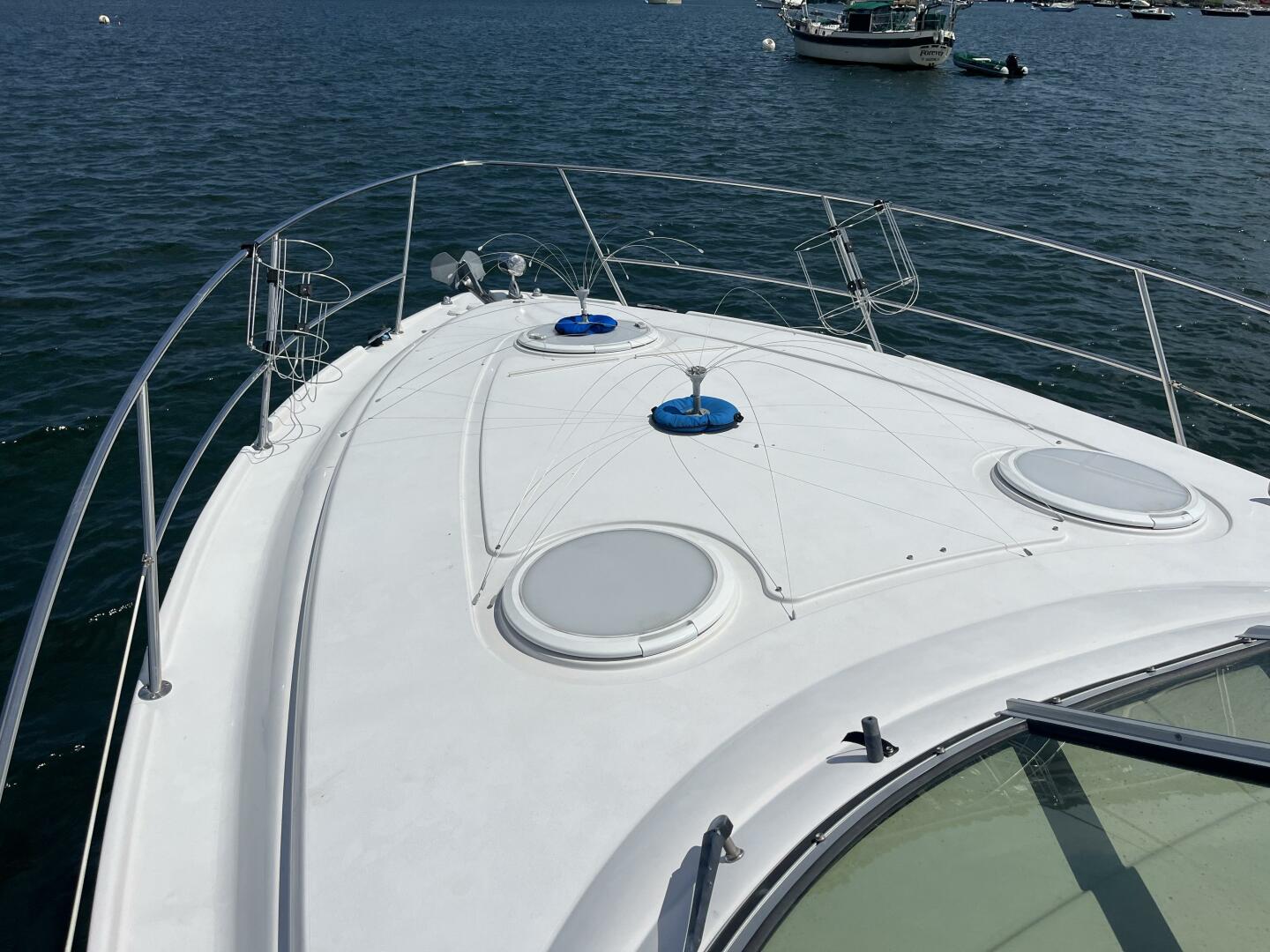 The foredeck is wide and flush and includes snap-on cushions, transforming it to an expansive and comfortable sun-pad for lounging or enjoying a cocktail at sunset.