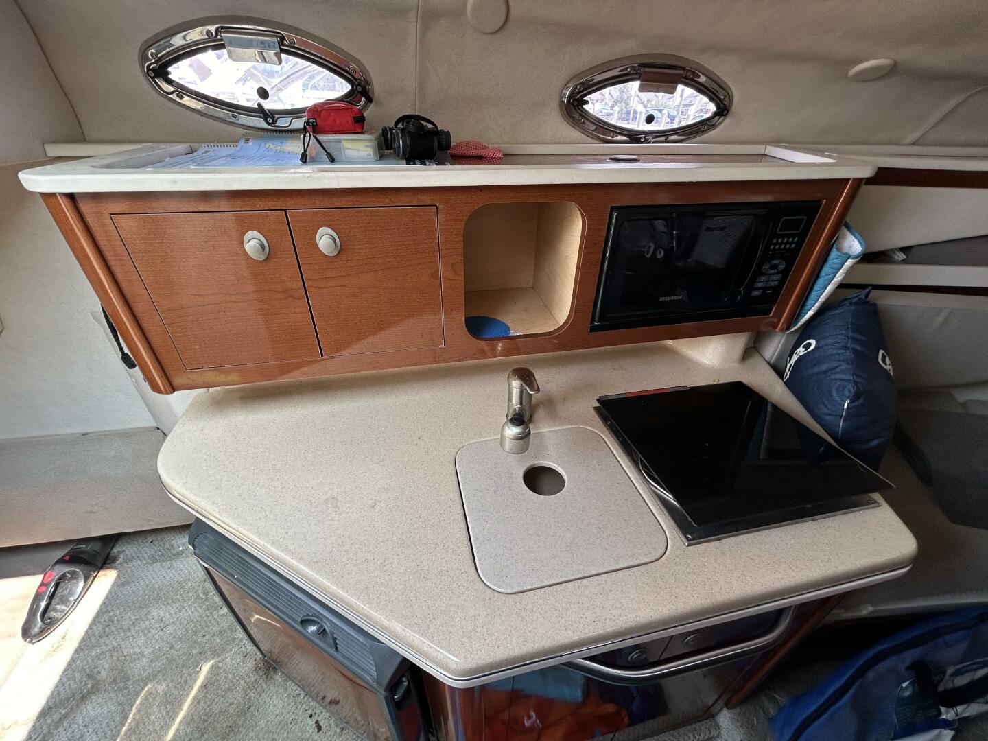 The Sea Ray 270 Amberjack offers the best of both worlds for sports-minded families-comfortable cruising plus an optional full-feature fishing package. The stylish cockpit includes versatile seating and built-in storage, while the spacious cabin below features a convenient galley and dinette, elegant V-berth and full-size head with vanity and shower. Boat was not put in water until 2010.