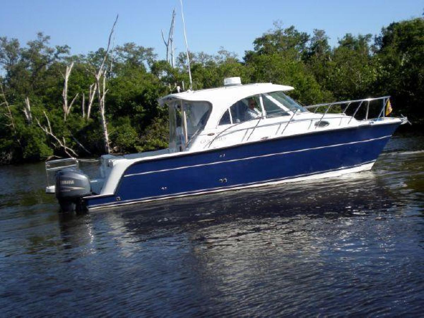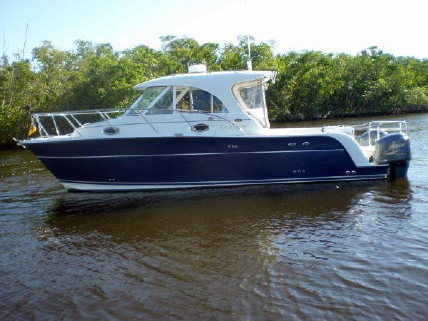 The 3080 Cuddy Hardtop blends all the design features of the 3070 with an all weather cabin design. The standard model has a high quality aft canvas enclosure that can be easily removed on warm weather days. This option gives an open feel to the salon and aft cockpit, yet when in place the canvas is watertight and holds in the heat or air-conditioning.
