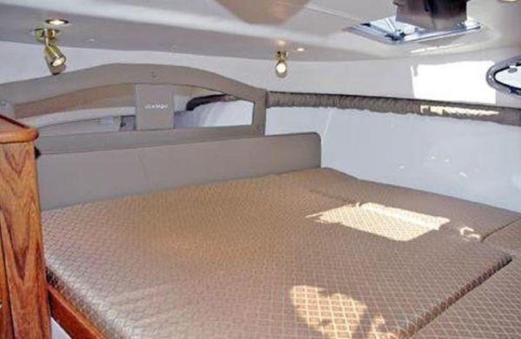 In most areas the hull is laminated with 15.9mm to 22.2mm of solid fiberglass, and backed up with 127mm to 203mm of cross linked urethane foam and then reinforced with the hull’s inner lining.