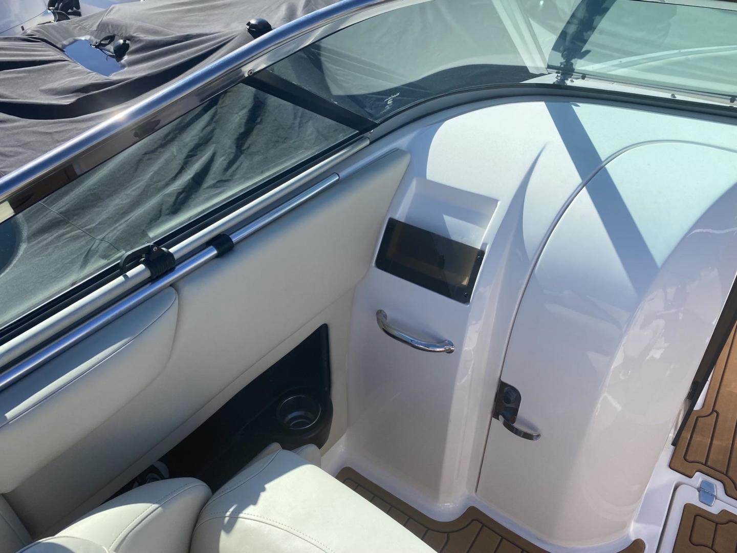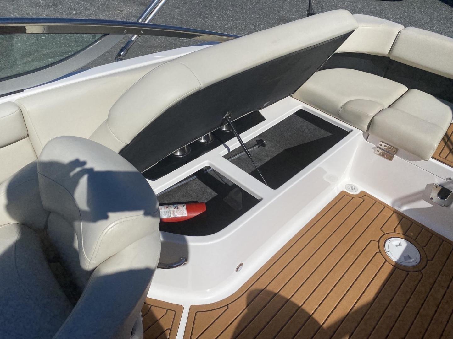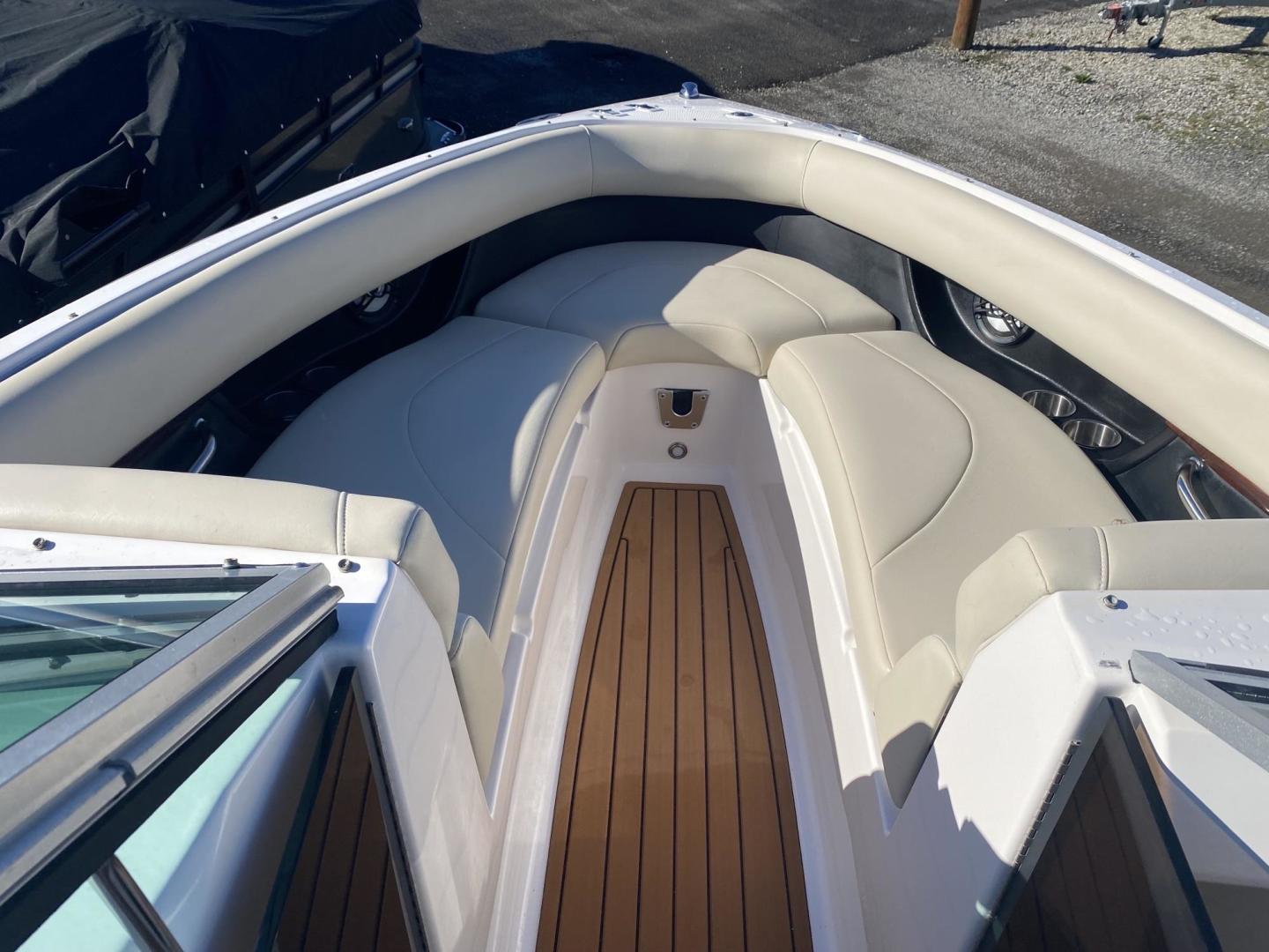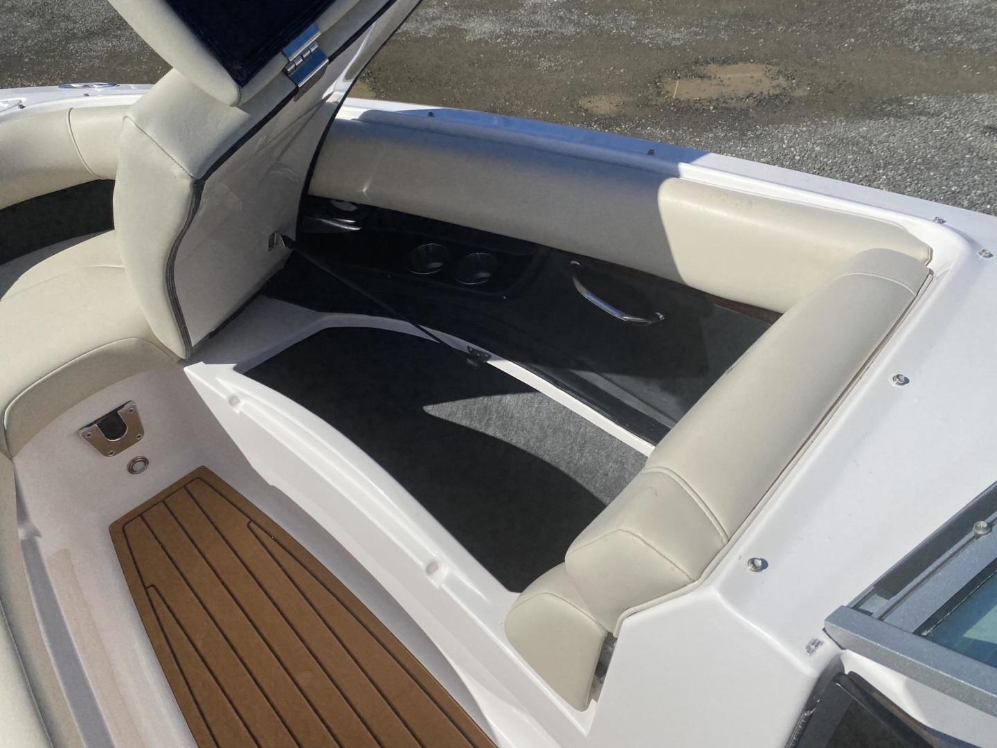 By maximizing the wetted surface and getting every square inch out of its interior, the 2500 FasTrac runs like a boat two feet shorter underneath and two feet longer inside. Based on Regal's award-winning FasTrac hull, the 2500 gets families where they want to go, quicker, faster and with better fuel economy than other boats its size. The 2500's full-beam step breaks up surface tension when at speed, sending an army of air under the aft one-third of the hull. While its standard, torque- filled 5.0 L powerplant will push your back against the seat, adding an optional 8.1 will push 60 mph -- and push back your eyelids. For a touch as responsive as the ride, Volvo's EVC (electronic vessel control) or MerCruiser's DTS (digital throttle and shift) upgrades are a must. What those eyes will see is an eloquent combination of champagne, slate or white mildew-resistant, foam-backed vinyl. While easy on the eyes, the interior is even easier on backsides. Contoured bow seats, adjustable armrests and full-length, uninterrupted coaming panels provide bow riders with comfy cushions. A second glance reveals the mahogany strip accents and stitched vinyl coaming panels, pairing comfort with class. In the massive cockpit, there are plenty of spots to claim, including two fully-swiveling captain's buckets and elongated benches on either side, which open on gas-assist struts to reveal cavernous storage compartments. Detailed accents extend into the head compartment, with a standard Corian countertop vanity, cabinetry storage and Flexiteek floor.