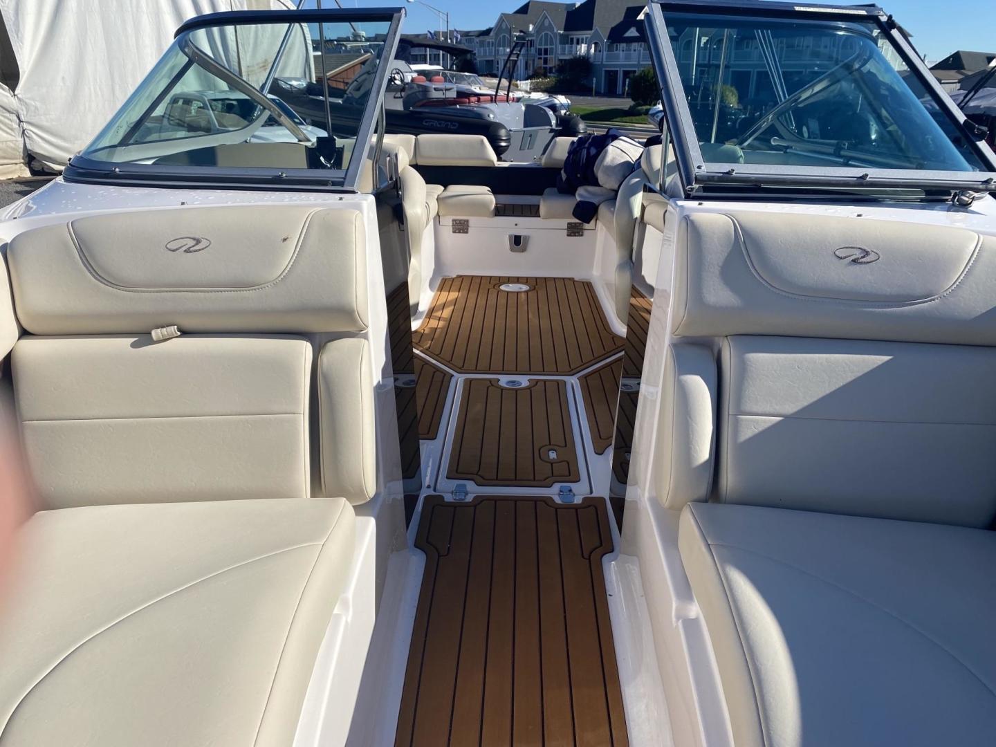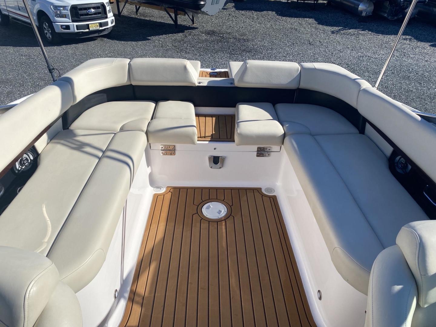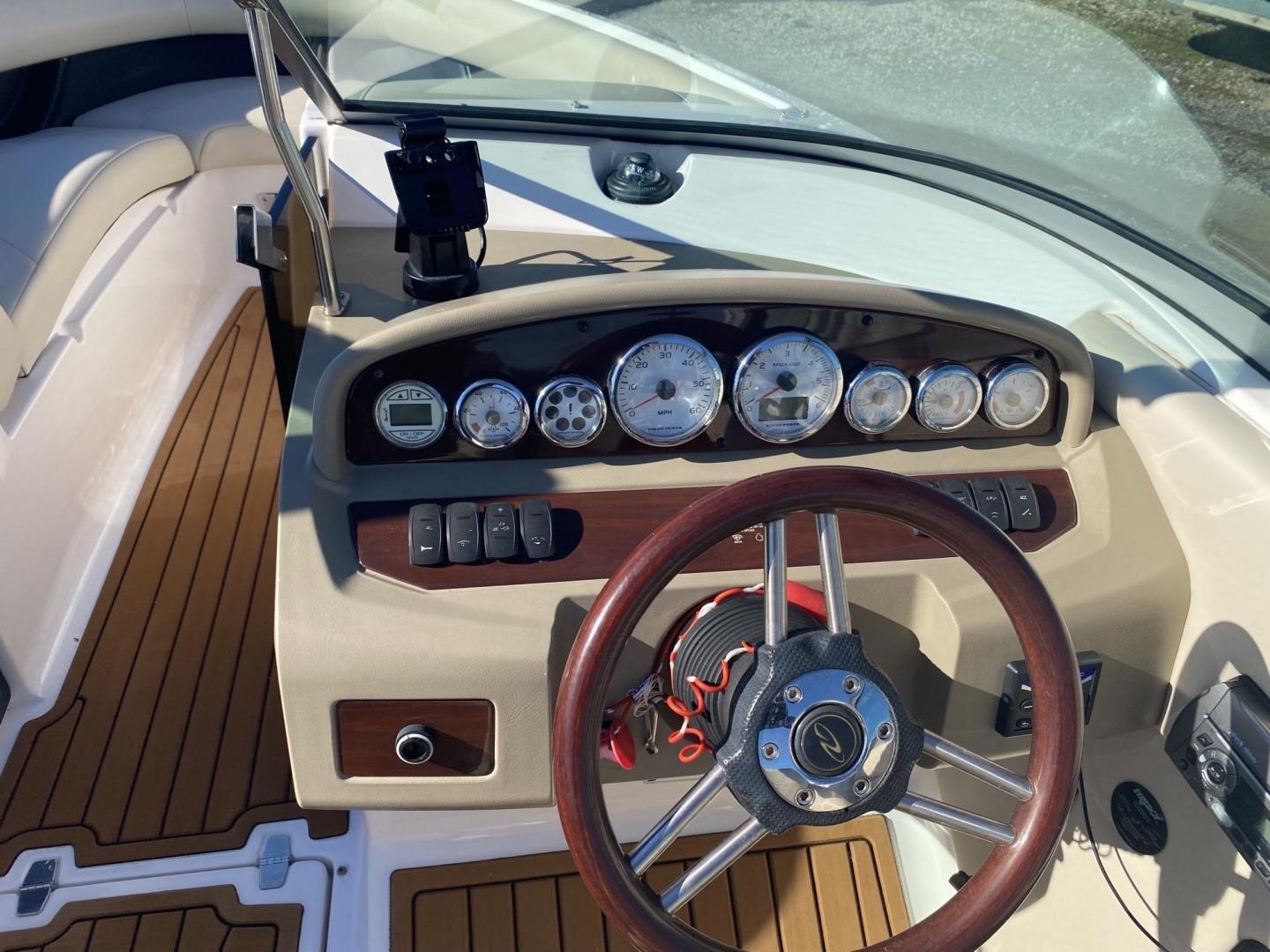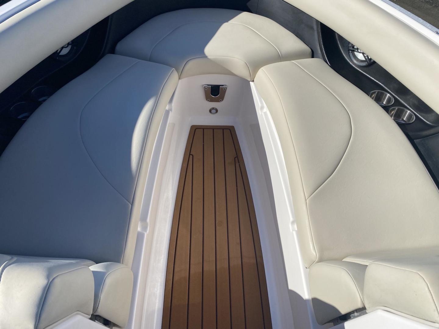 By maximizing the wetted surface and getting every square inch out of its interior, the 2500 FasTrac runs like a boat two feet shorter underneath and two feet longer inside. Based on Regal's award-winning FasTrac hull, the 2500 gets families where they want to go, quicker, faster and with better fuel economy than other boats its size. The 2500's full-beam step breaks up surface tension when at speed, sending an army of air under the aft one-third of the hull. While its standard, torque- filled 5.0 L powerplant will push your back against the seat, adding an optional 8.1 will push 60 mph -- and push back your eyelids. For a touch as responsive as the ride, Volvo's EVC (electronic vessel control) or MerCruiser's DTS (digital throttle and shift) upgrades are a must. What those eyes will see is an eloquent combination of champagne, slate or white mildew-resistant, foam-backed vinyl. While easy on the eyes, the interior is even easier on backsides. Contoured bow seats, adjustable armrests and full-length, uninterrupted coaming panels provide bow riders with comfy cushions. A second glance reveals the mahogany strip accents and stitched vinyl coaming panels, pairing comfort with class. In the massive cockpit, there are plenty of spots to claim, including two fully-swiveling captain's buckets and elongated benches on either side, which open on gas-assist struts to reveal cavernous storage compartments. Detailed accents extend into the head compartment, with a standard Corian countertop vanity, cabinetry storage and Flexiteek floor.