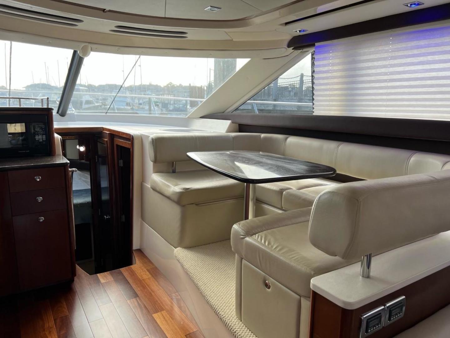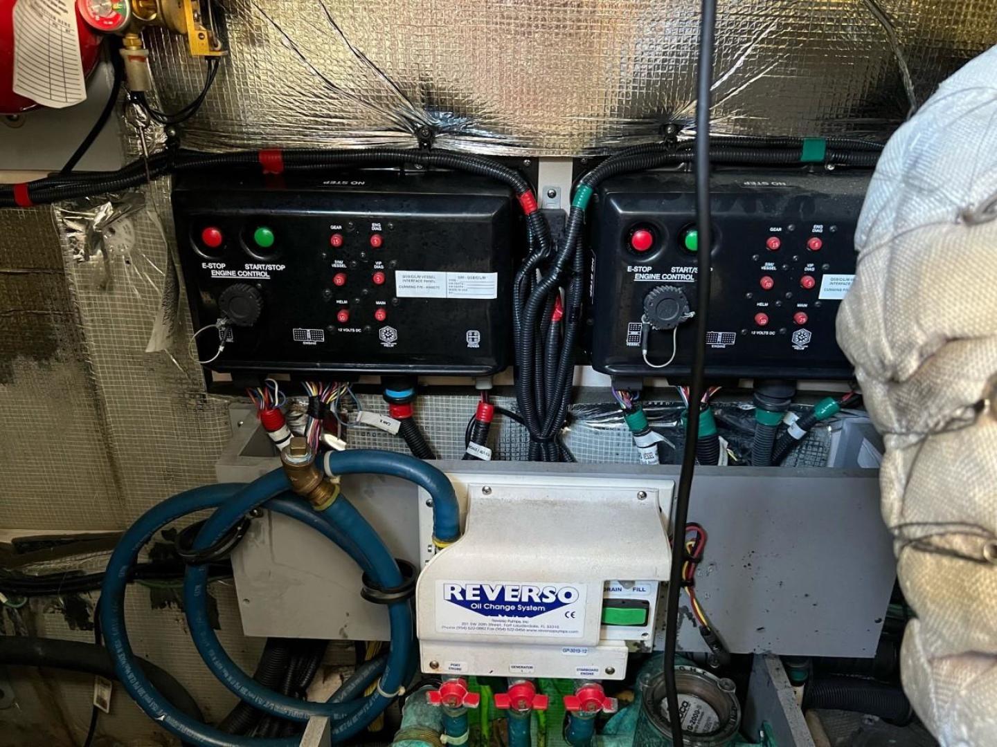 The yacht is remarkably maneuverable with the combination of Cummins Diesel engines, bow and stern thrusters and Joystick Controls. They perform well and offer fantastic speed and fuel efficiency.