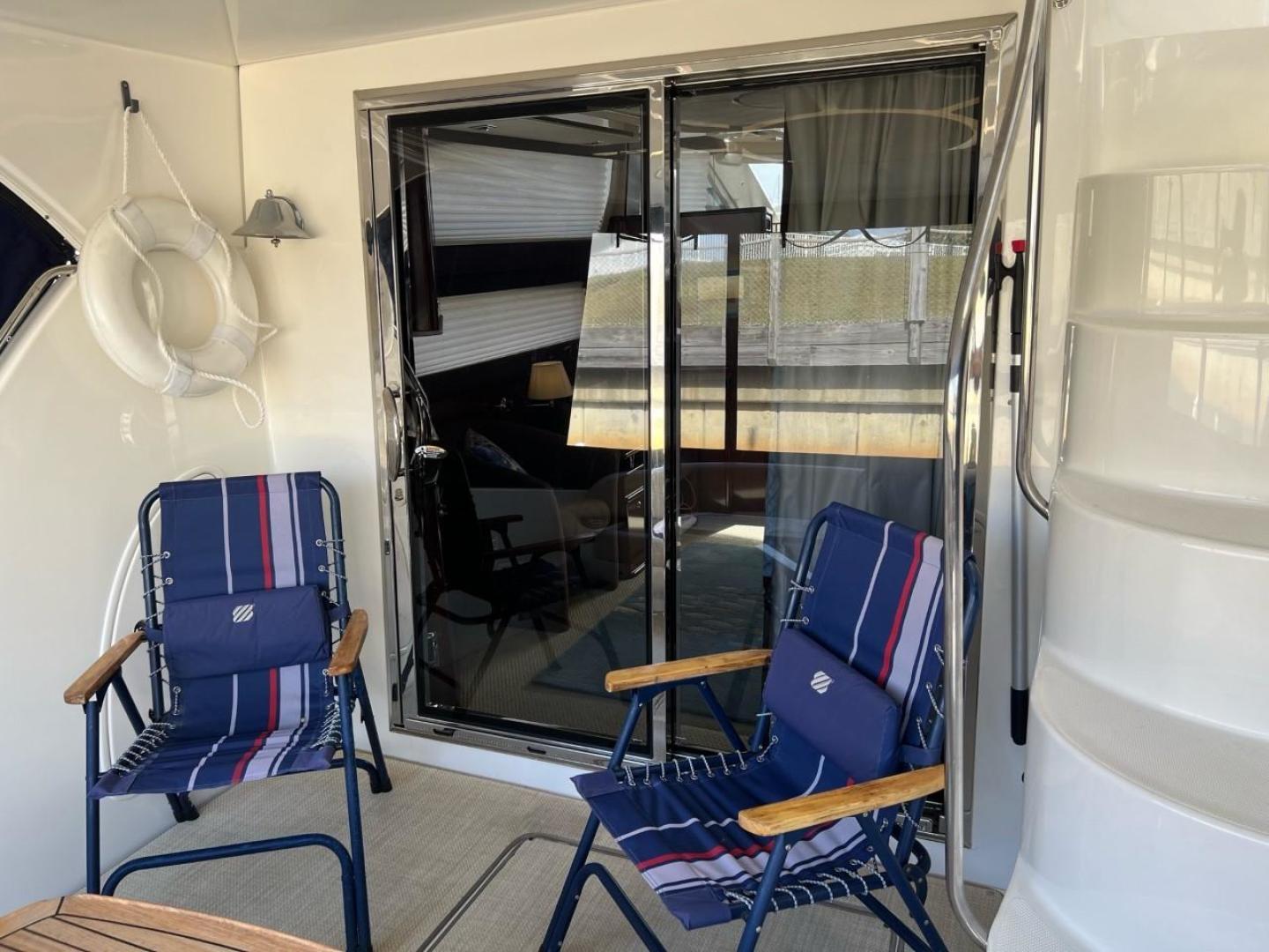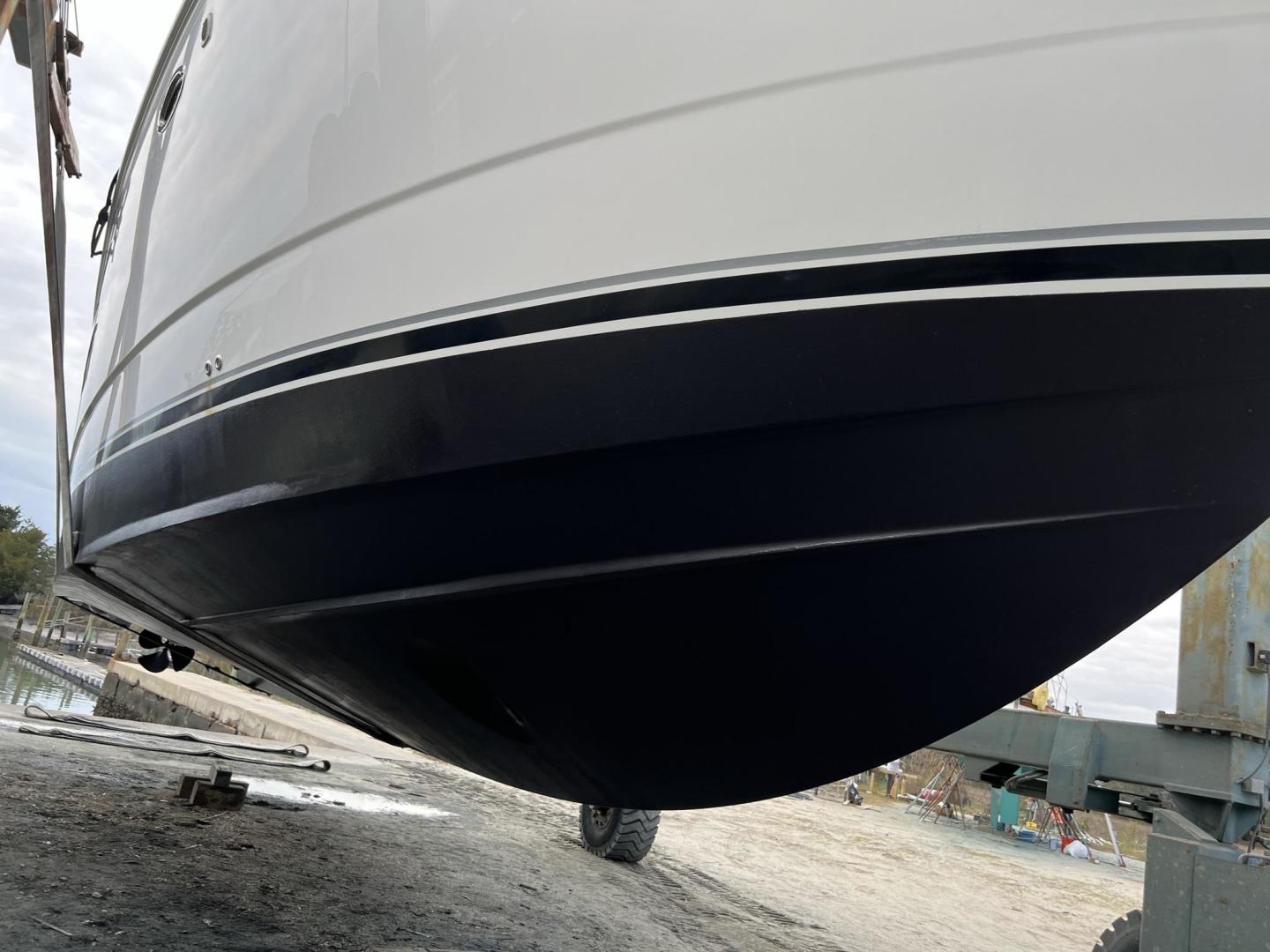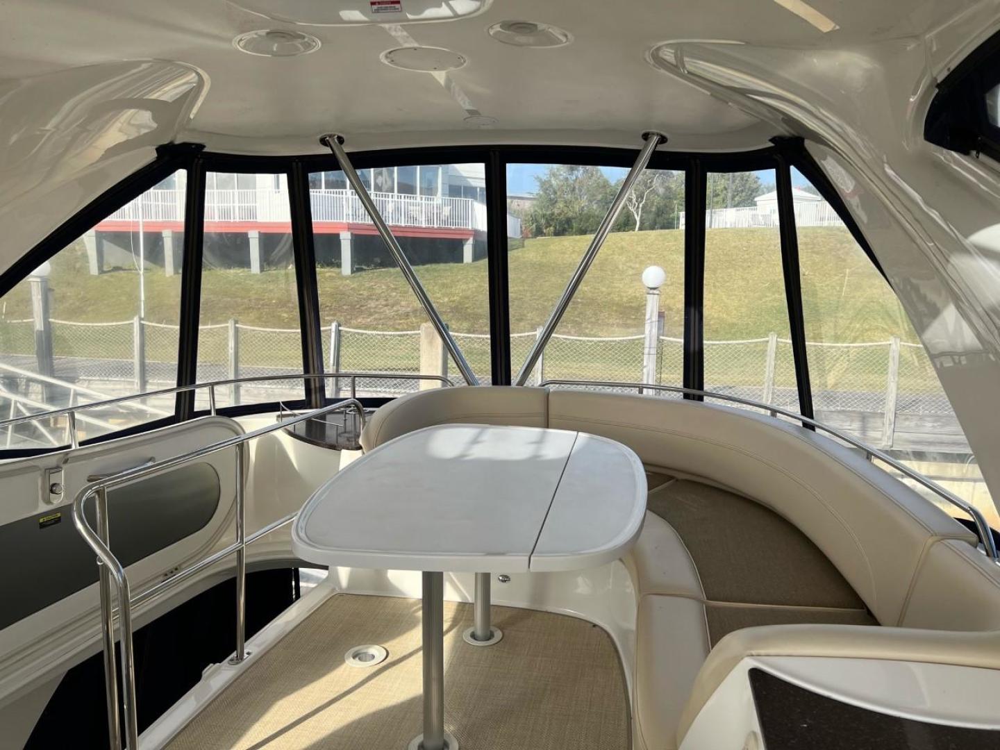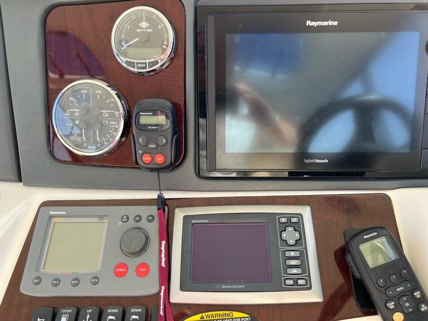 She is well appointed, very comfortable two-stateroom, two-head layout with a fabulous oversized enclosed shower with bench in the Ensuite Master Bath. The wide-open floor plan provides awesome visibility from all interior areas. The size of the AIR-CONDITIONED HARDTOP FLYBRIDGE is of a size often found only on much bigger yachts extending your living and entertaining space significantly. The full beam mid berth even includes an ‘All-in-One’ washer/dryer.