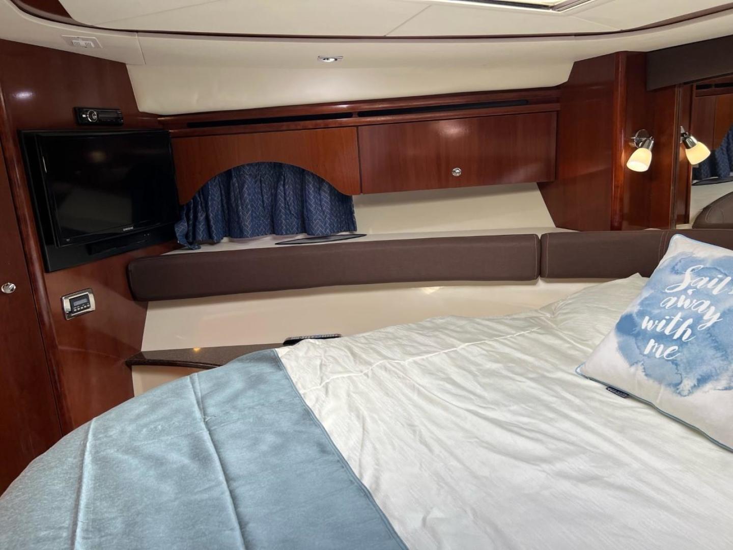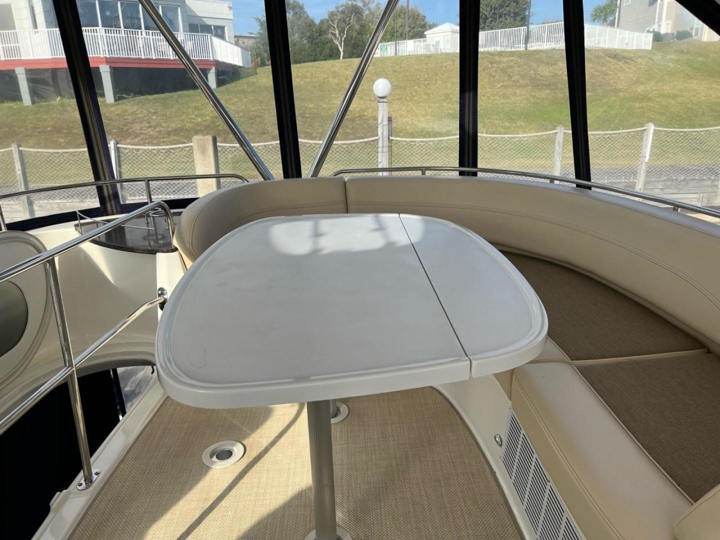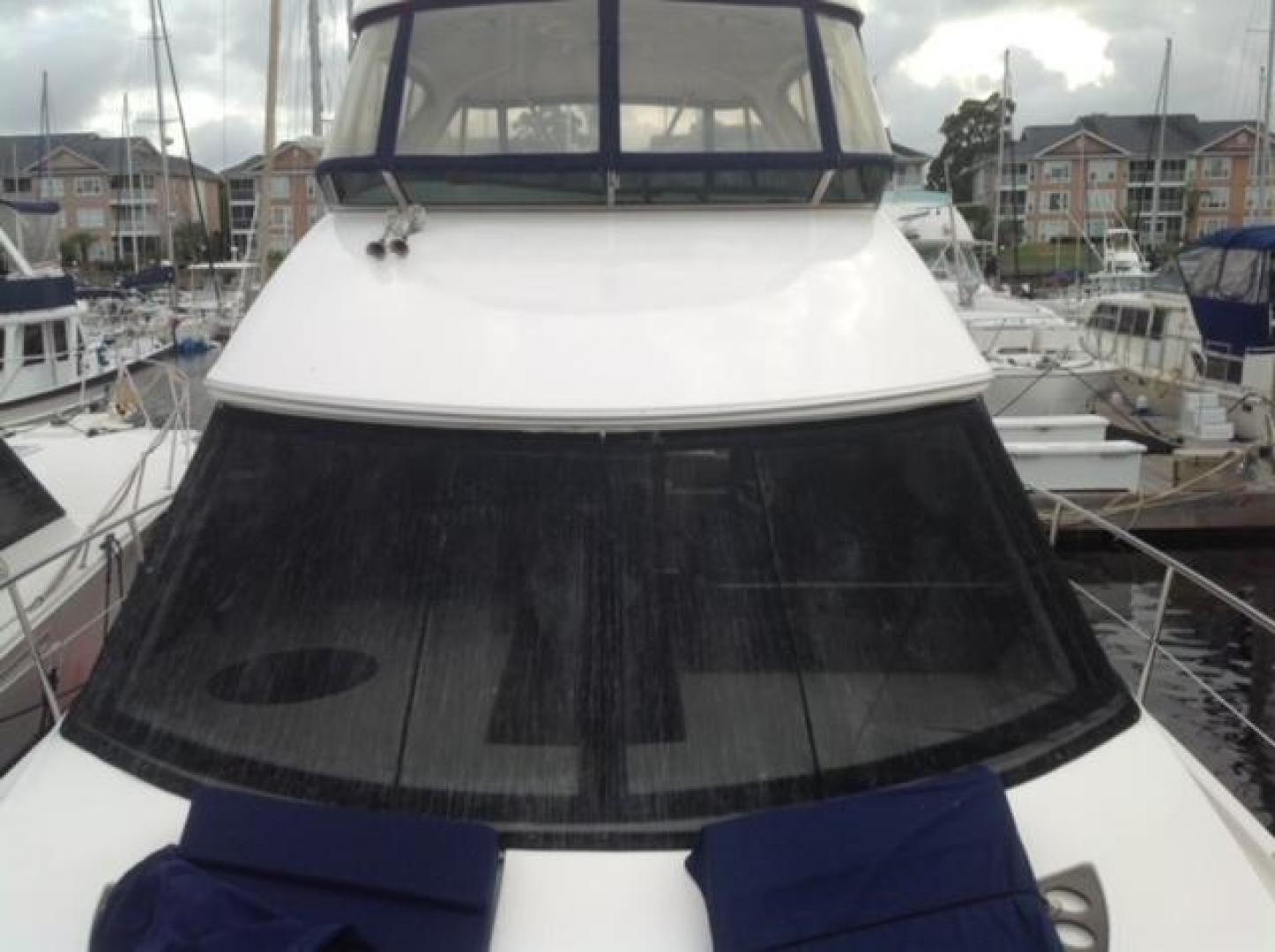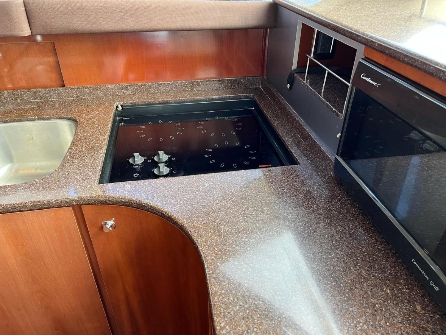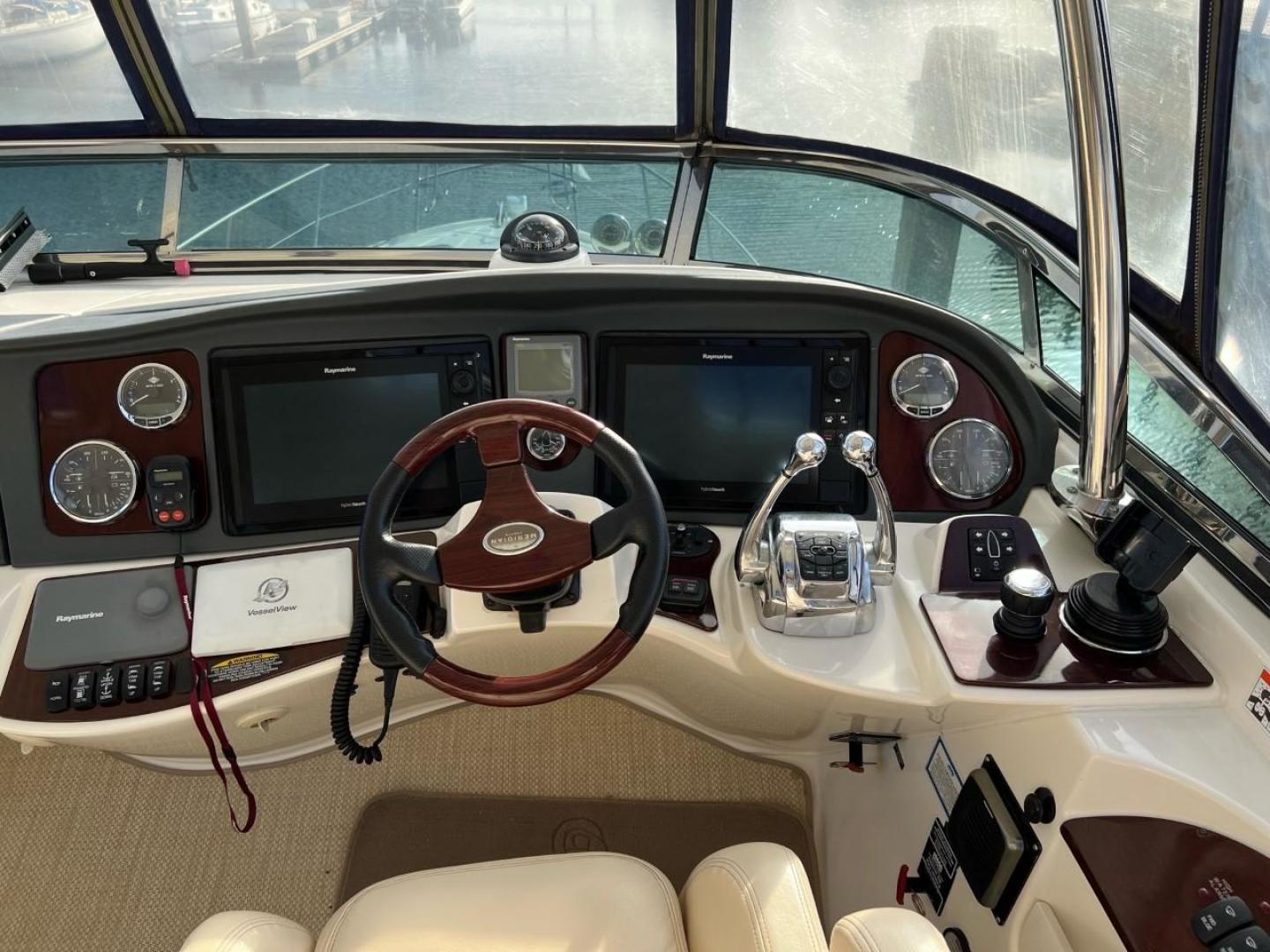 She is well appointed, very comfortable two-stateroom, two-head layout with a fabulous oversized enclosed shower with bench in the Ensuite Master Bath. The wide-open floor plan provides awesome visibility from all interior areas. The size of the AIR-CONDITIONED HARDTOP FLYBRIDGE is of a size often found only on much bigger yachts extending your living and entertaining space significantly. The full beam mid berth even includes an ‘All-in-One’ washer/dryer.