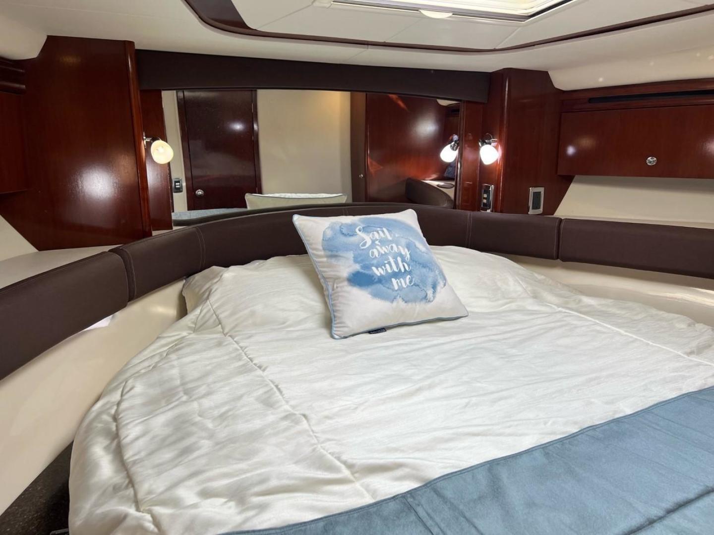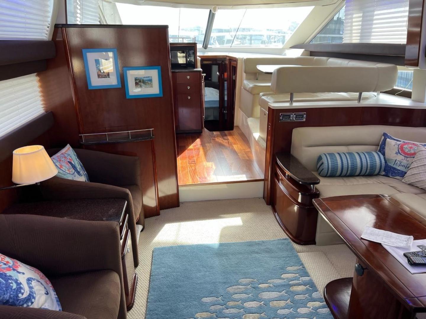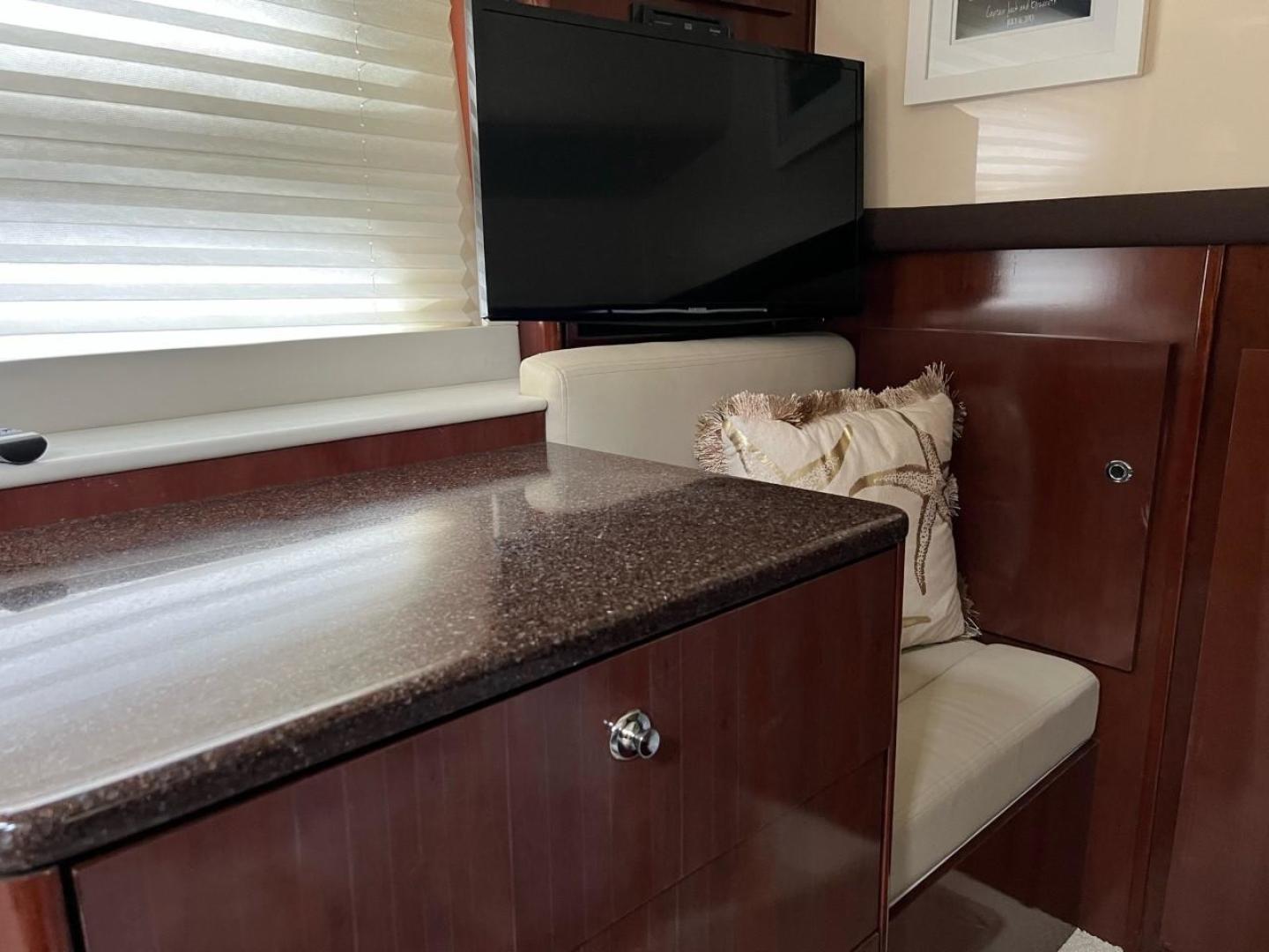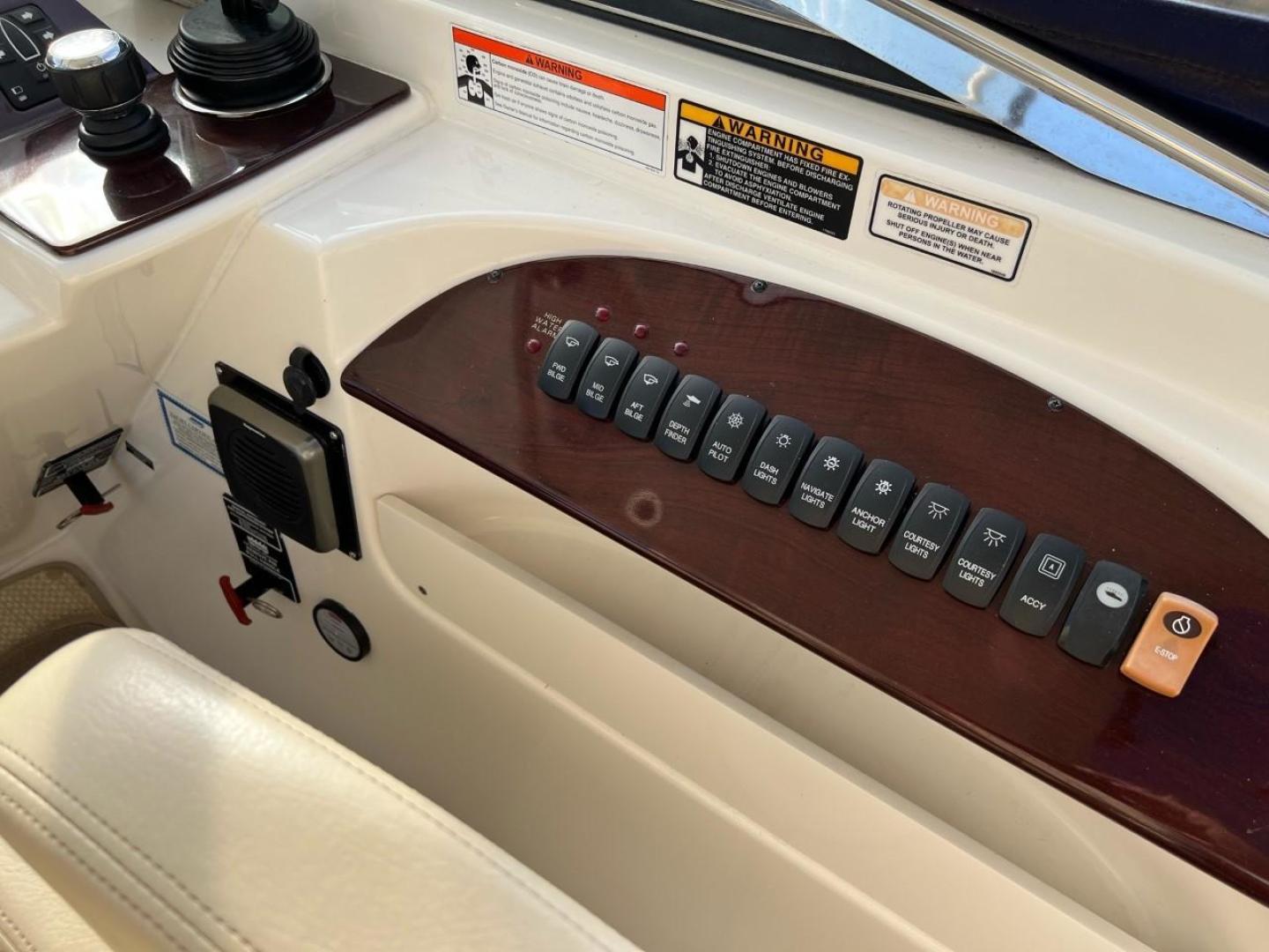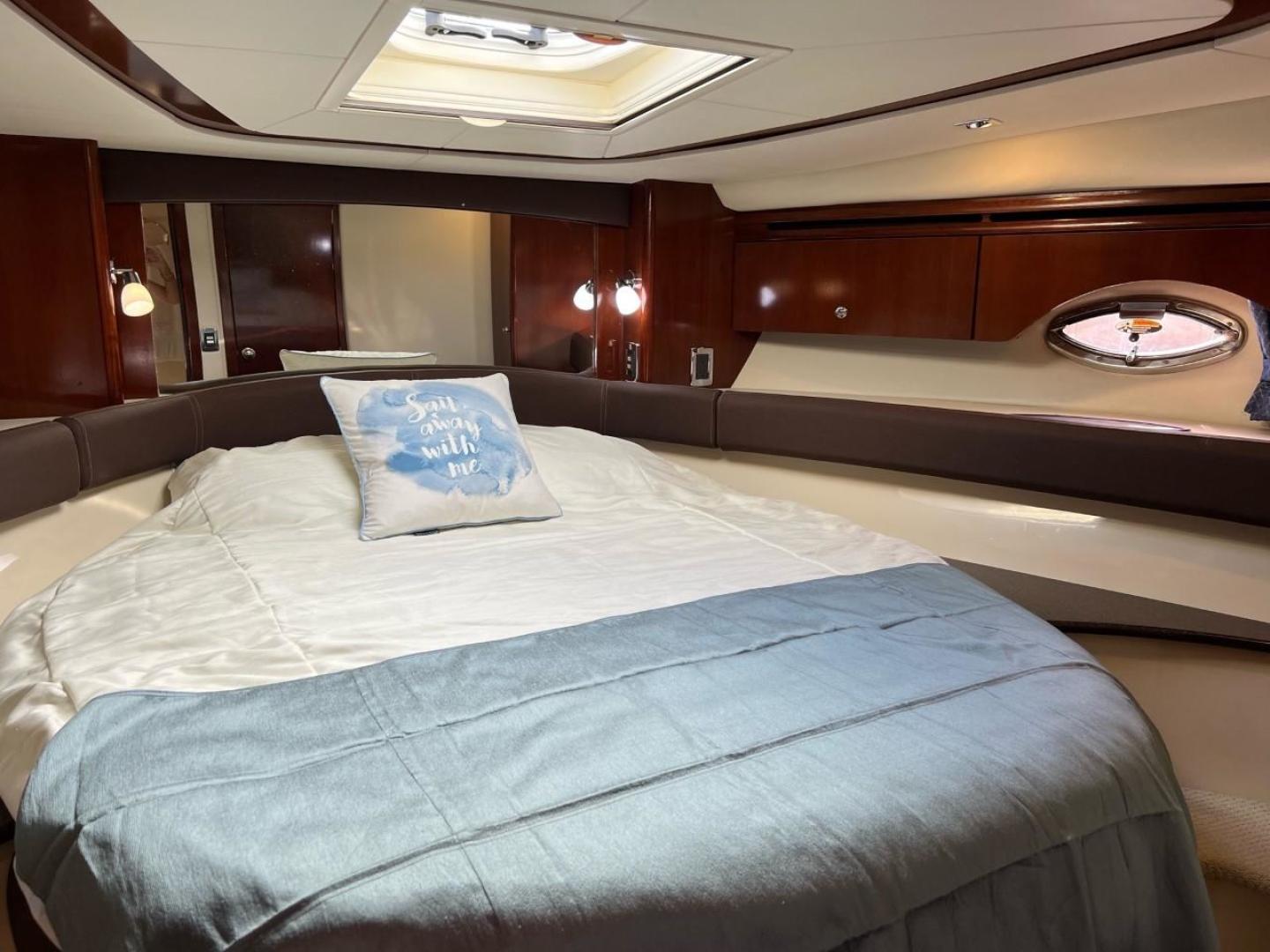 She is well appointed, very comfortable two-stateroom, two-head layout with a fabulous oversized enclosed shower with bench in the Ensuite Master Bath. The wide-open floor plan provides awesome visibility from all interior areas. The size of the AIR-CONDITIONED HARDTOP FLYBRIDGE is of a size often found only on much bigger yachts extending your living and entertaining space significantly. The full beam mid berth even includes an ‘All-in-One’ washer/dryer.