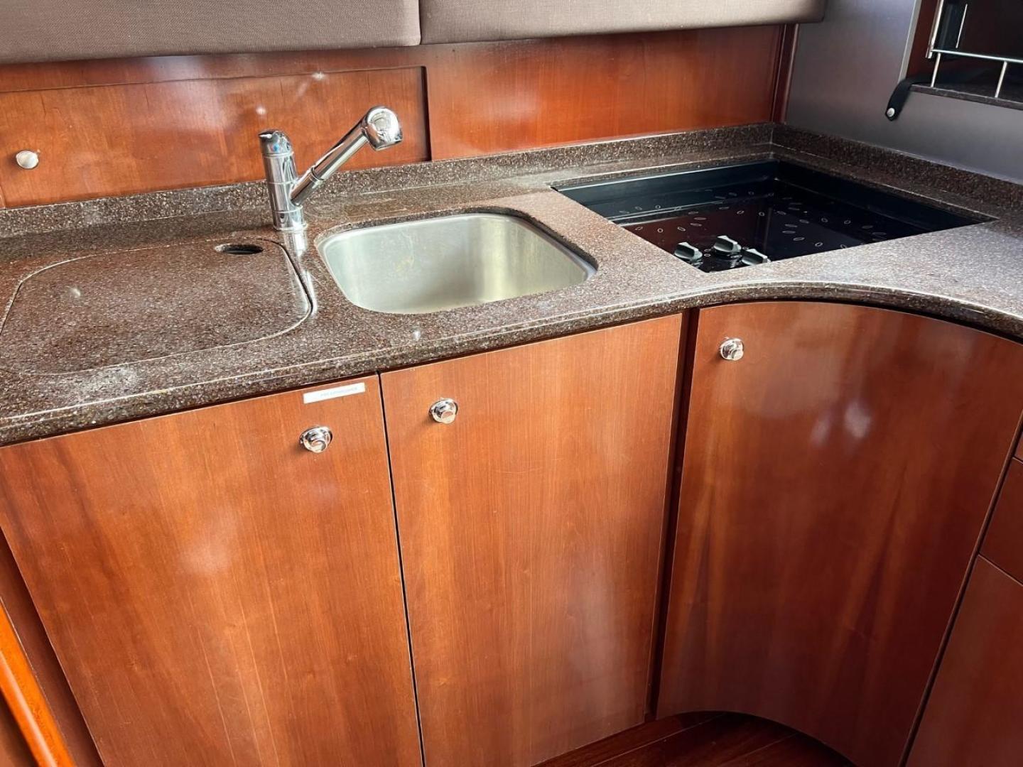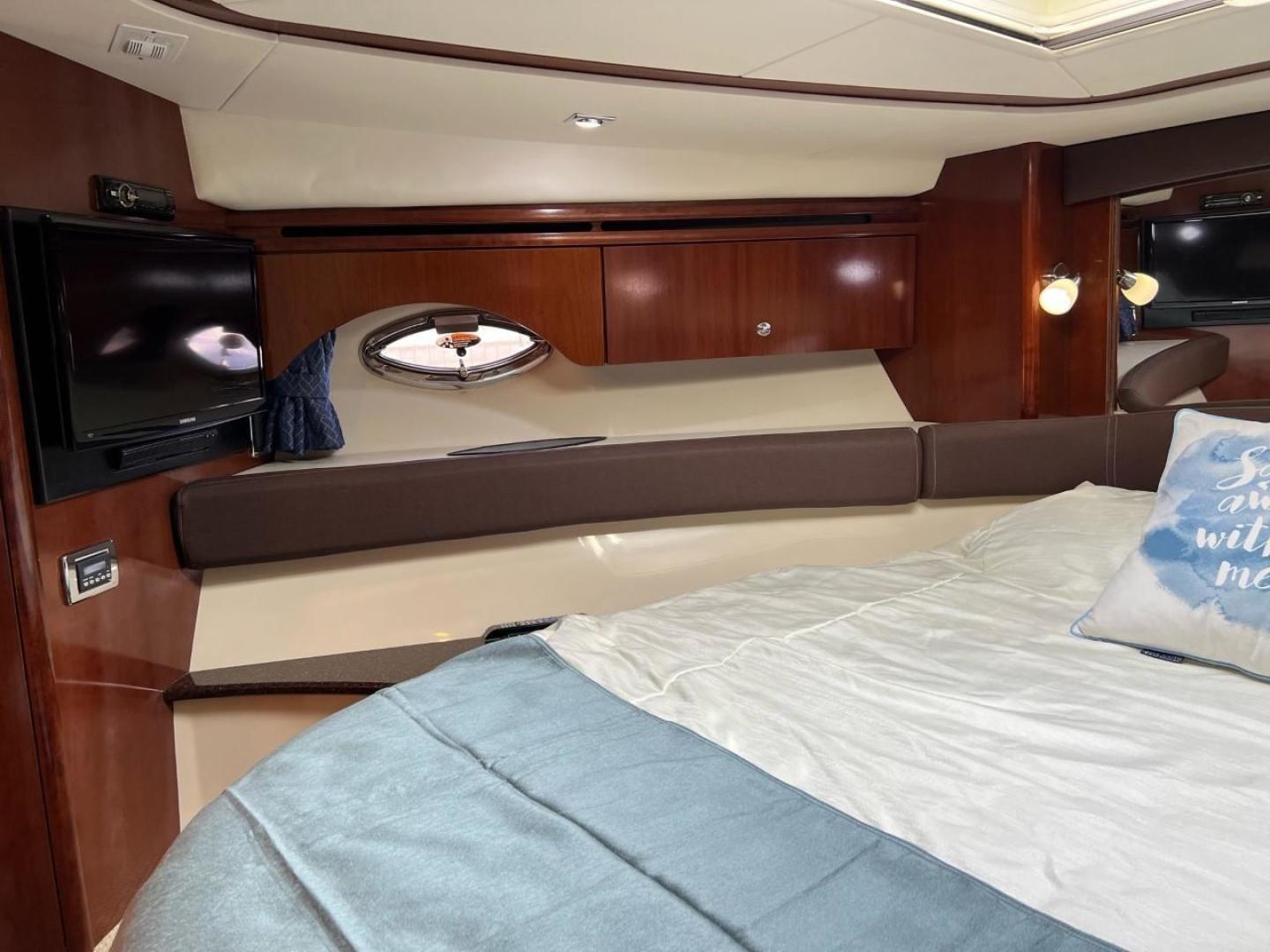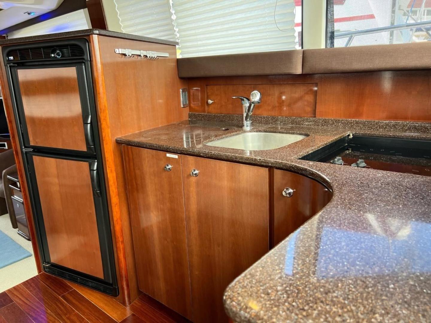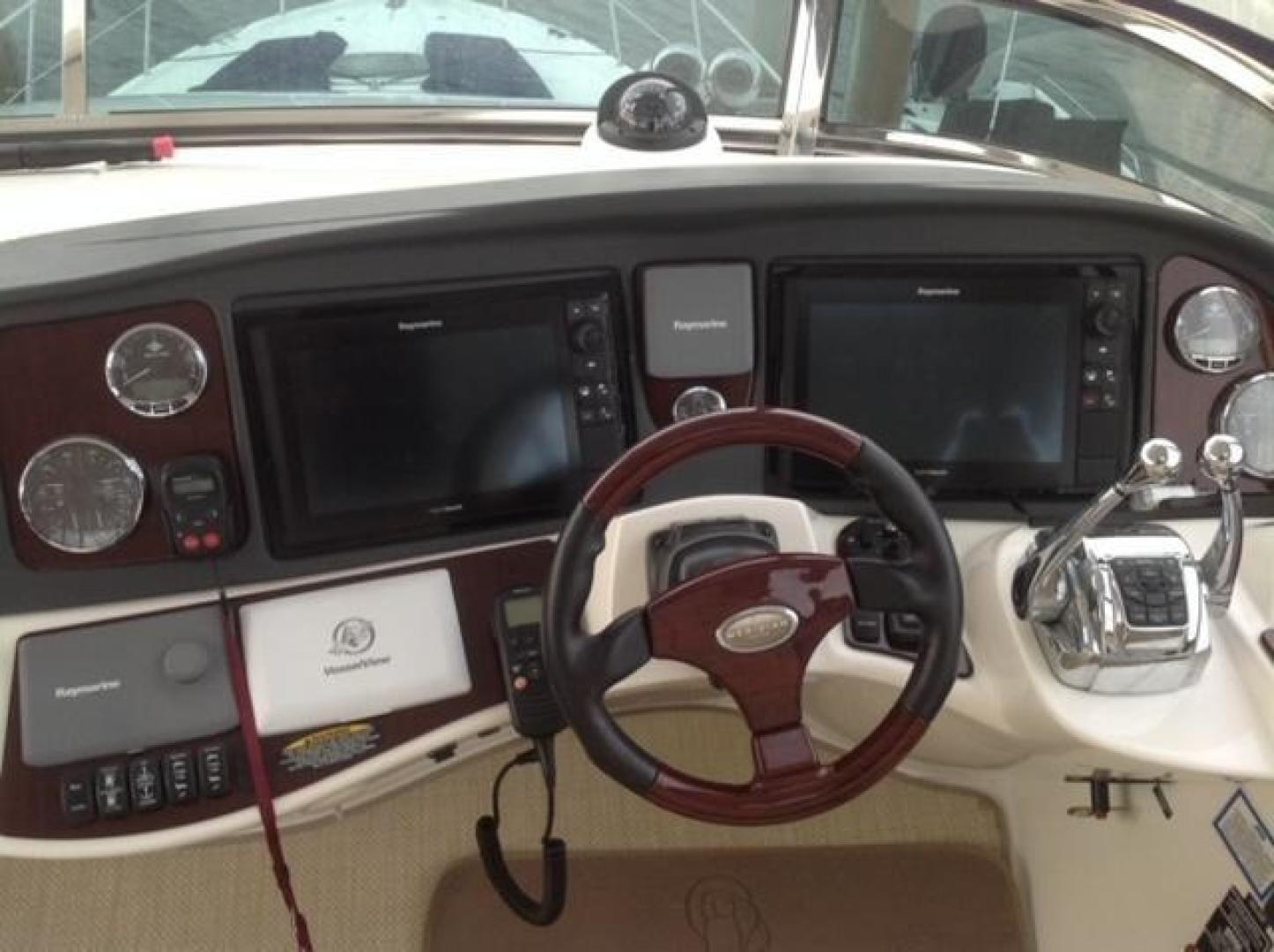 She is well appointed, very comfortable two-stateroom, two-head layout with a fabulous oversized enclosed shower with bench in the Ensuite Master Bath. The wide-open floor plan provides awesome visibility from all interior areas. The size of the AIR-CONDITIONED HARDTOP FLYBRIDGE is of a size often found only on much bigger yachts extending your living and entertaining space significantly. The full beam mid berth even includes an ‘All-in-One’ washer/dryer.