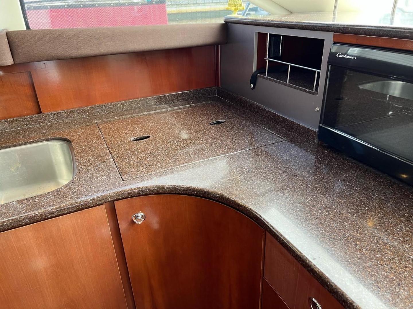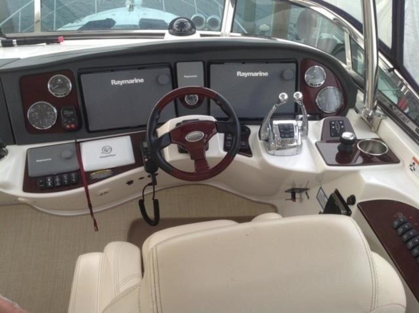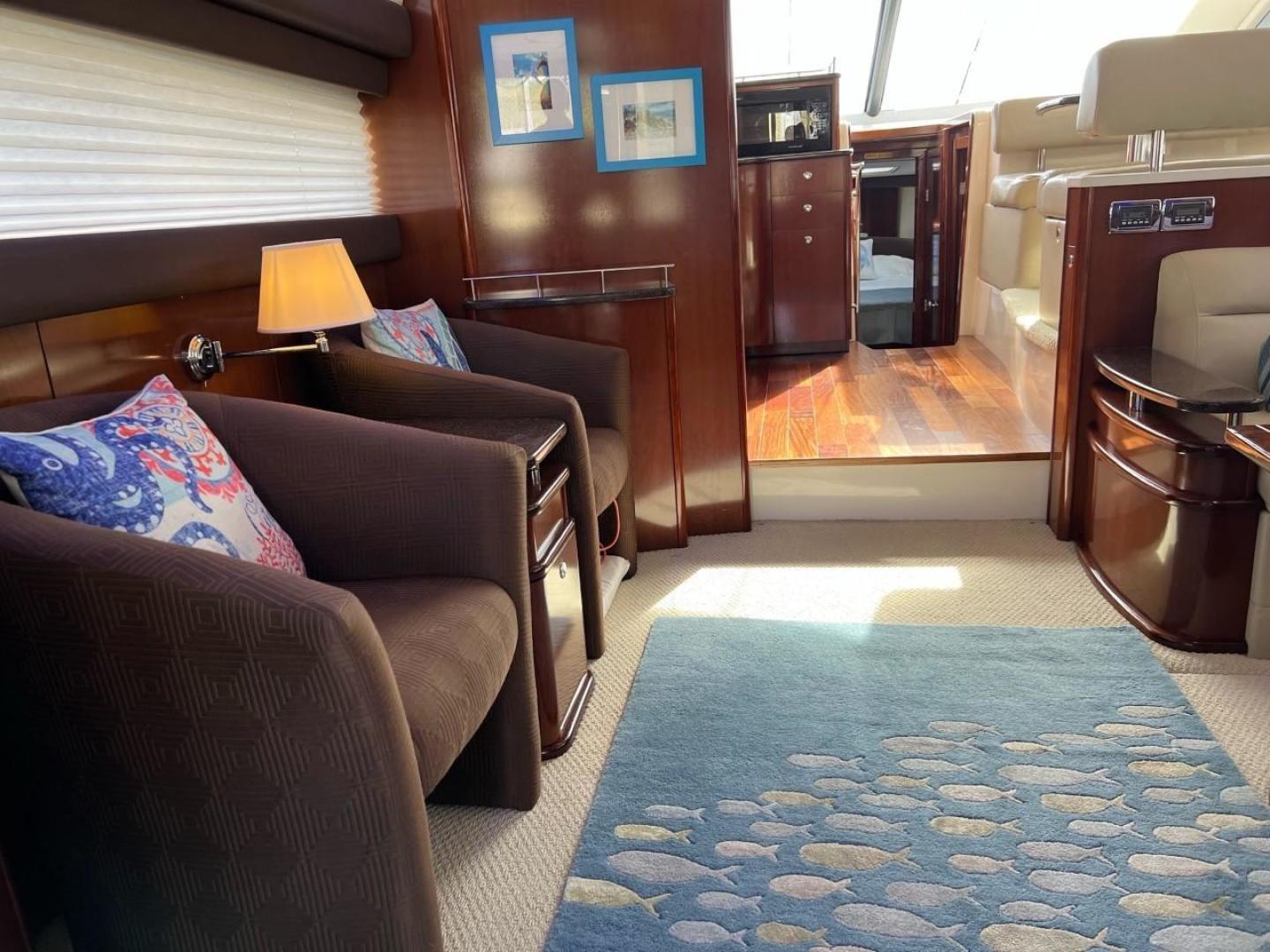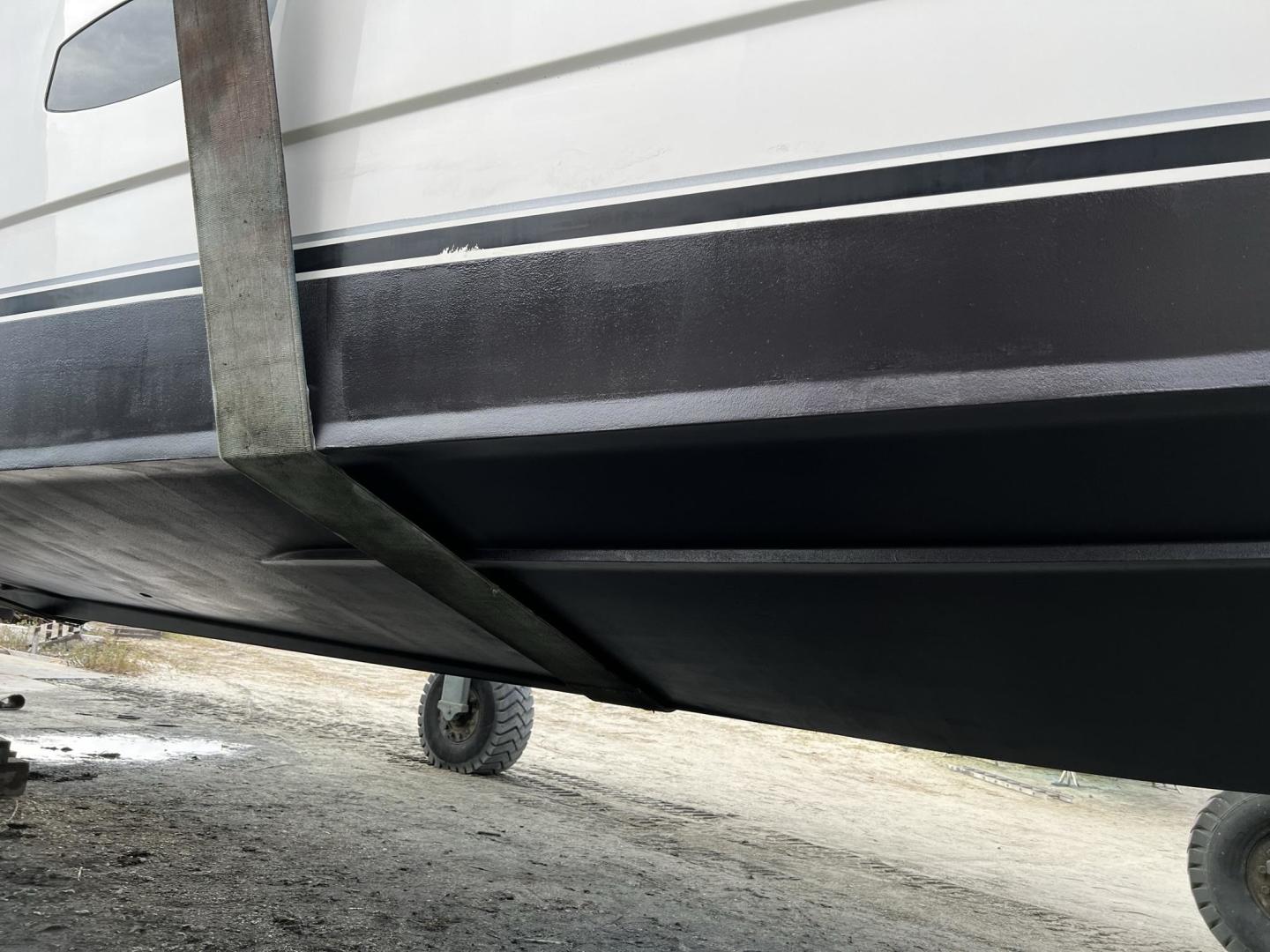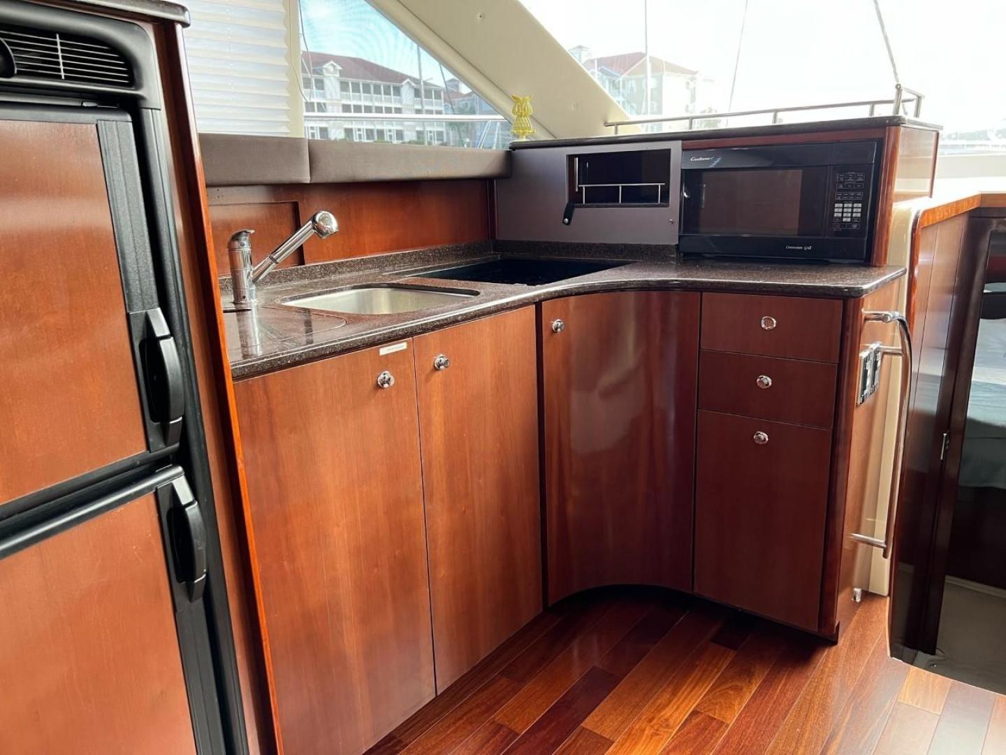 She is well appointed, very comfortable two-stateroom, two-head layout with a fabulous oversized enclosed shower with bench in the Ensuite Master Bath. The wide-open floor plan provides awesome visibility from all interior areas. The size of the AIR-CONDITIONED HARDTOP FLYBRIDGE is of a size often found only on much bigger yachts extending your living and entertaining space significantly. The full beam mid berth even includes an ‘All-in-One’ washer/dryer.
