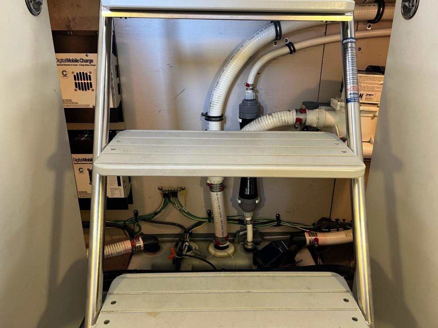 Storage is plentiful and conveniently located throughout the vessel. The aft placement of its engine/transmission configuration provided space for a large utility/storage room beneath the salon. Stow luggage, extra supplies, spare parts, and more -- invaluable space!
