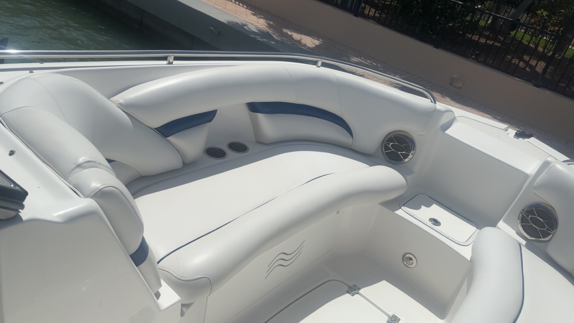The 2013 Hurricane SunDeck 2400 OB, a remarkable deck boat that perfectly blends performance and comfort. With an overall length of 24 feet, this vessel is designed for both leisure and adventure on the water. The modified Vee hull, crafted from durable fiberglass, ensures a smooth ride and excellent handling. Powered by a robust Yamaha 250 outboard engine, this boat delivers an impressive cruising speed of 35 mph and can reach a maximum hull speed of 50 mph, making it ideal for thrilling outings. With 450 hours of experience, this engine is ready for your next adventure. Accommodating up to 12 passengers, the SunDeck 2400 OB is perfect for family outings or gatherings with friends. Its thoughtful design and features promise a delightful experience on the water, making it a fantastic choice for those seeking both fun and functionality. Enjoy the freedom of the open water with this exceptional deck boat!