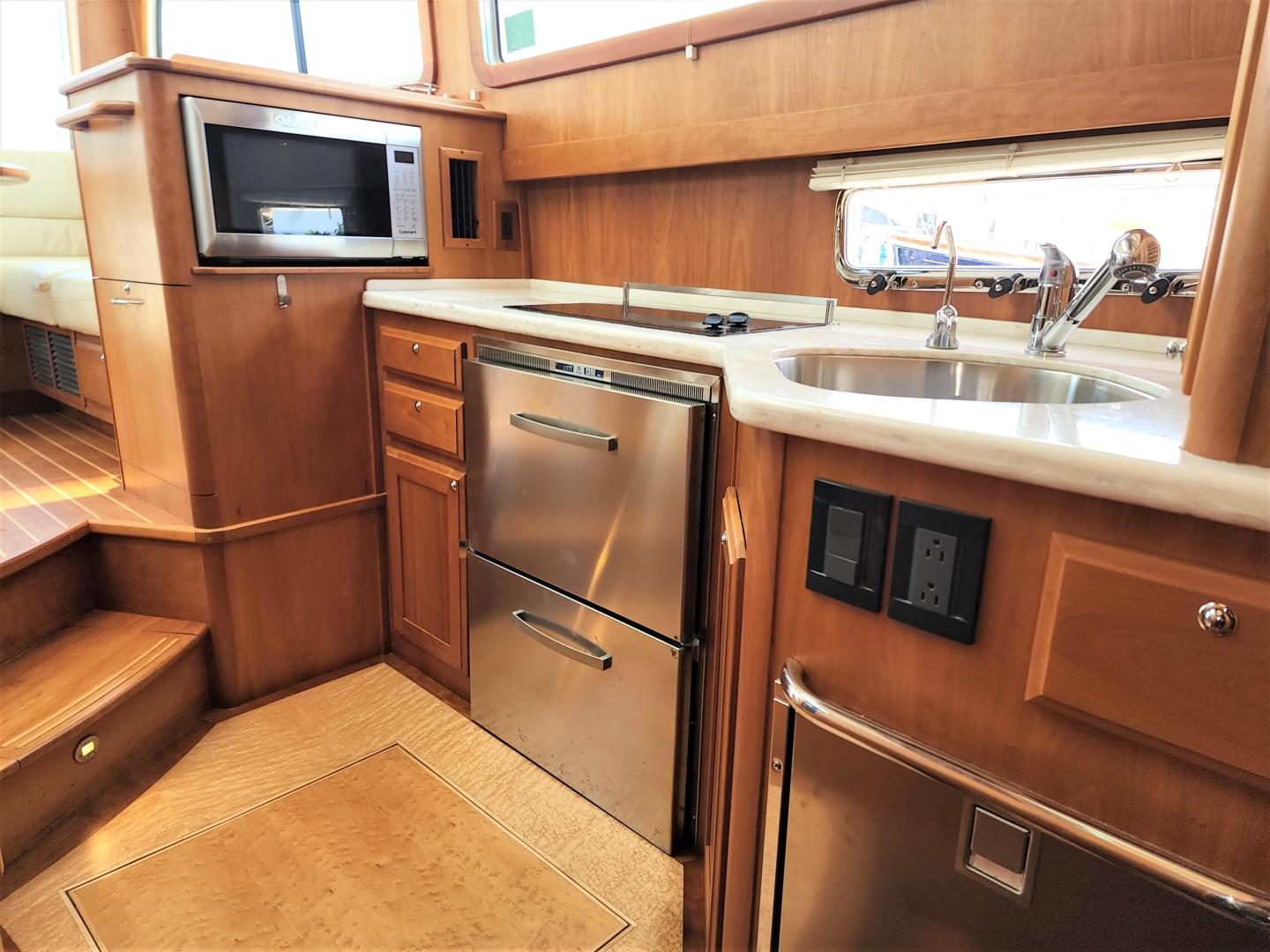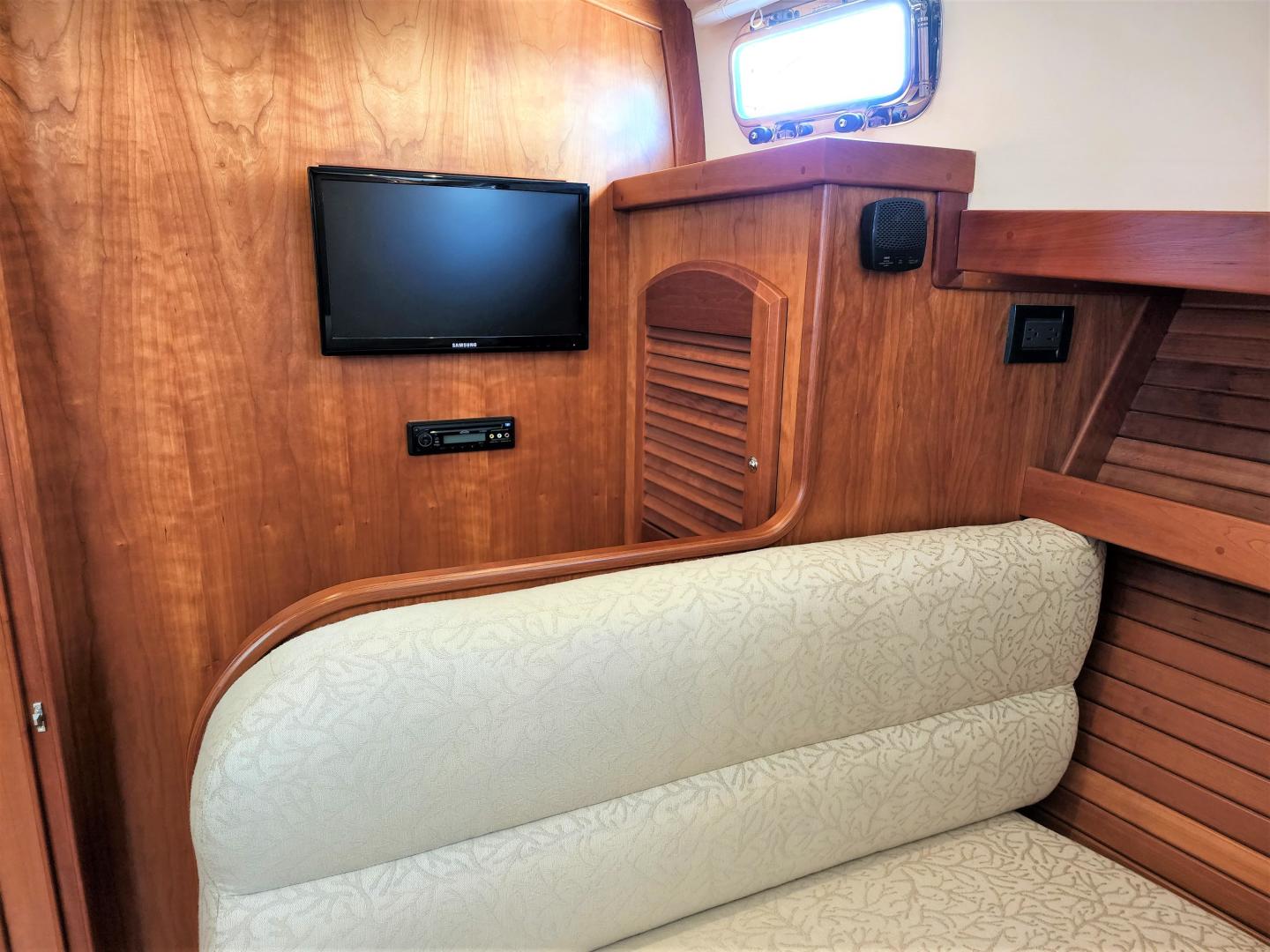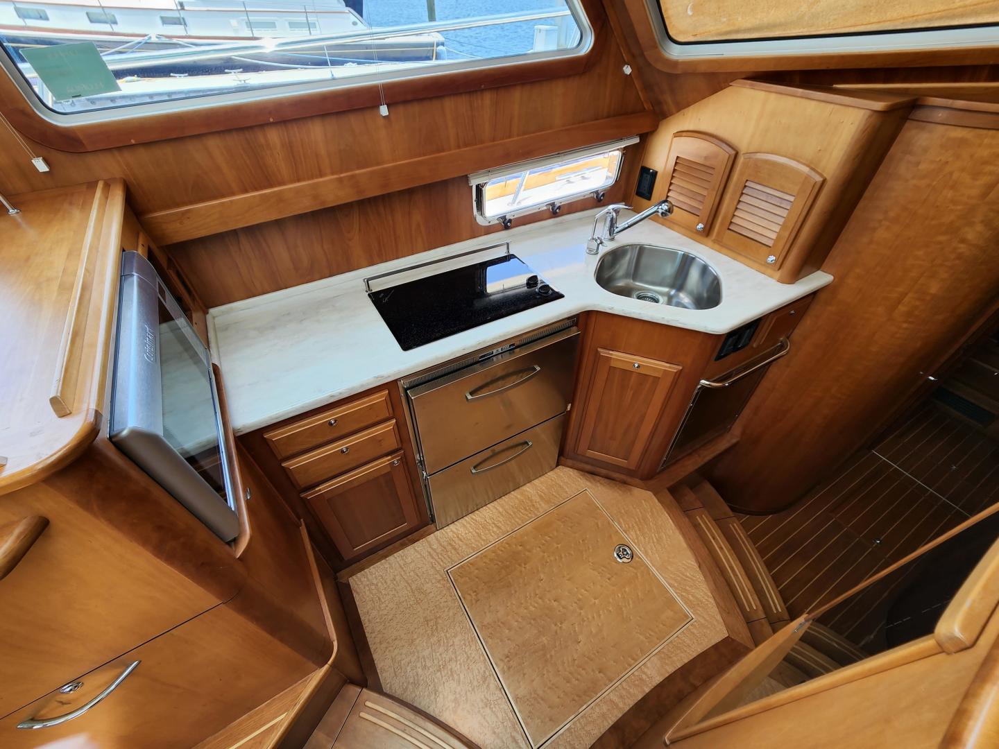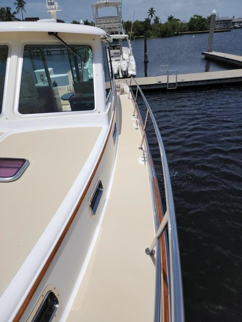 2013 Sabre 42 Salon Express is available for immediate sale! She has a fresh bottom job July 1 2022. She is located in Naples Florida which is close to Regional Southwest Airport in Ft. Myers Florida, only 30 minutes away. The vessel was originally delivered to the first owner, then resold at only 160 hours. The present owners have taken good care of this seasonally used boat which presently has only 440 hours on QSB 380 Cummins motors and Zeus Drives. She has been maintained by the same service company since new delivery. Off The hook is heavily optioned with Skylight, Optional Convertible Dinette, Grill and Ice maker, and the recently installed Freedom Lift. Major engine maintenance was performed 2/2021. The Sabre 42 Salon Express is a very popular model, with a very functional mid-level galley, which keeps everyone engaged in the fun. Her performance and economy makes for a flat efficient, comfortable ride. She cruises at 28 KTS, at a flat angle with integrated trim tabs that automatically adjust for speed and conditions. The Zeus Drives make joystick maneuvering very easy. The main deck has a transom door for easy boarding, into a spacious cockpit that has molded seating, a jump seat and optional Grill / Ice Maker Cabinet. The side decks are wide and easy and easy to traverse, with a lot of hand grabs, high railing and a solid teak safety toe rail. There is a custom cockpit cover that easily deploys with the use of stainless steel poles in rod holders. The main salon has two opposing settees, a pop up TV, bottle storage cabinet, helm station, engine room access and additional galley storage. The helm pod is equipped with Garmin Multifunction Touch Screens, with radar, depth, charts, vhf, and dual Cummins Vessel View Displays. The galley has microwave / convection oven, dual drawer refrigerator, freezer and a functional stainless steel sink. Below deck storage offers ample space to store supplies for longer voyages or additional gear. The master stateroom has a center island queen mattress, cedar lined hanging gear locker, chest of drawers, television with DVD player, overhead hatch, and ensuite private entrance to head with a full length dressing mirror. The dry head has a separate shower, Quiet Flush toilet, stainless steel sink, vanity mirror, cabinet and a "Day Head" entrance for guests. The convertible dinette is very practical for use as a booth type table, or a bed for two adults. This space has a TV, limited hanging locker, chest of drawers and solid wood pocket doors for privacy. The engine room is spacious and easily accessed through a hatch in the main salon. The batteries are located for convenient service or replacement. Engine start and house batteries replaced 2021.