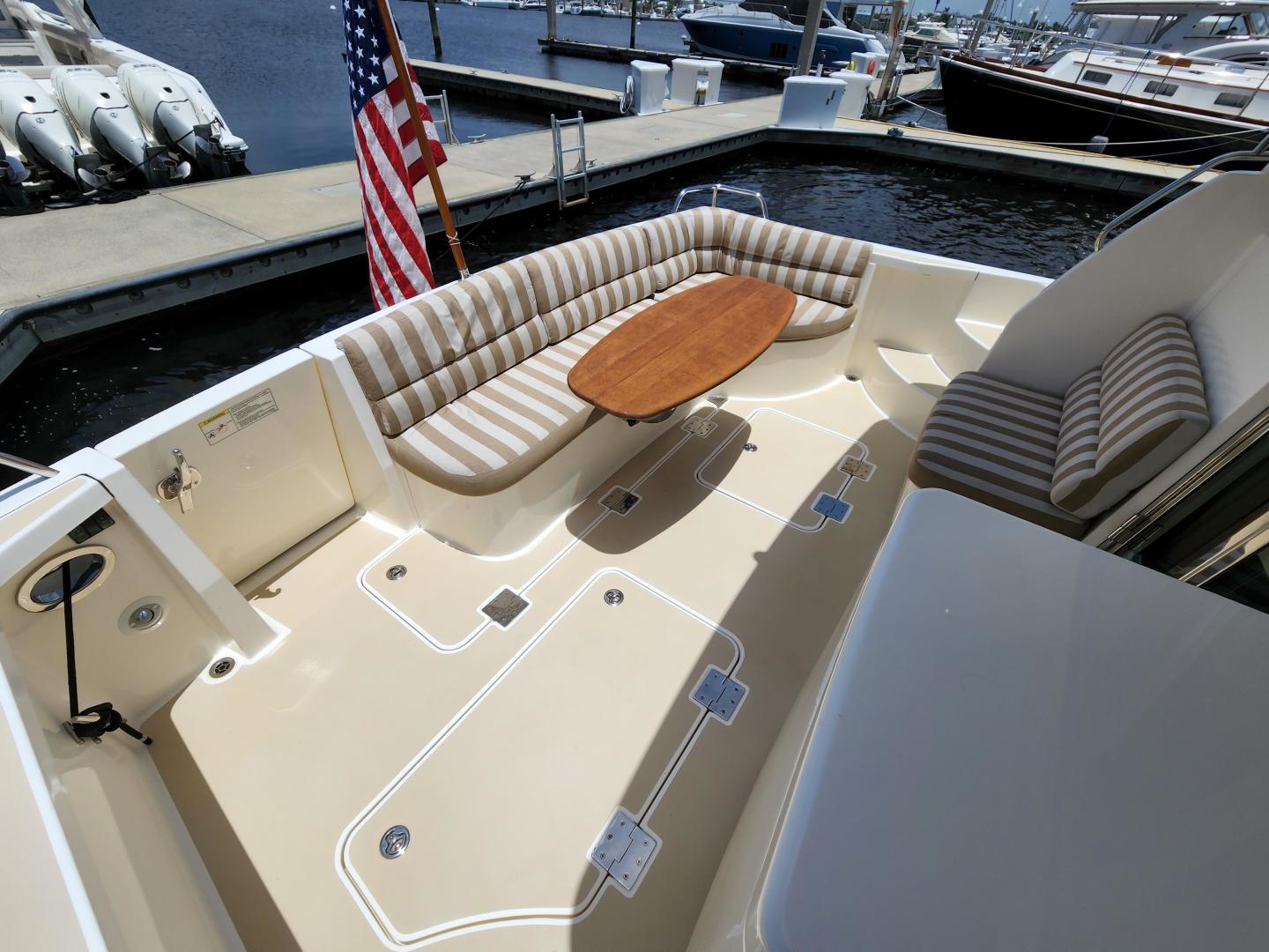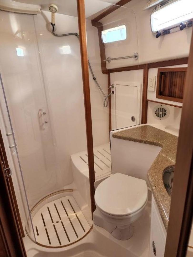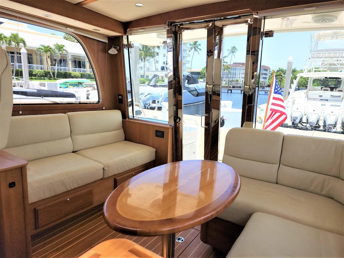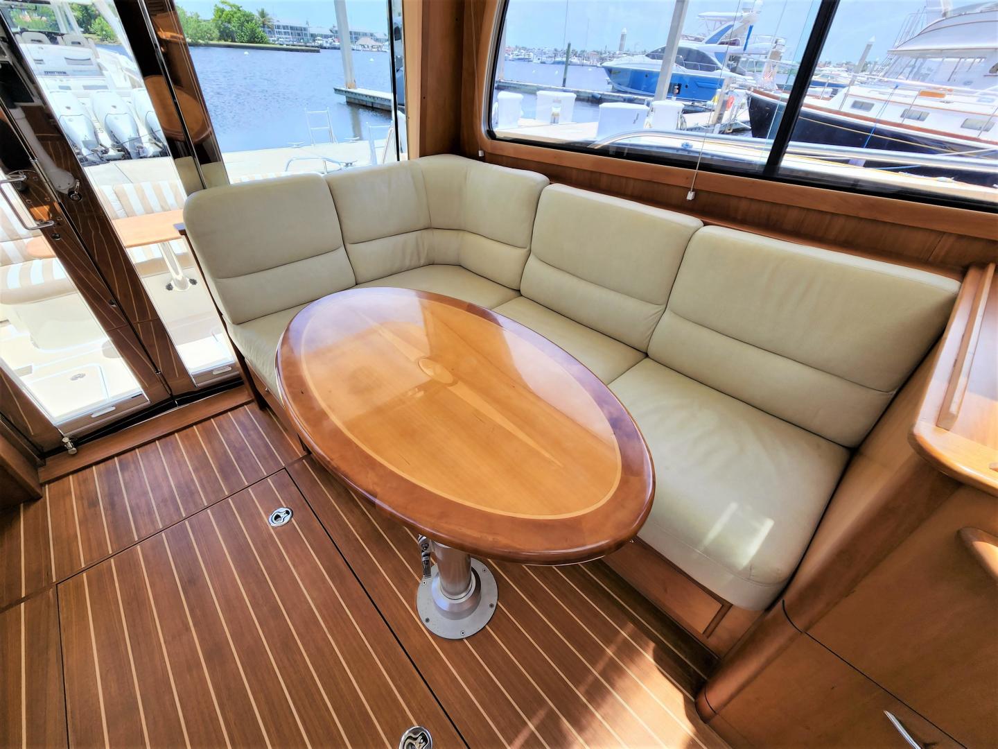 2013 Sabre 42 Salon Express is available for immediate sale! She has a fresh bottom job July 1 2022. She is located in Naples Florida which is close to Regional Southwest Airport in Ft. Myers Florida, only 30 minutes away. The vessel was originally delivered to the first owner, then resold at only 160 hours. The present owners have taken good care of this seasonally used boat which presently has only 440 hours on QSB 380 Cummins motors and Zeus Drives. She has been maintained by the same service company since new delivery. Off The hook is heavily optioned with Skylight, Optional Convertible Dinette, Grill and Ice maker, and the recently installed Freedom Lift. Major engine maintenance was performed 2/2021. The Sabre 42 Salon Express is a very popular model, with a very functional mid-level galley, which keeps everyone engaged in the fun. Her performance and economy makes for a flat efficient, comfortable ride. She cruises at 28 KTS, at a flat angle with integrated trim tabs that automatically adjust for speed and conditions. The Zeus Drives make joystick maneuvering very easy. The main deck has a transom door for easy boarding, into a spacious cockpit that has molded seating, a jump seat and optional Grill / Ice Maker Cabinet. The side decks are wide and easy and easy to traverse, with a lot of hand grabs, high railing and a solid teak safety toe rail. There is a custom cockpit cover that easily deploys with the use of stainless steel poles in rod holders. The main salon has two opposing settees, a pop up TV, bottle storage cabinet, helm station, engine room access and additional galley storage. The helm pod is equipped with Garmin Multifunction Touch Screens, with radar, depth, charts, vhf, and dual Cummins Vessel View Displays. The galley has microwave / convection oven, dual drawer refrigerator, freezer and a functional stainless steel sink. Below deck storage offers ample space to store supplies for longer voyages or additional gear. The master stateroom has a center island queen mattress, cedar lined hanging gear locker, chest of drawers, television with DVD player, overhead hatch, and ensuite private entrance to head with a full length dressing mirror. The dry head has a separate shower, Quiet Flush toilet, stainless steel sink, vanity mirror, cabinet and a "Day Head" entrance for guests. The convertible dinette is very practical for use as a booth type table, or a bed for two adults. This space has a TV, limited hanging locker, chest of drawers and solid wood pocket doors for privacy. The engine room is spacious and easily accessed through a hatch in the main salon. The batteries are located for convenient service or replacement. Engine start and house batteries replaced 2021.