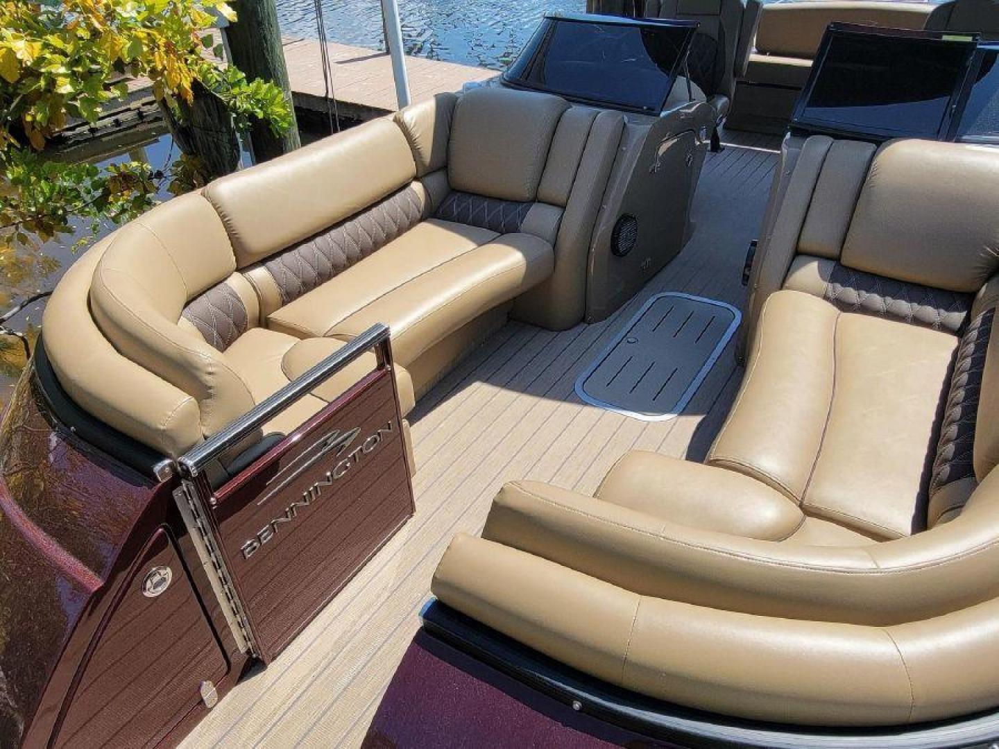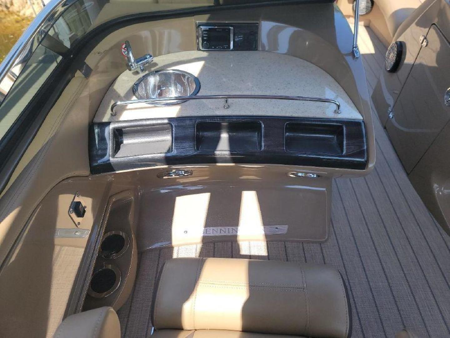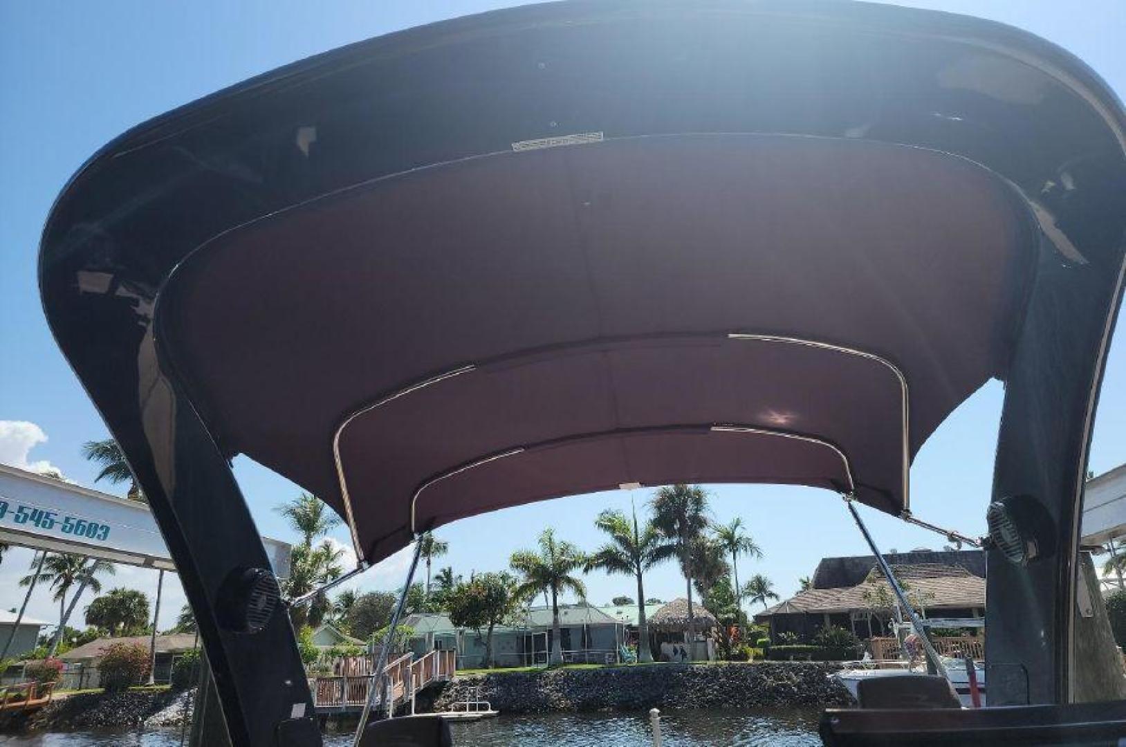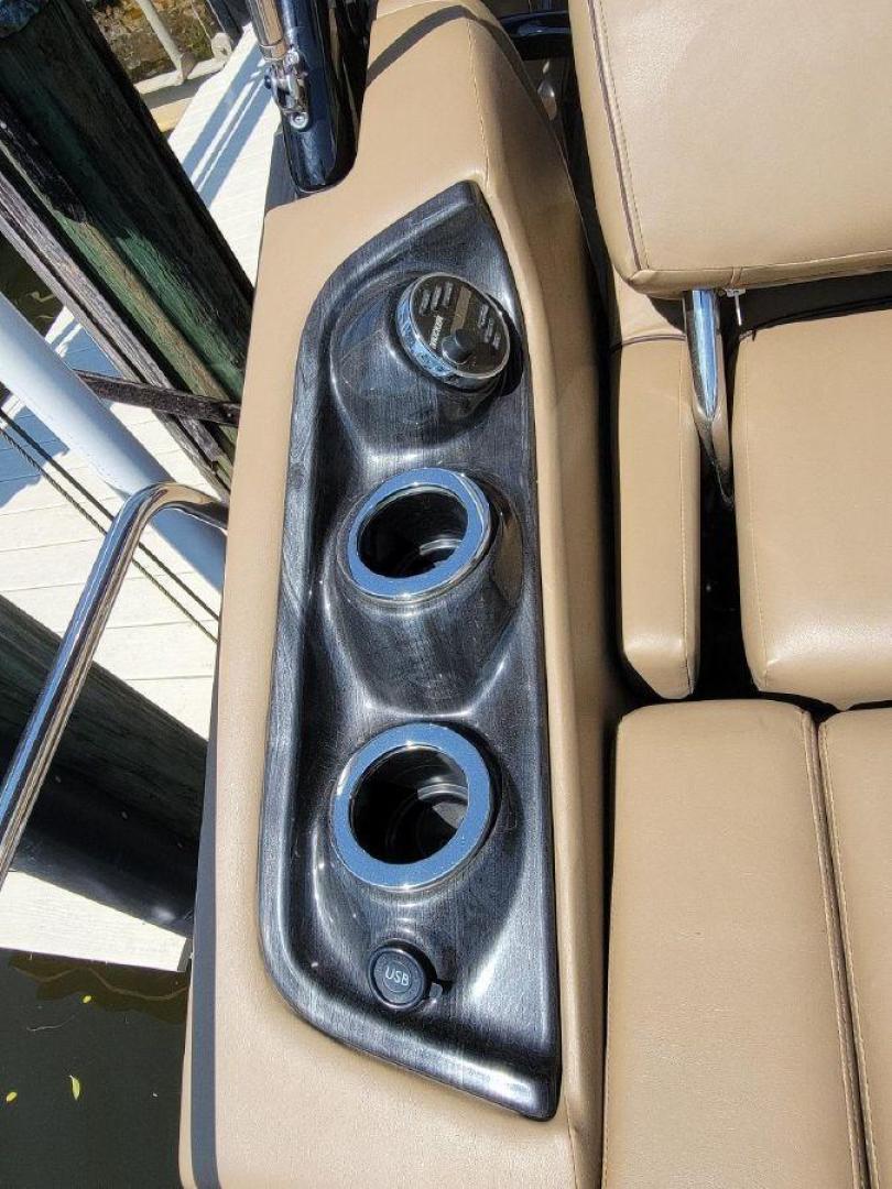 STYLE AND LUXURY WITH TOP PERFORMANCE. That is what you get in a Bennington Tri-toon. This one one is loaded up. New 9 Garmin XSV GPS, Kicking stereo with 12 speakers and sub woofers. Electric folding arch top with Bimini top aft. Full loungers and dual captains chairs. Deluxe ski tow for all water sports. Full cover, Stainless steel prop. Wet bar dash. Dual console with windscreens, LED lights, ETECH 300 is quiet smooth and reliable. Low hours under 300. Comes with a trailer. This boat is lift stored in Naples Florida.