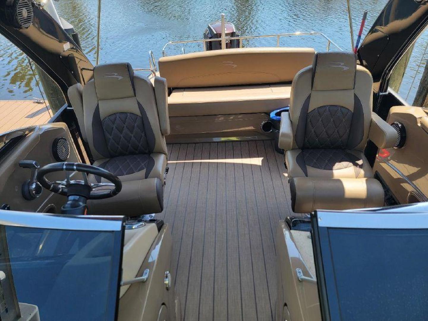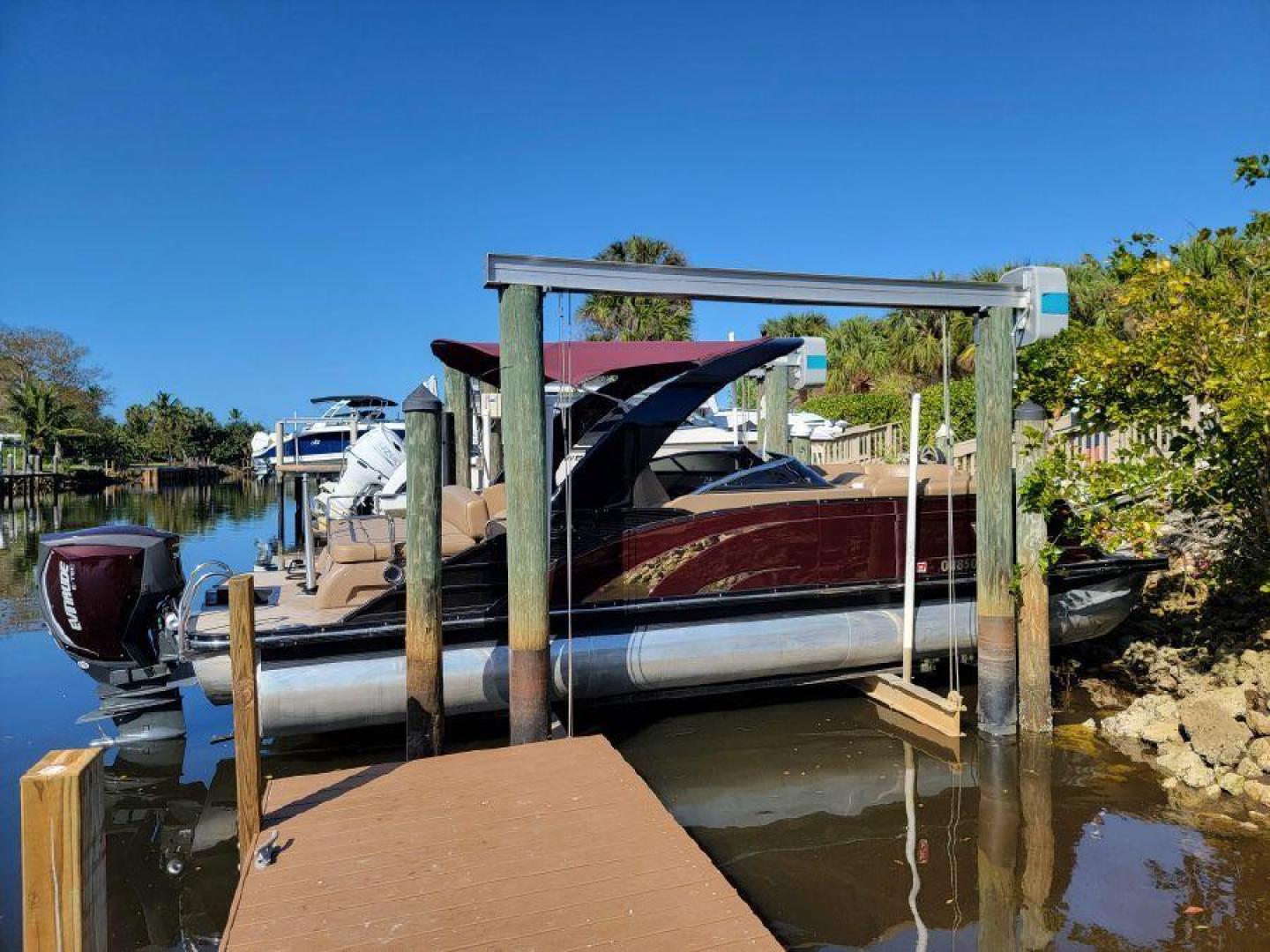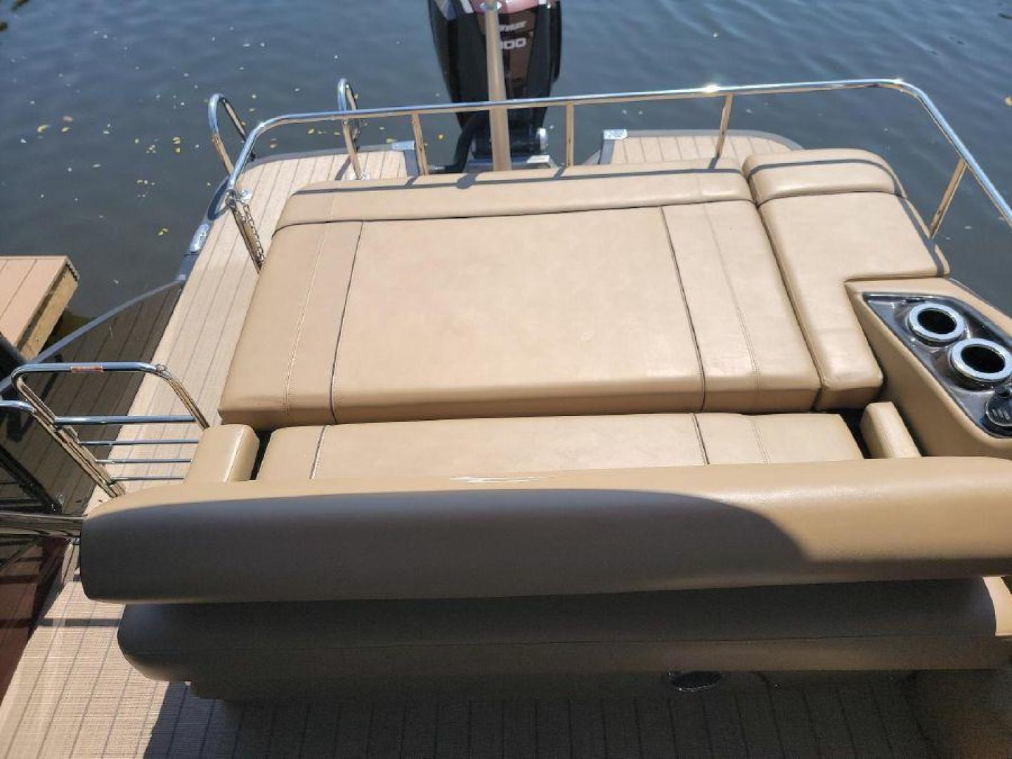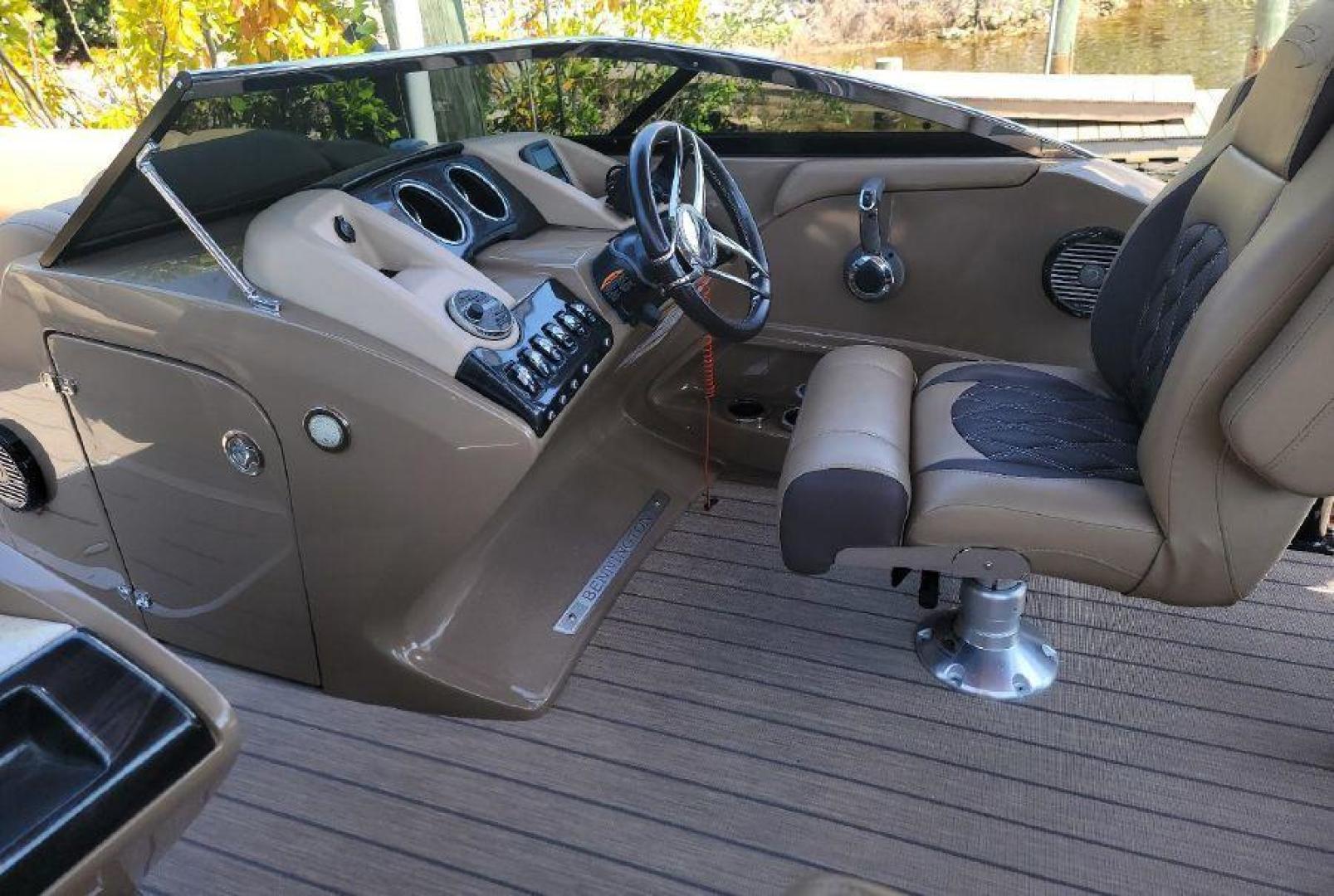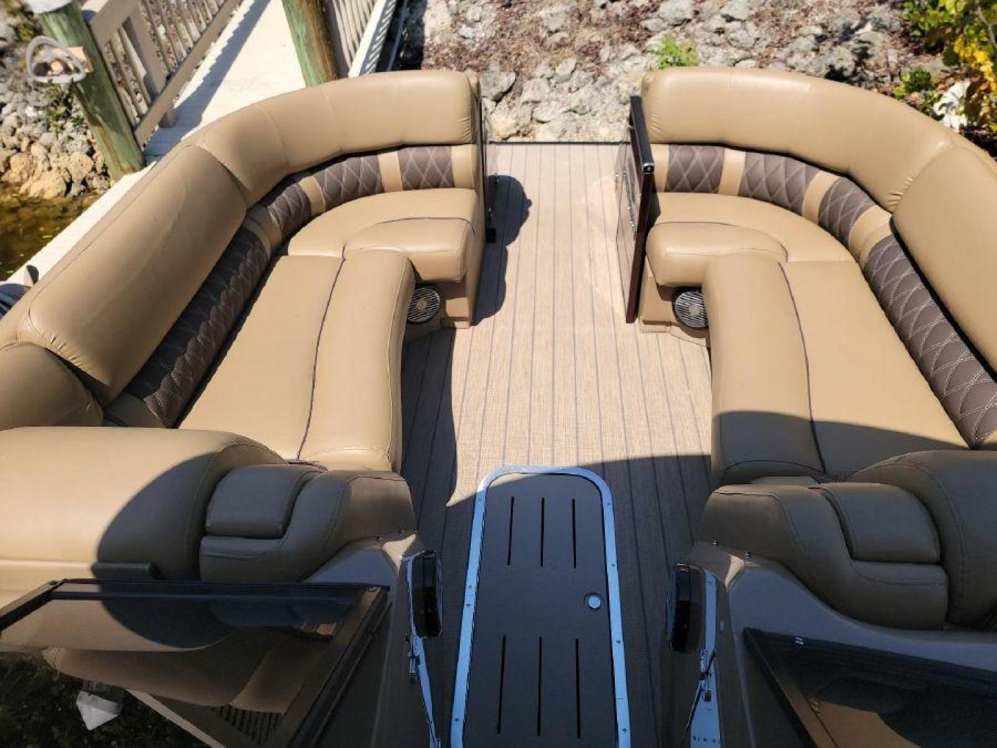 STYLE AND LUXURY WITH TOP PERFORMANCE. That is what you get in a Bennington Tri-toon. This one one is loaded up. New 9 Garmin XSV GPS, Kicking stereo with 12 speakers and sub woofers. Electric folding arch top with Bimini top aft. Full loungers and dual captains chairs. Deluxe ski tow for all water sports. Full cover, Stainless steel prop. Wet bar dash. Dual console with windscreens, LED lights, ETECH 300 is quiet smooth and reliable. Low hours under 300. Comes with a trailer. This boat is lift stored in Naples Florida.