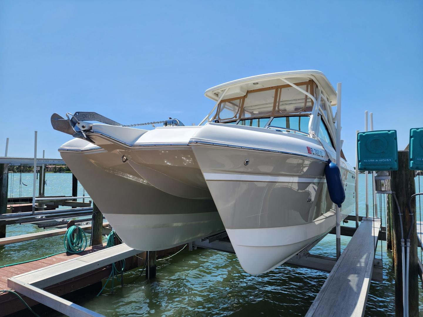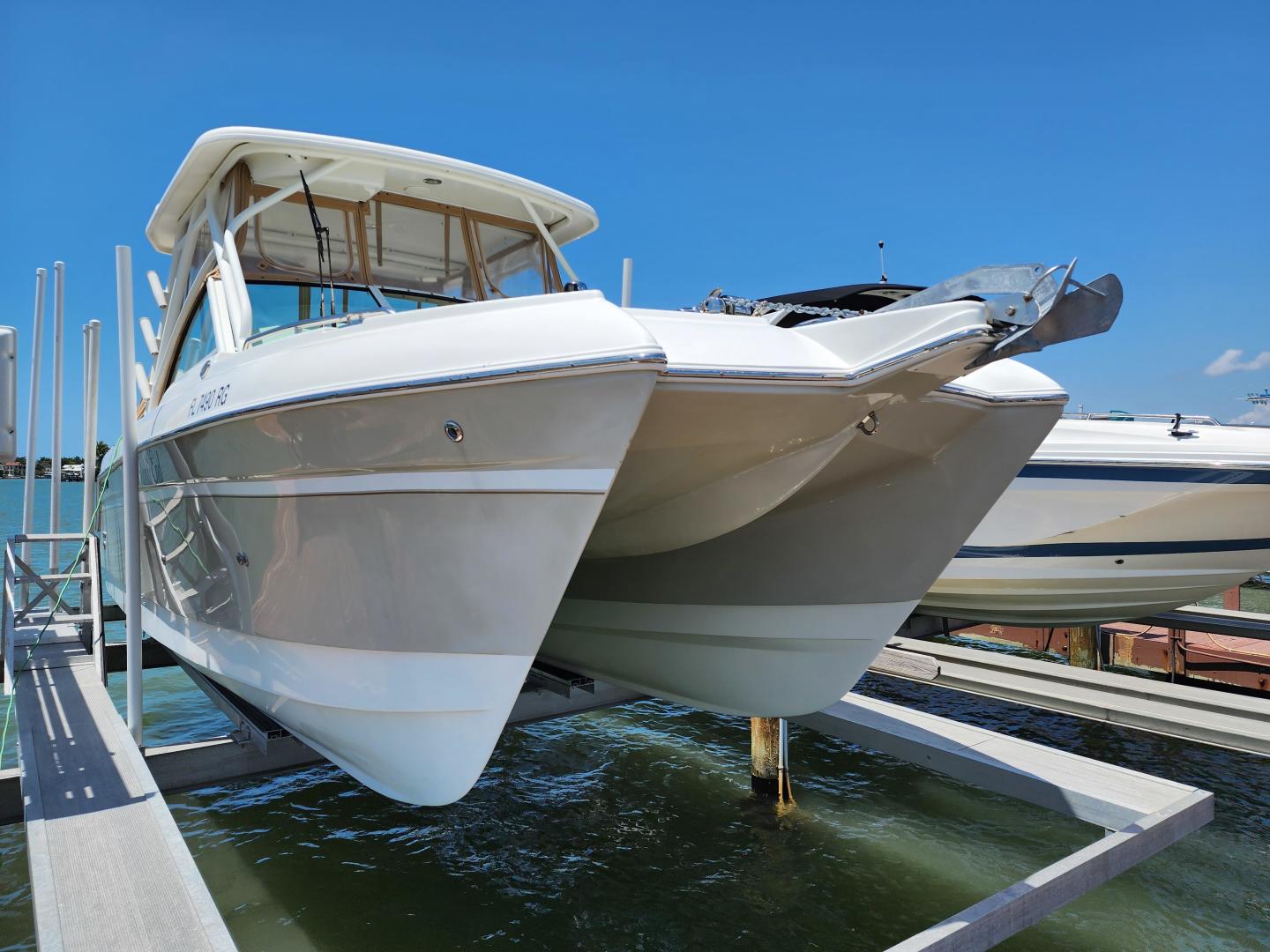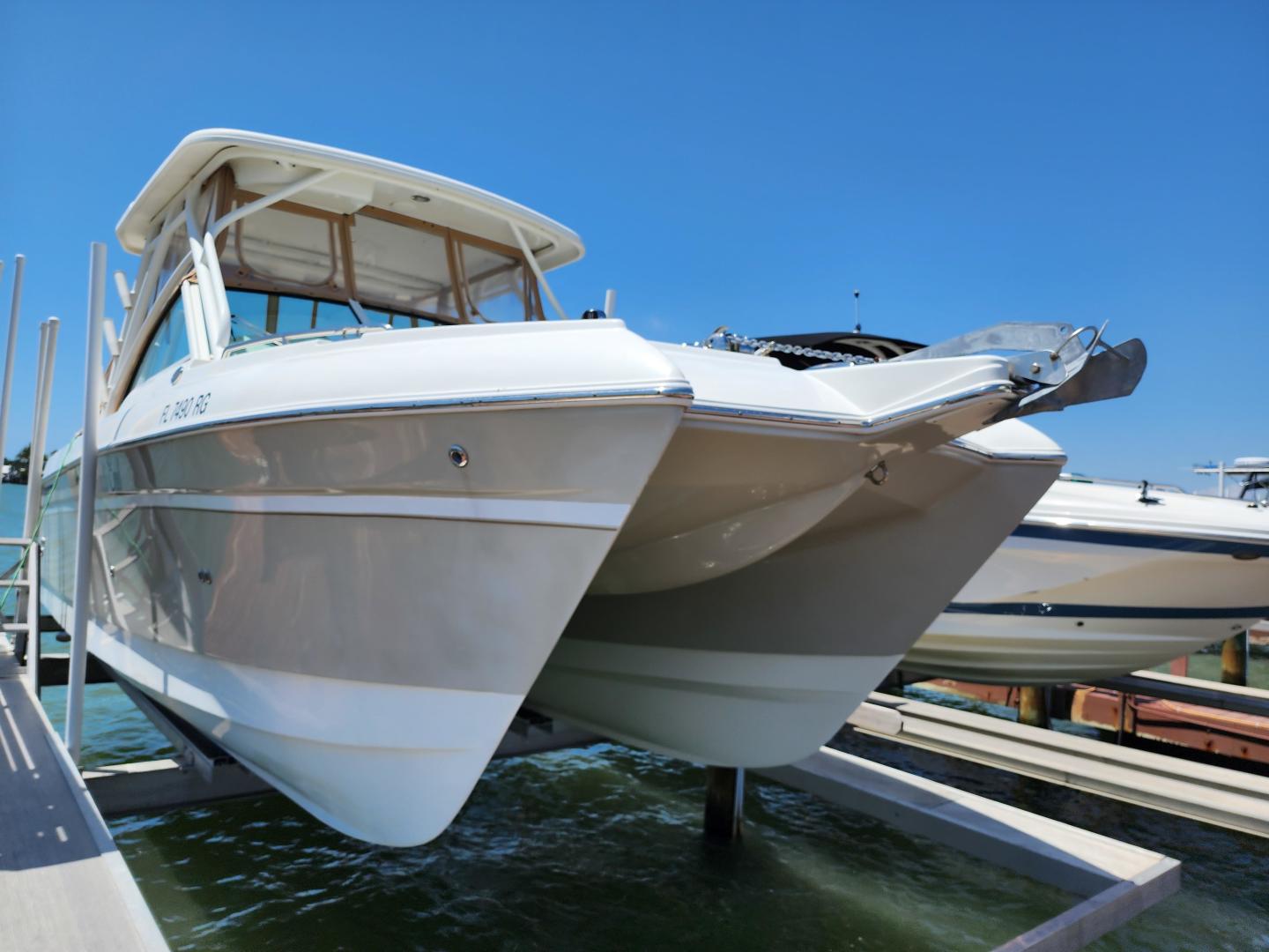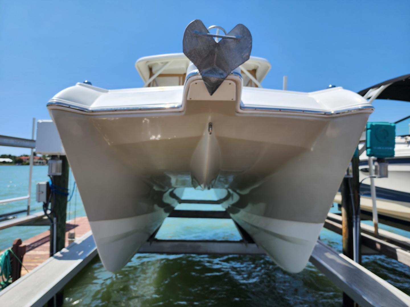 The Dual console design gives your crew the option to work on their tan, or get under the hard top to get out of the sun. This really is a well rounded, multi use boat that is on a Catamaran hull for a very comfortable, stable ride.