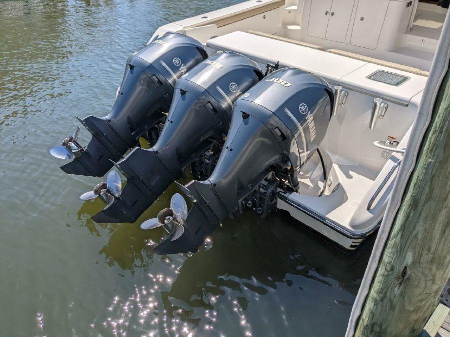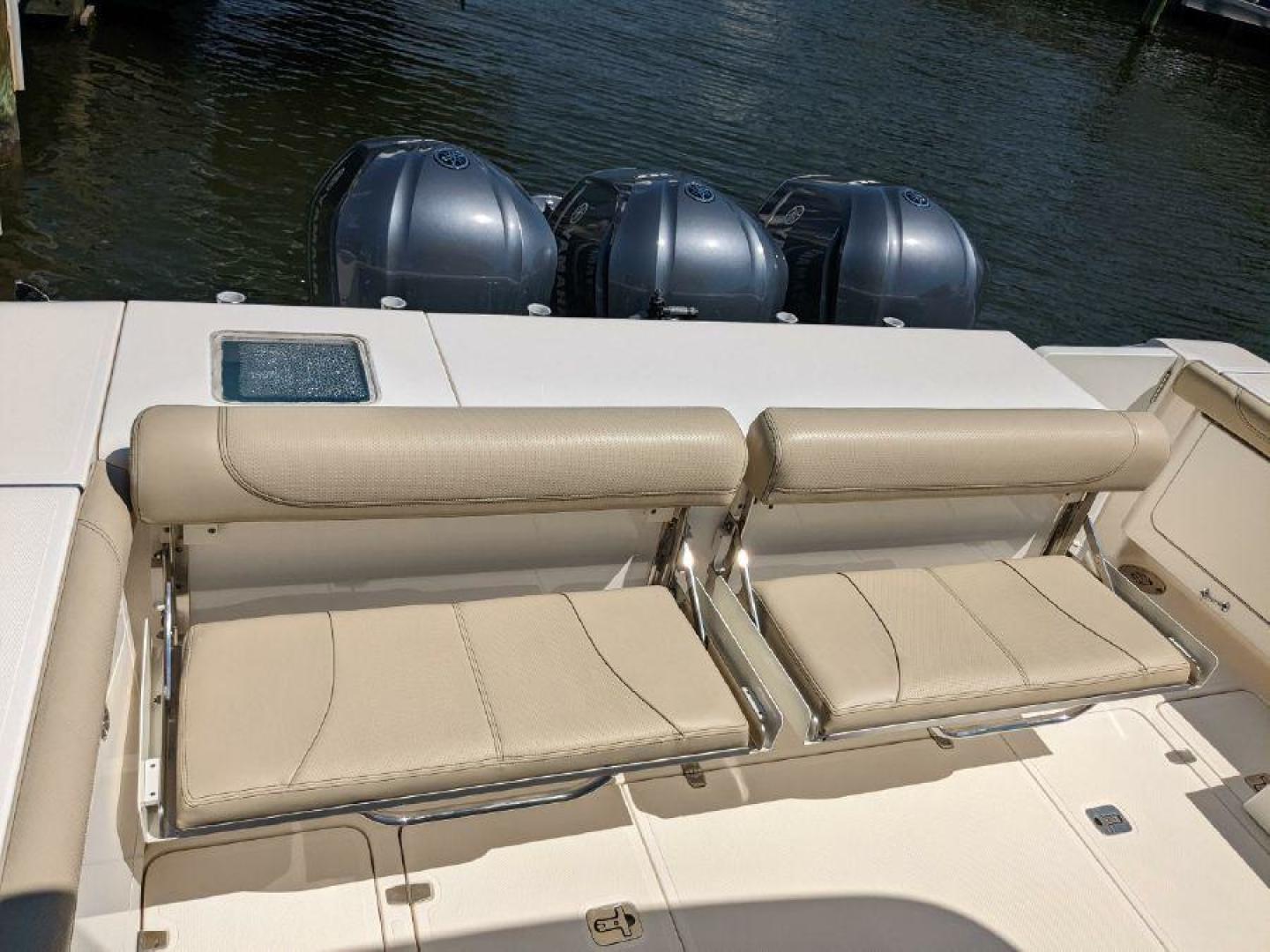 The 385 combines the performance, seaworthiness and fishability of the world’s top inboard convertible and express offerings with the luxury interior appointments of most comfortable cruisers. Dependable Yamaha outboards on the transom not only increase her overall performance but also open up valuable space for additional storage and accommodations. Its sleek, express style with a 13-foot beam results in an expansive cockpit and roomy interior below decks.