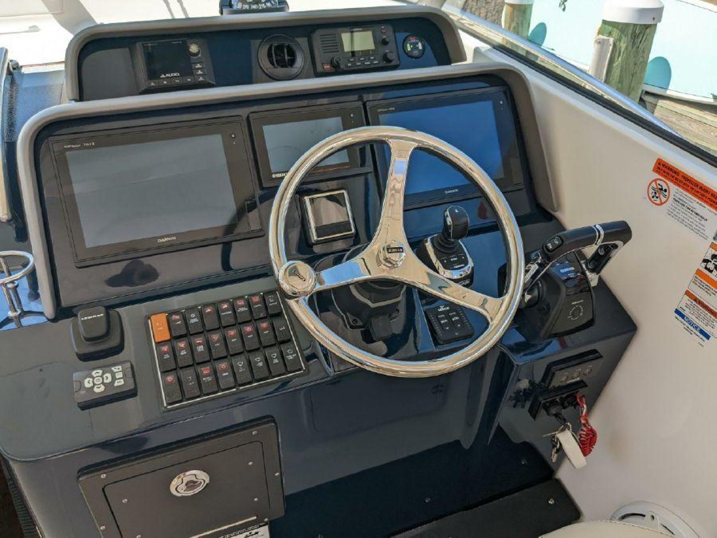 - Teleflex power assisted dual cylinder hydraulic steering with tilt sport helm; 16” Edson comfort grip stainless steel steering wheel