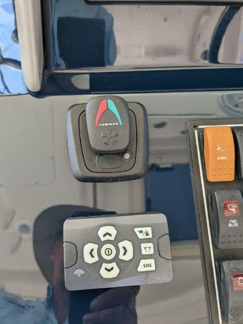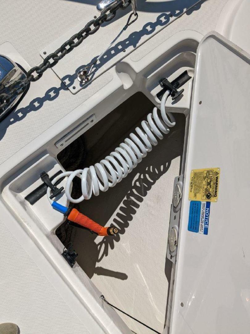 - Anchor windlass with switch at helm and remote switch at anchor locker with overboard drain and fresh and raw water washdown